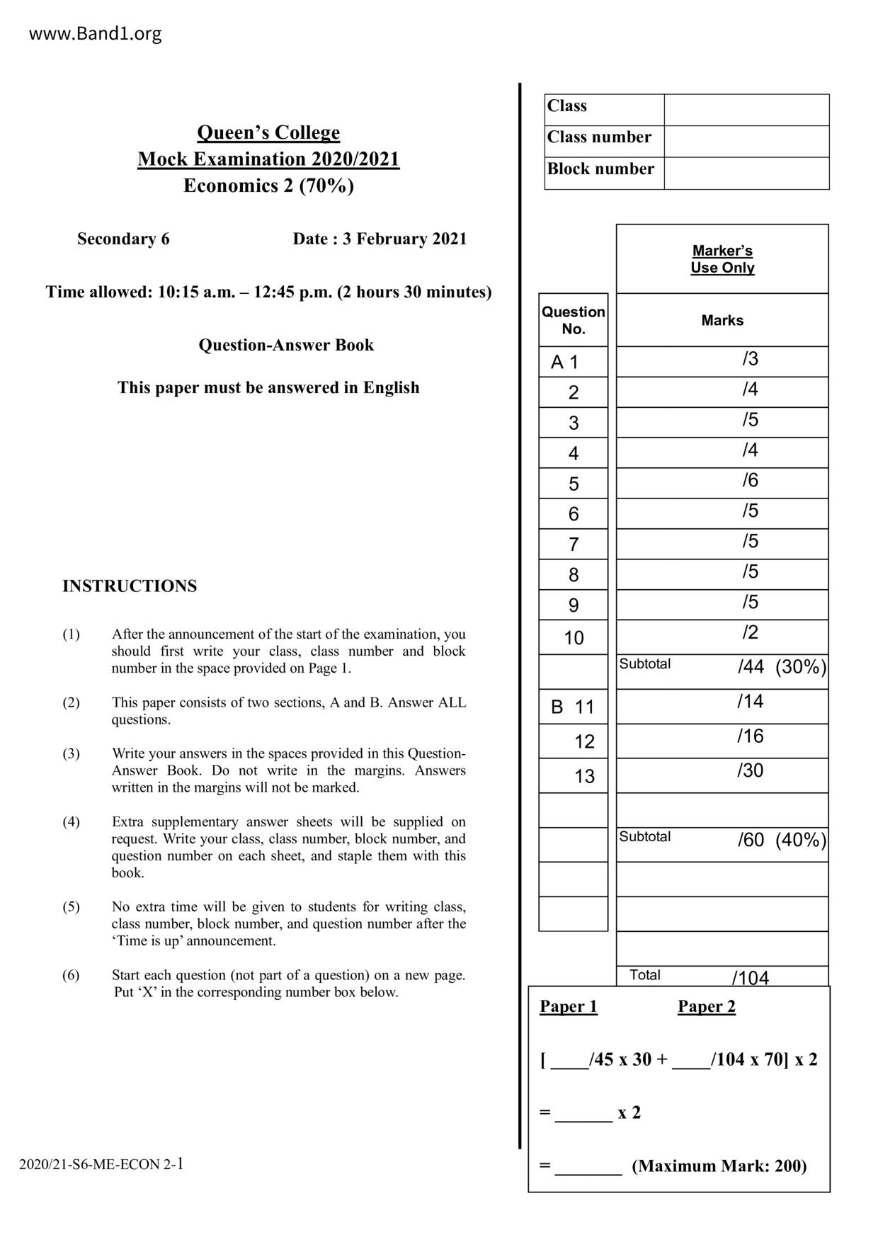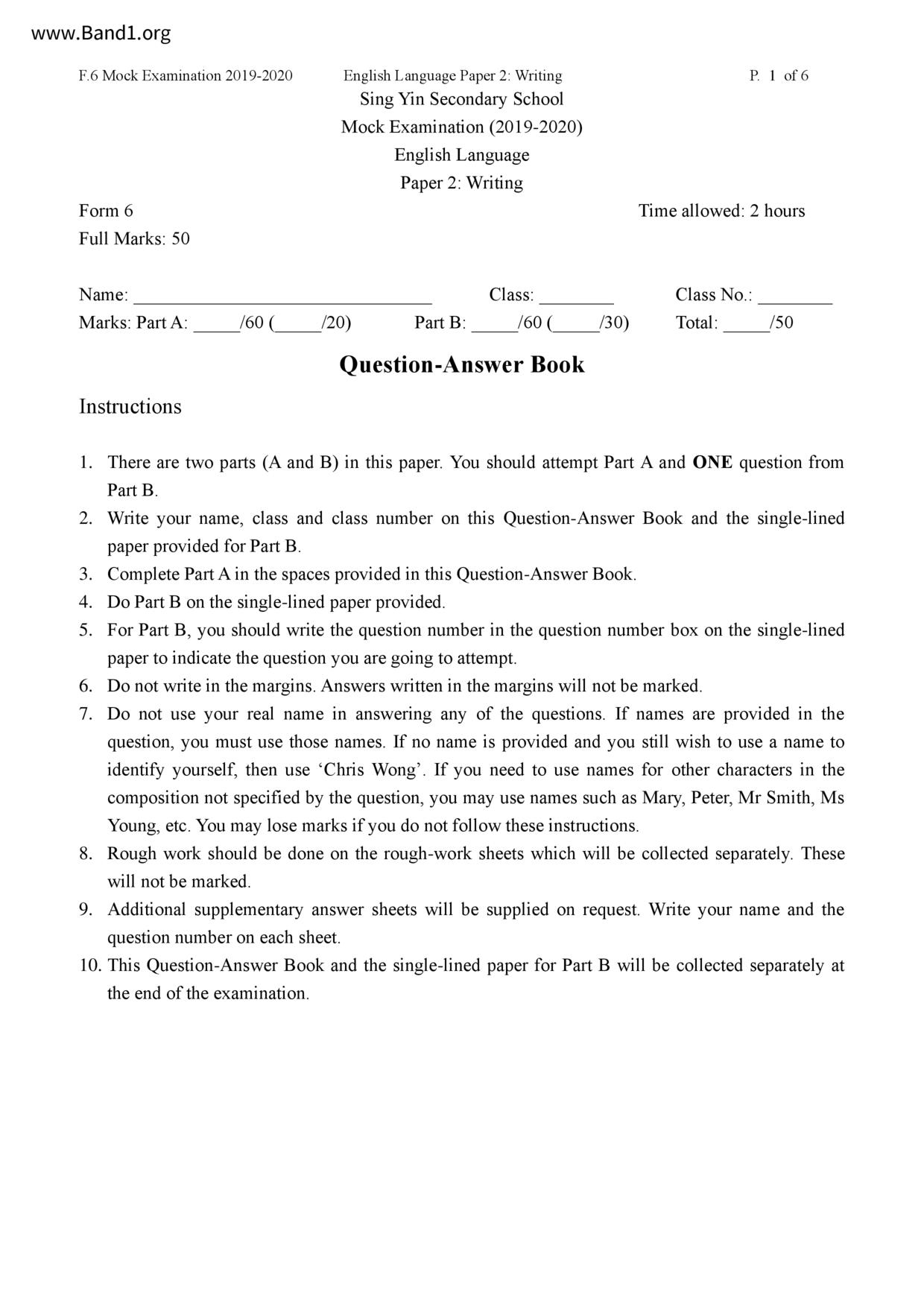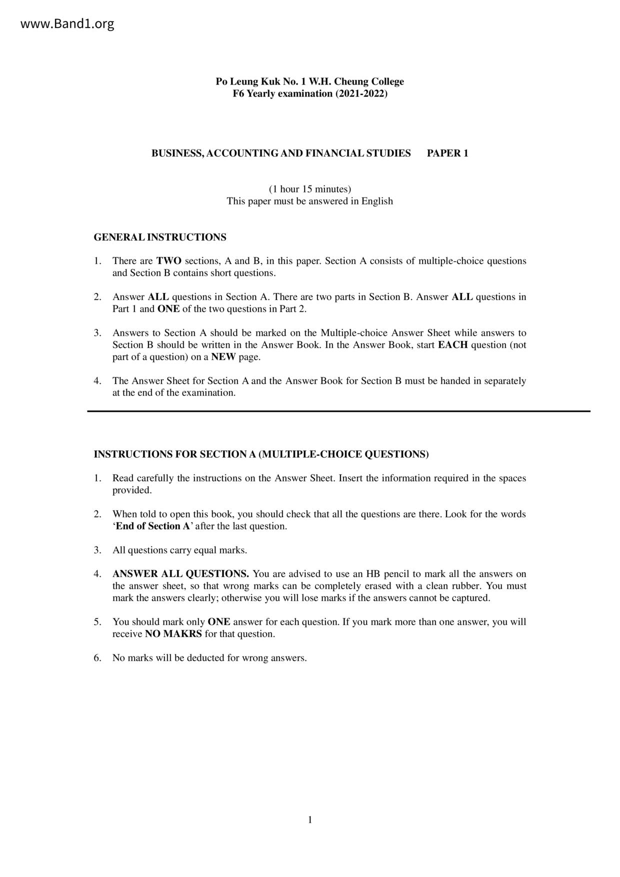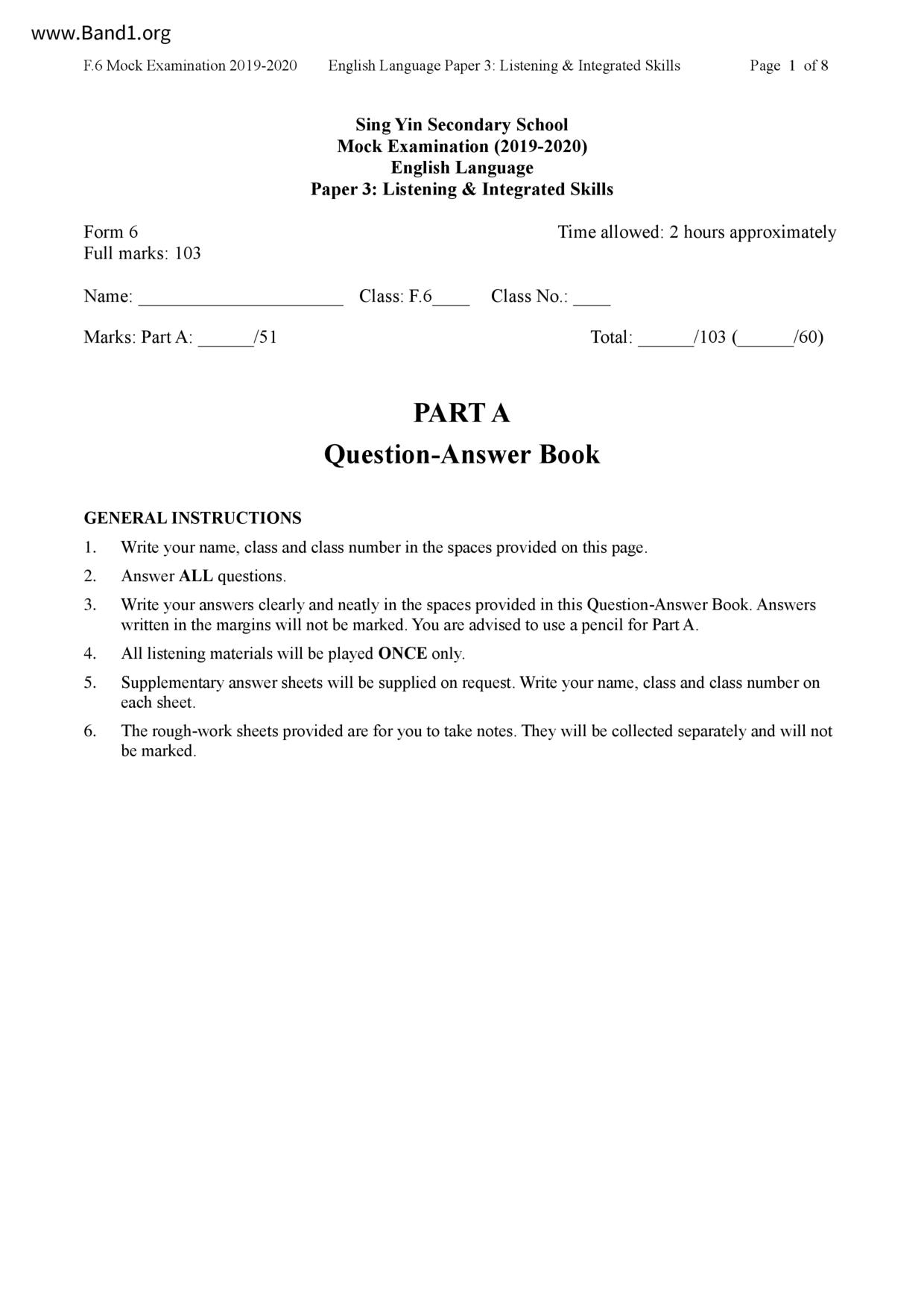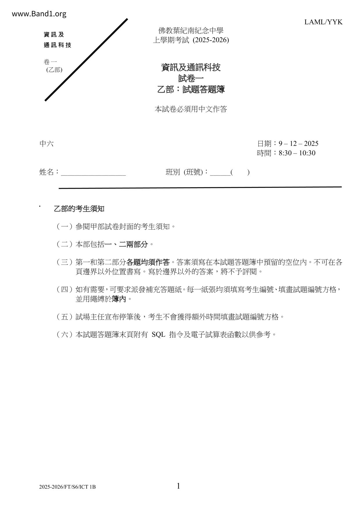 香港 中六 各科 (HK F6) 試卷 pdf