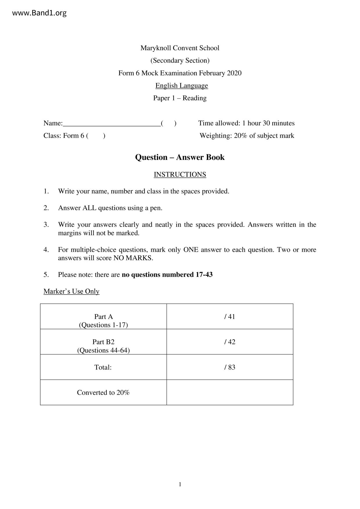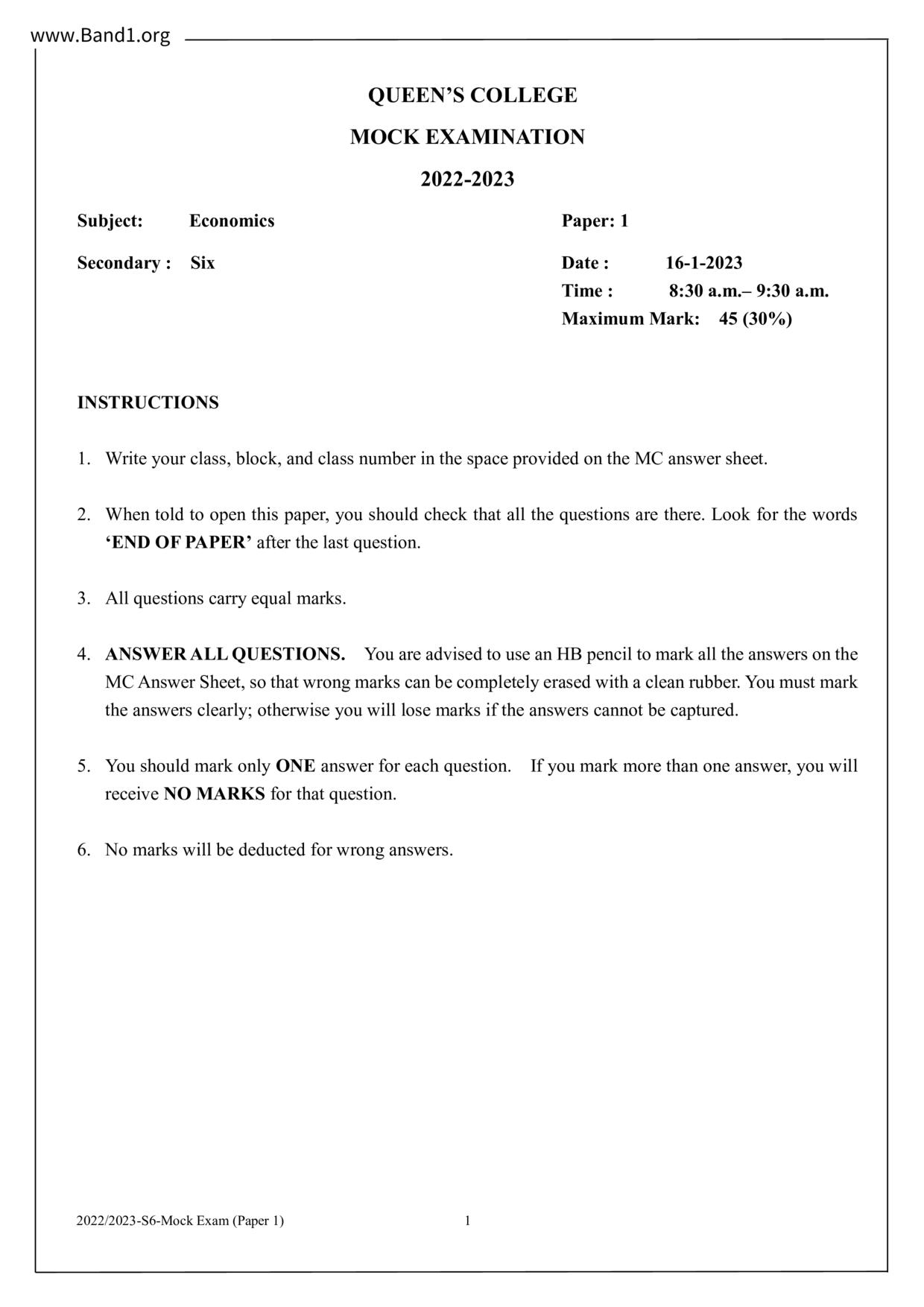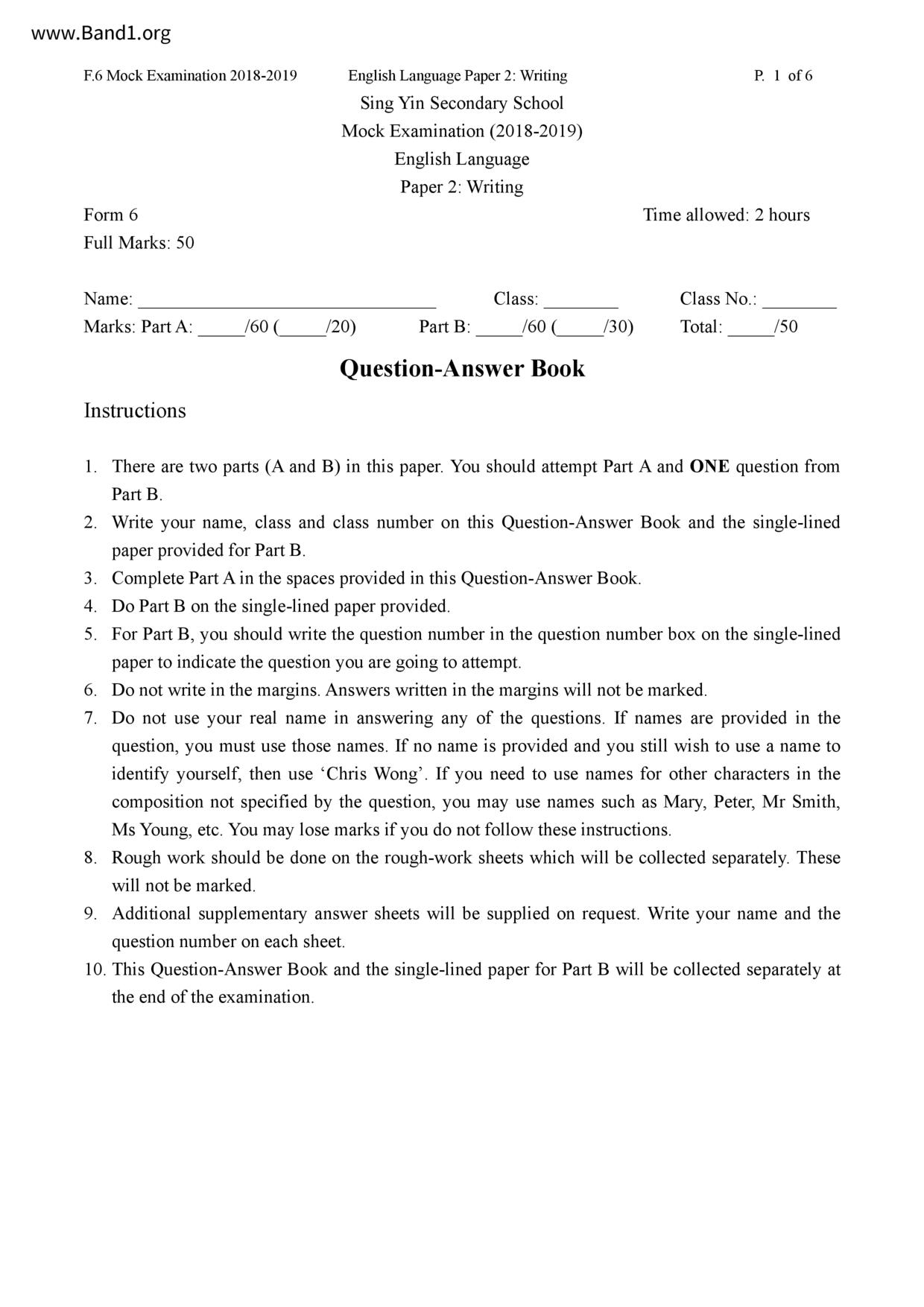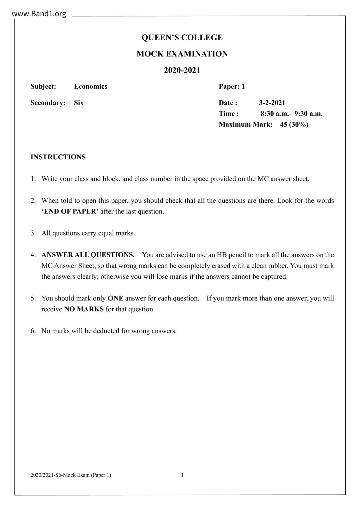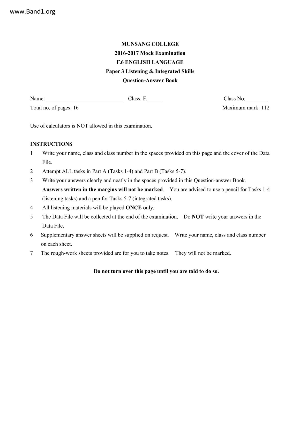 香港 中六 各科 (HK F6) 試卷 pdf