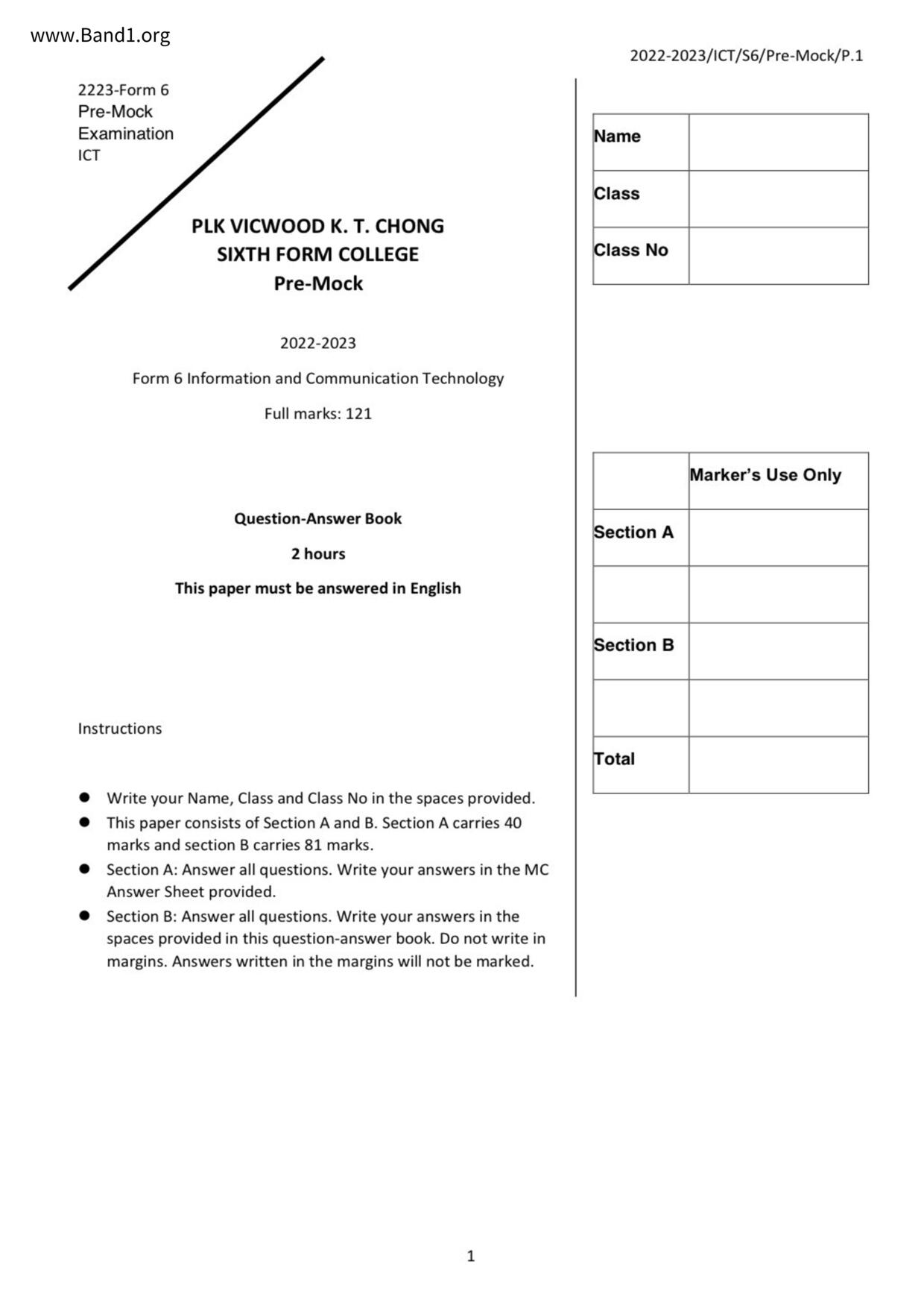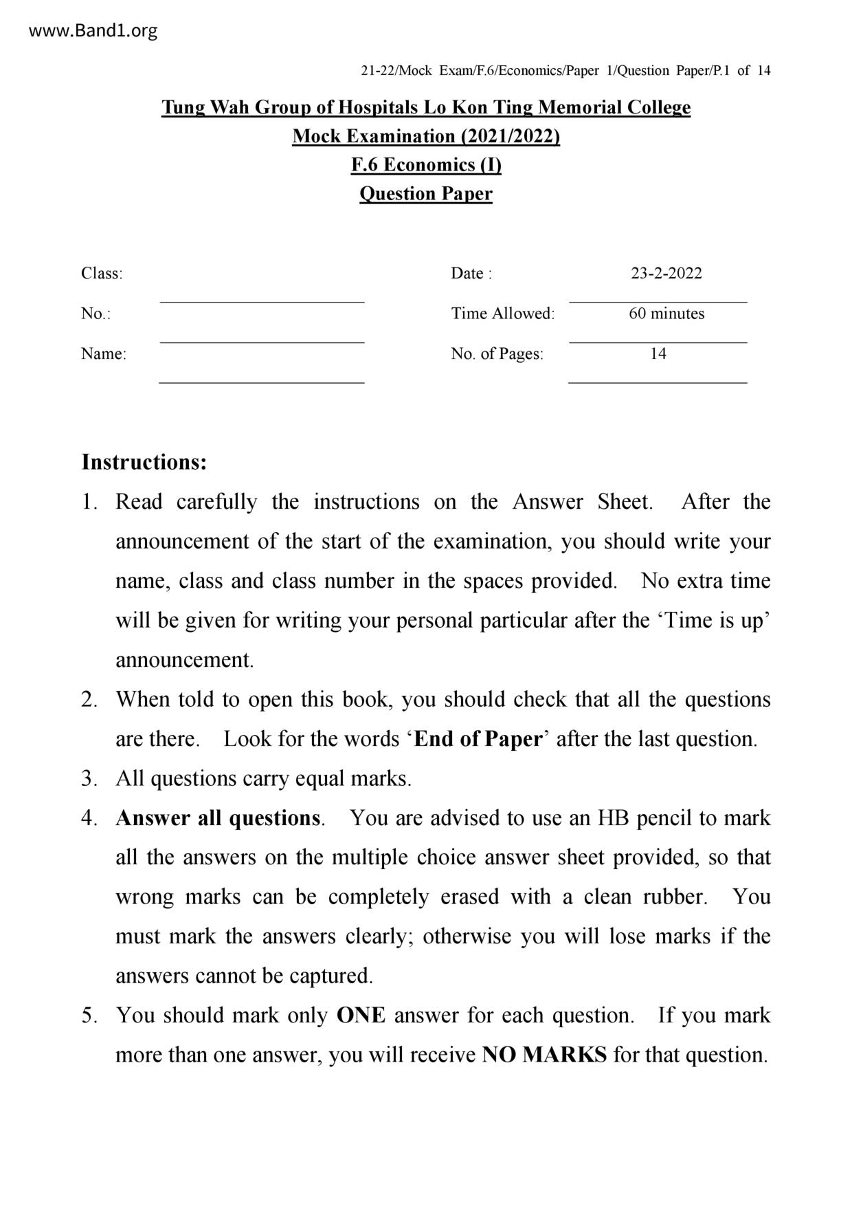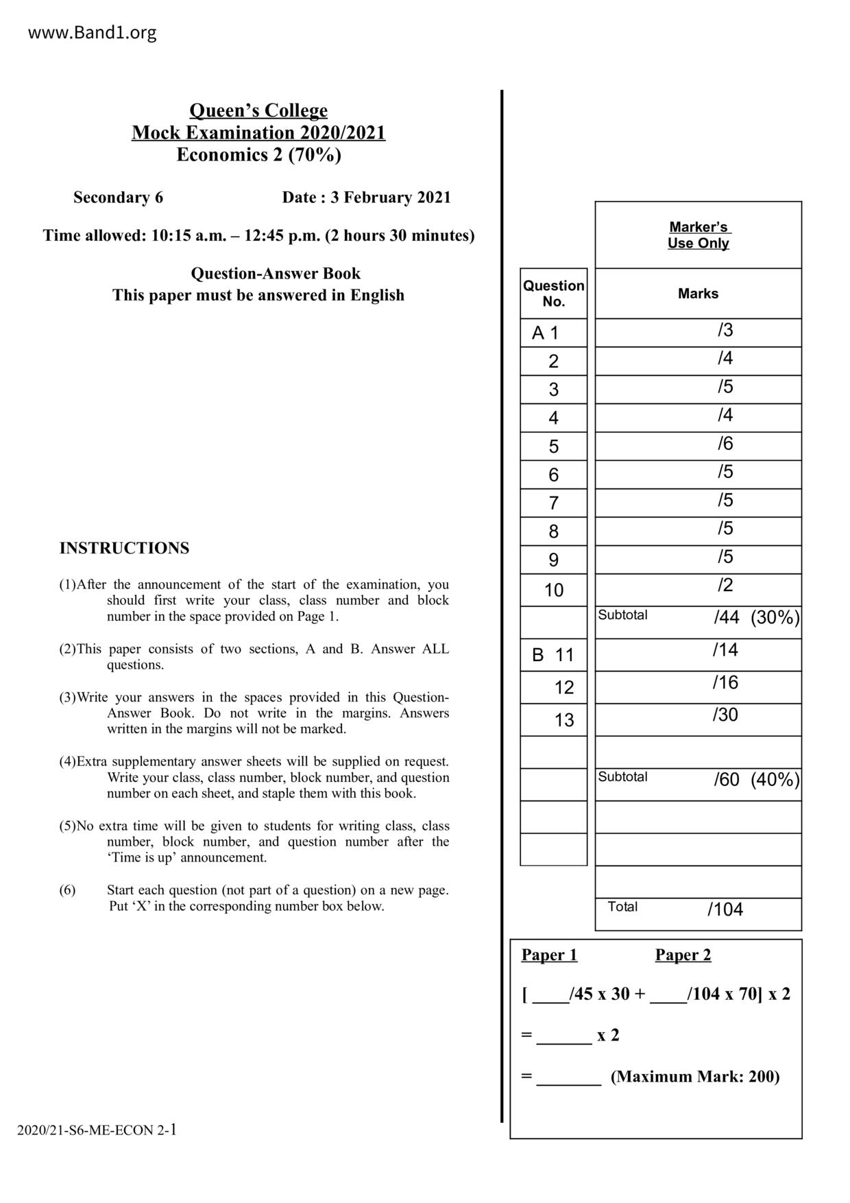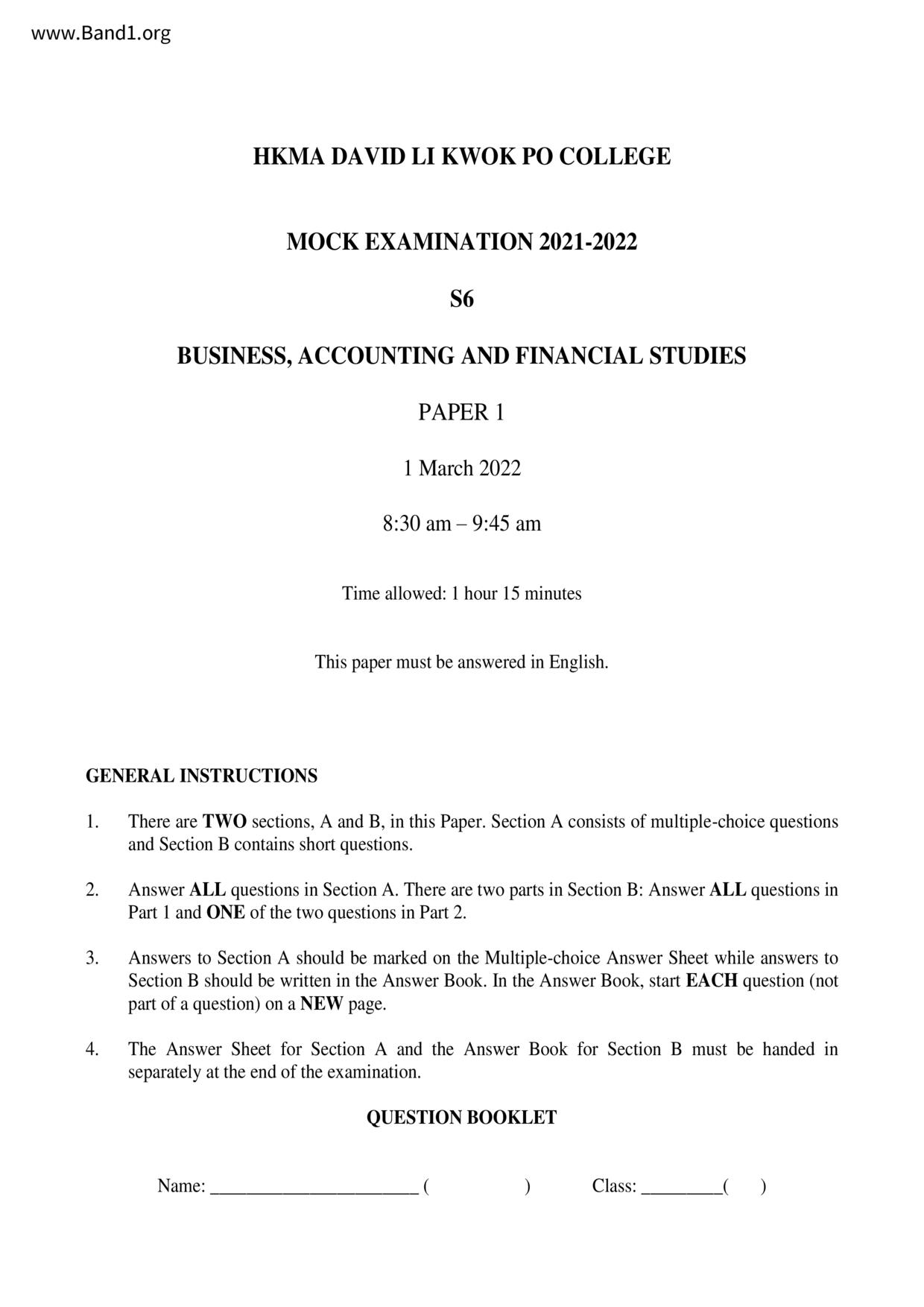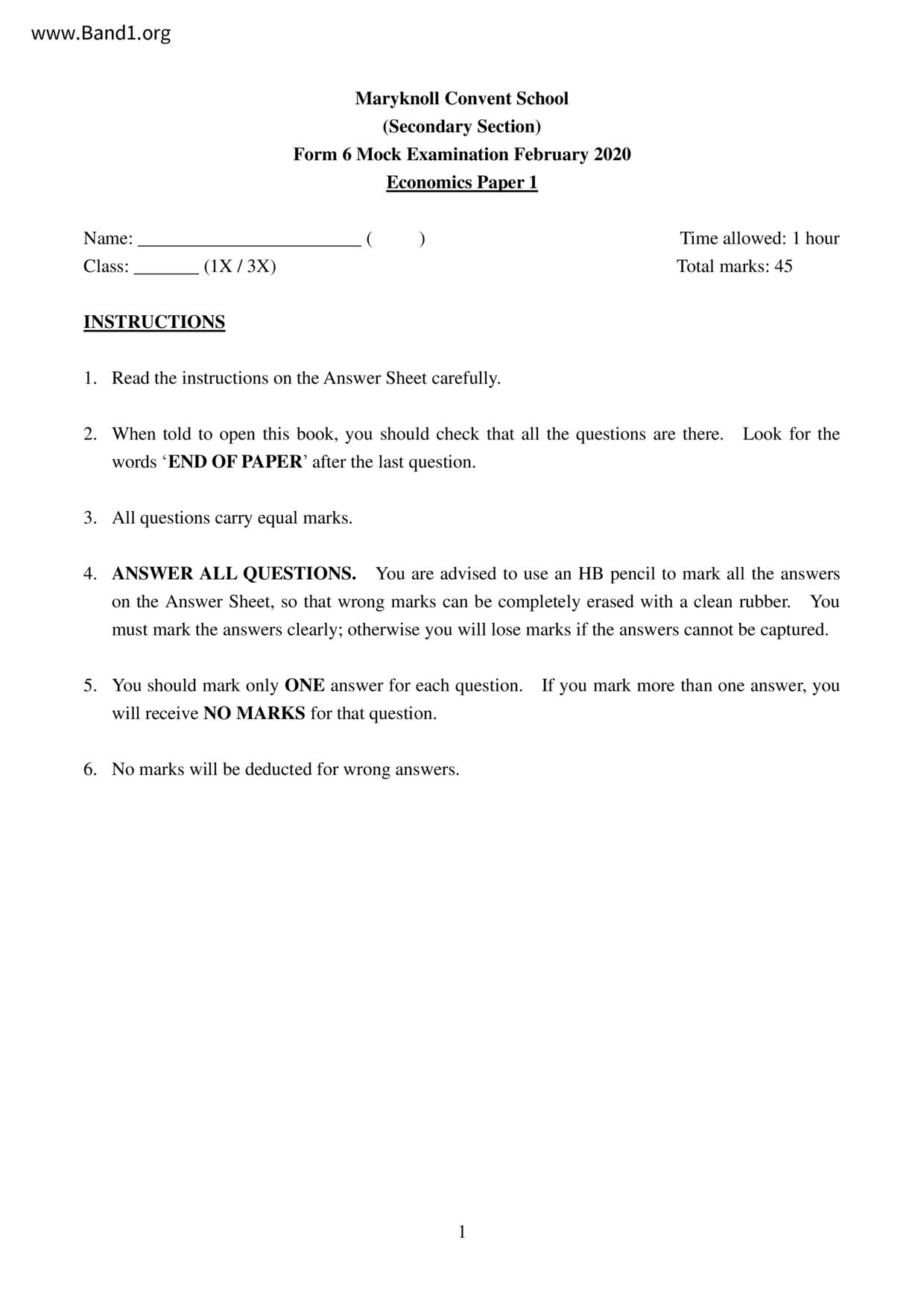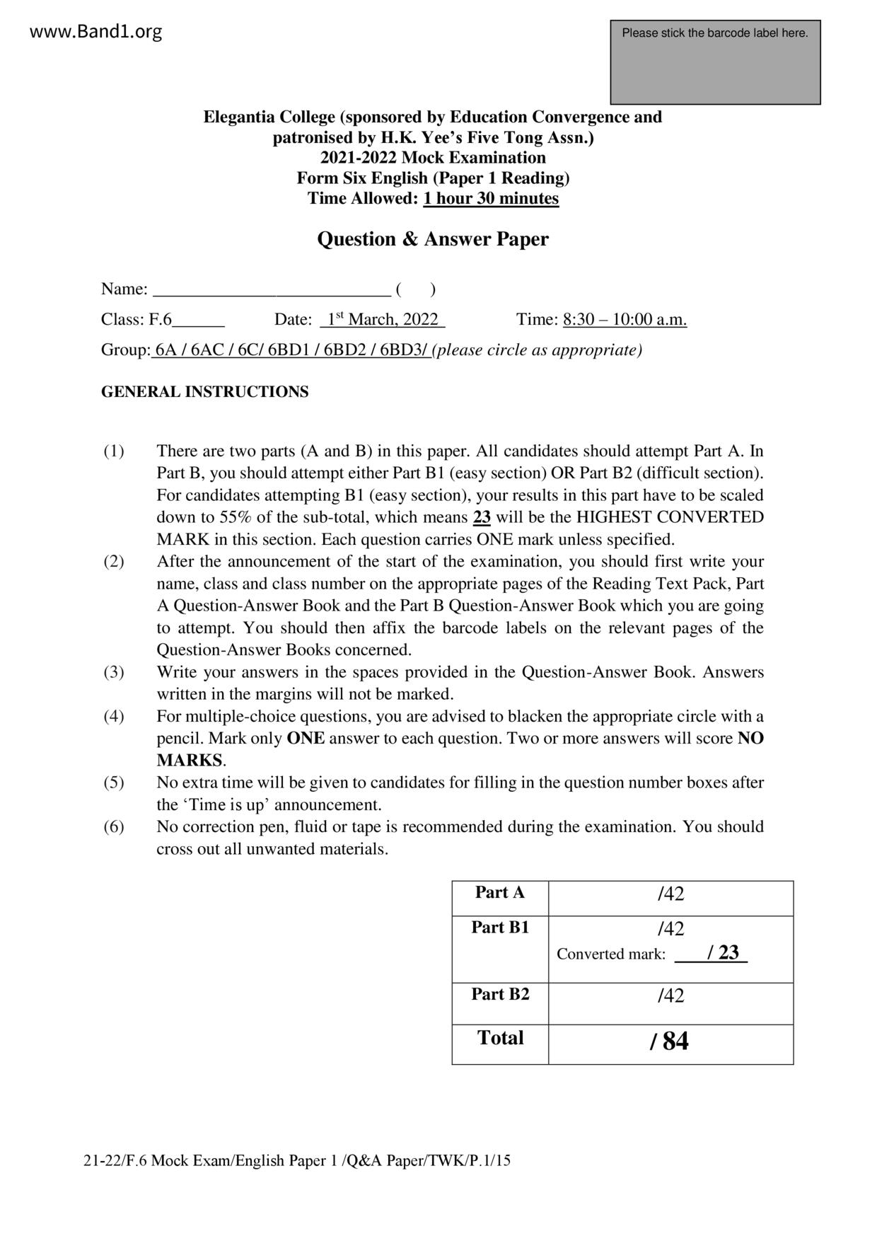 香港 中六 各科 (HK F6) 試卷 pdf