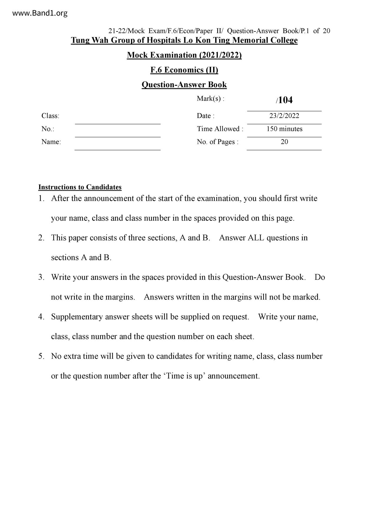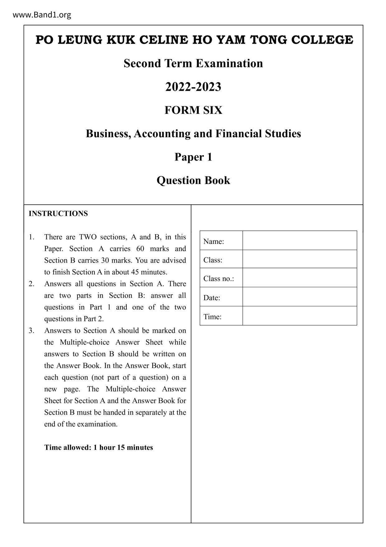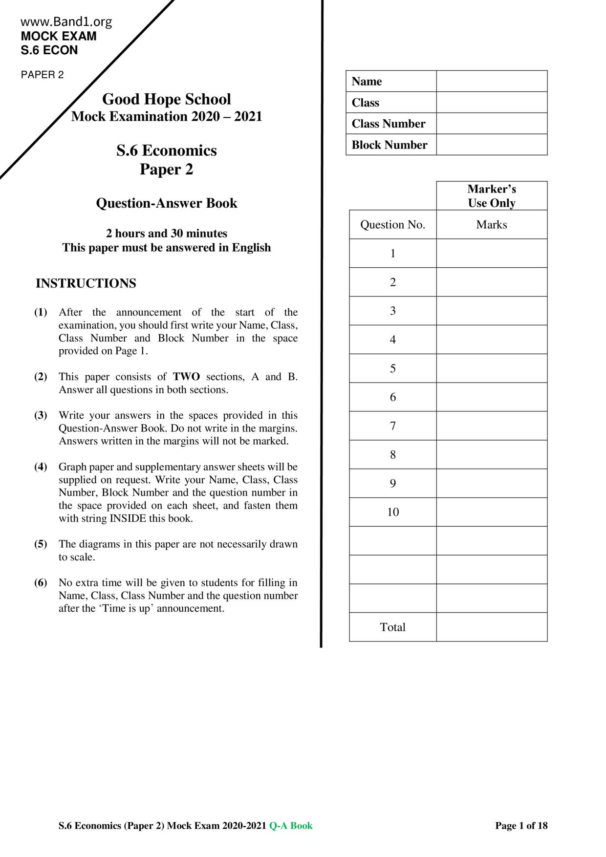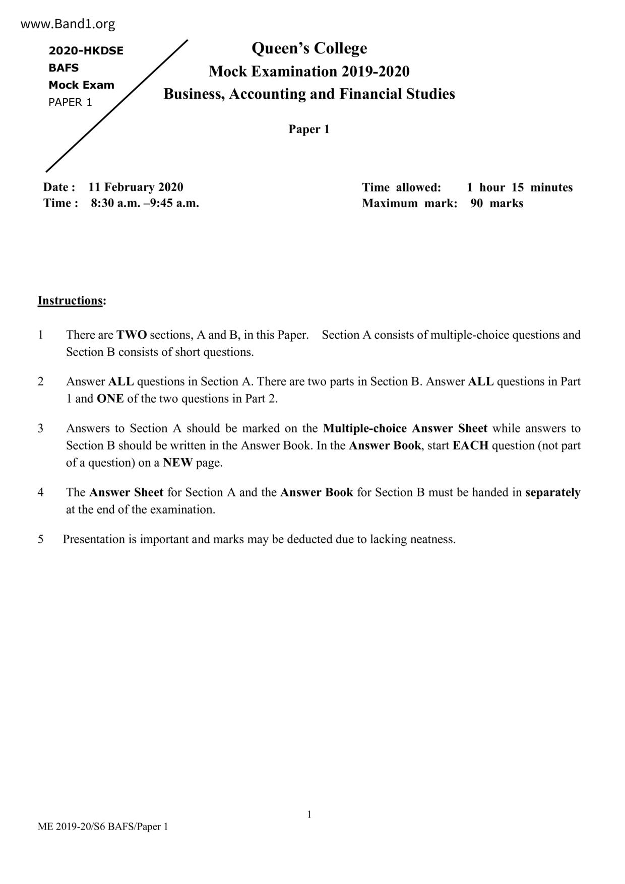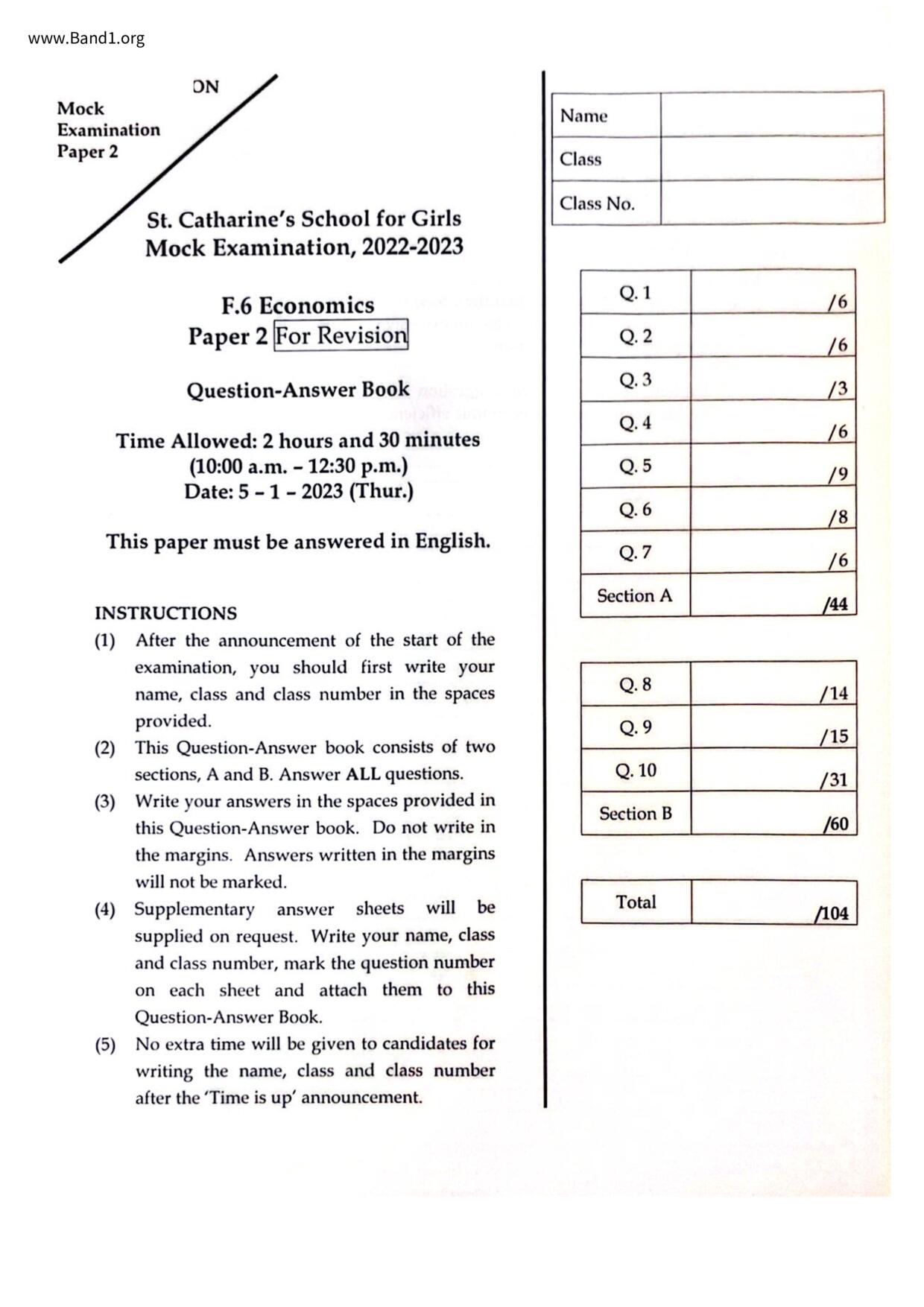 香港 中六 各科 (HK F6) 試卷 pdf