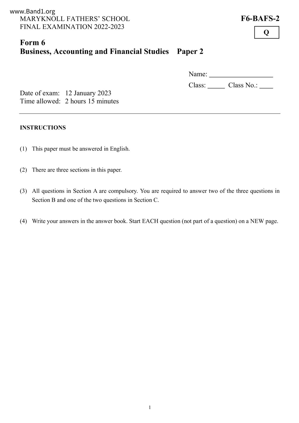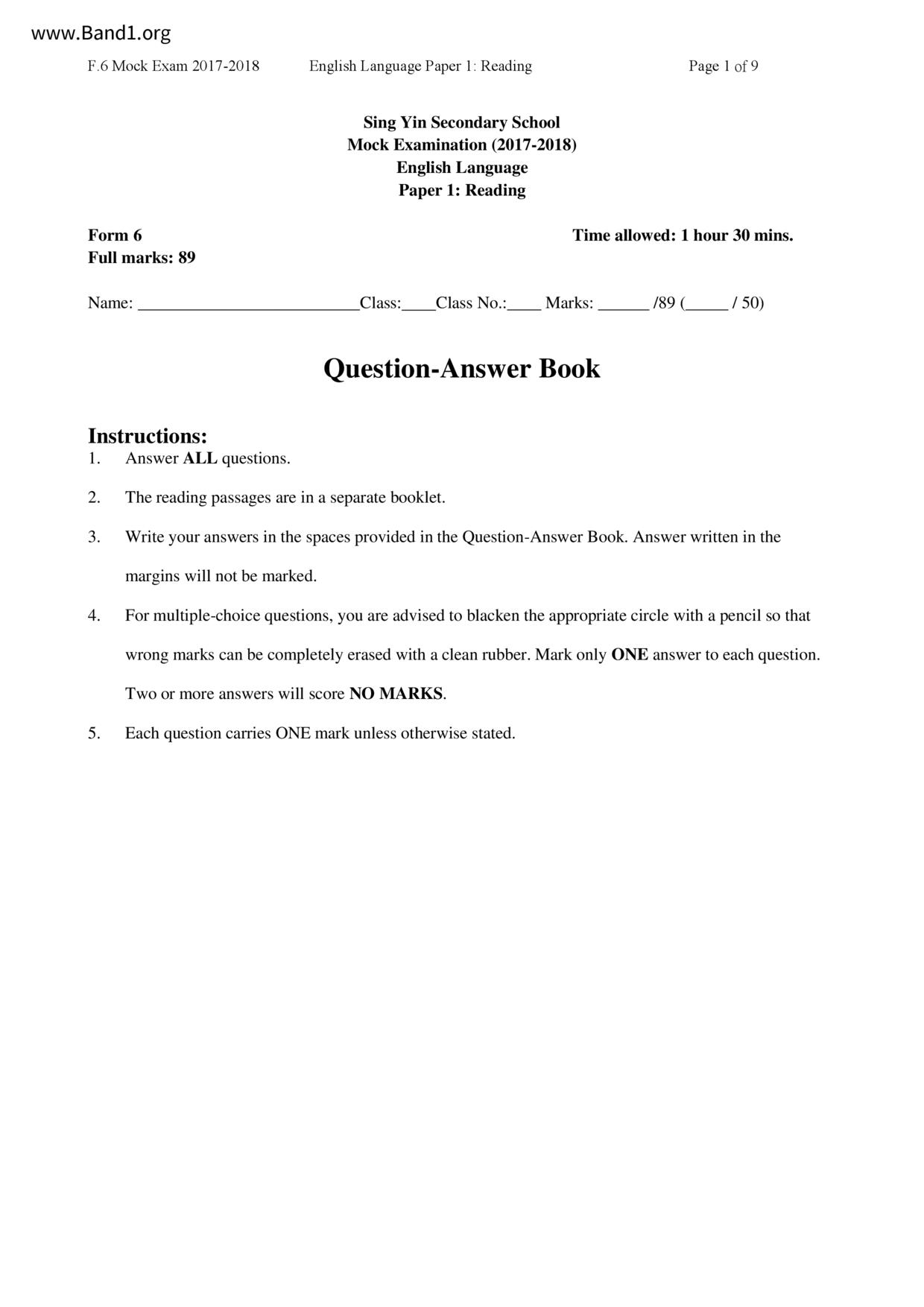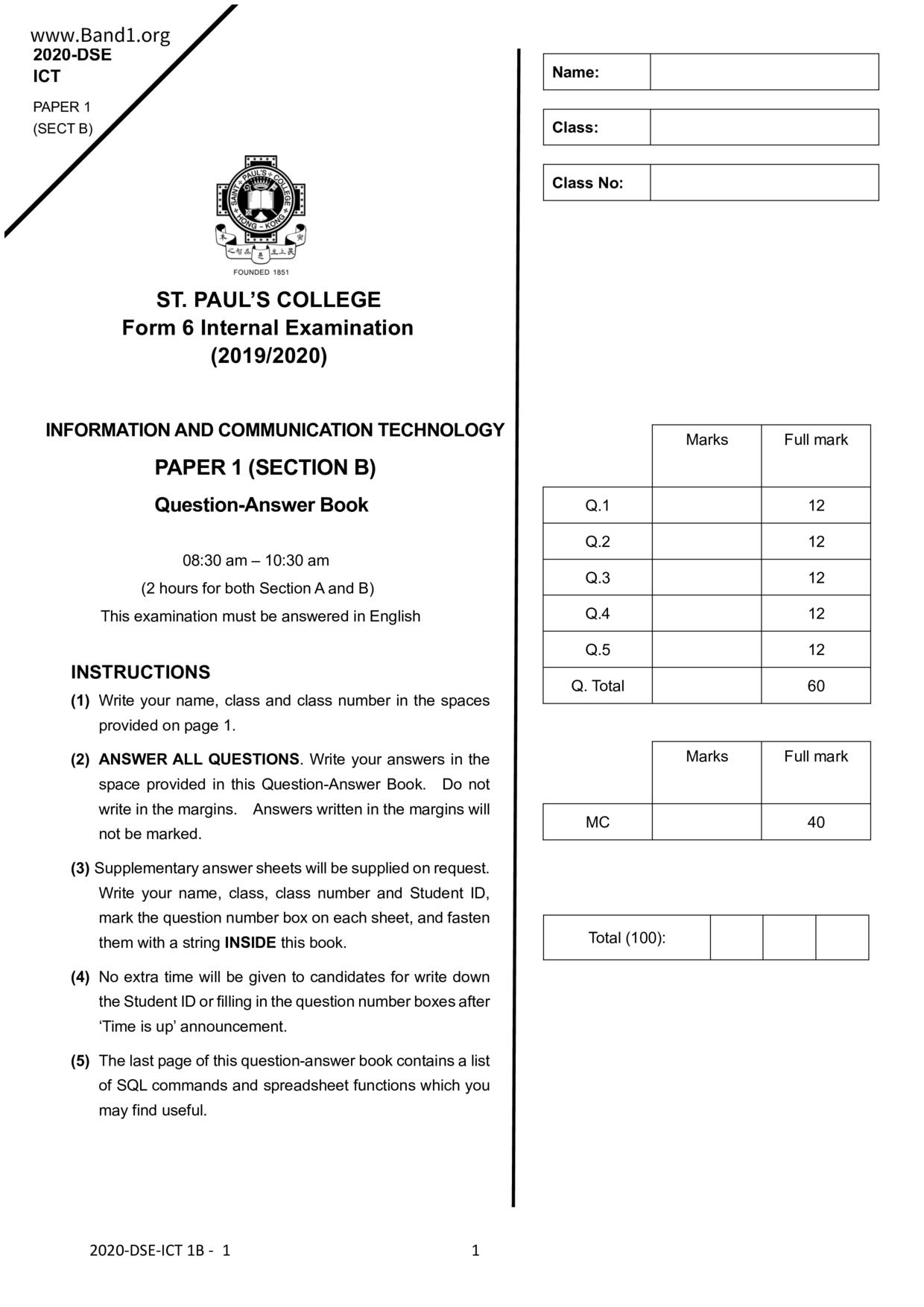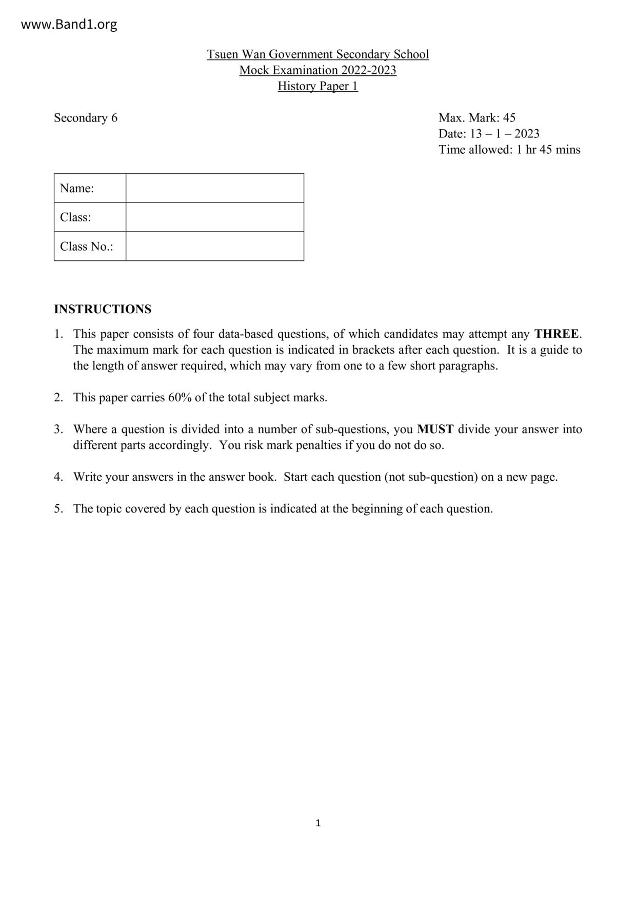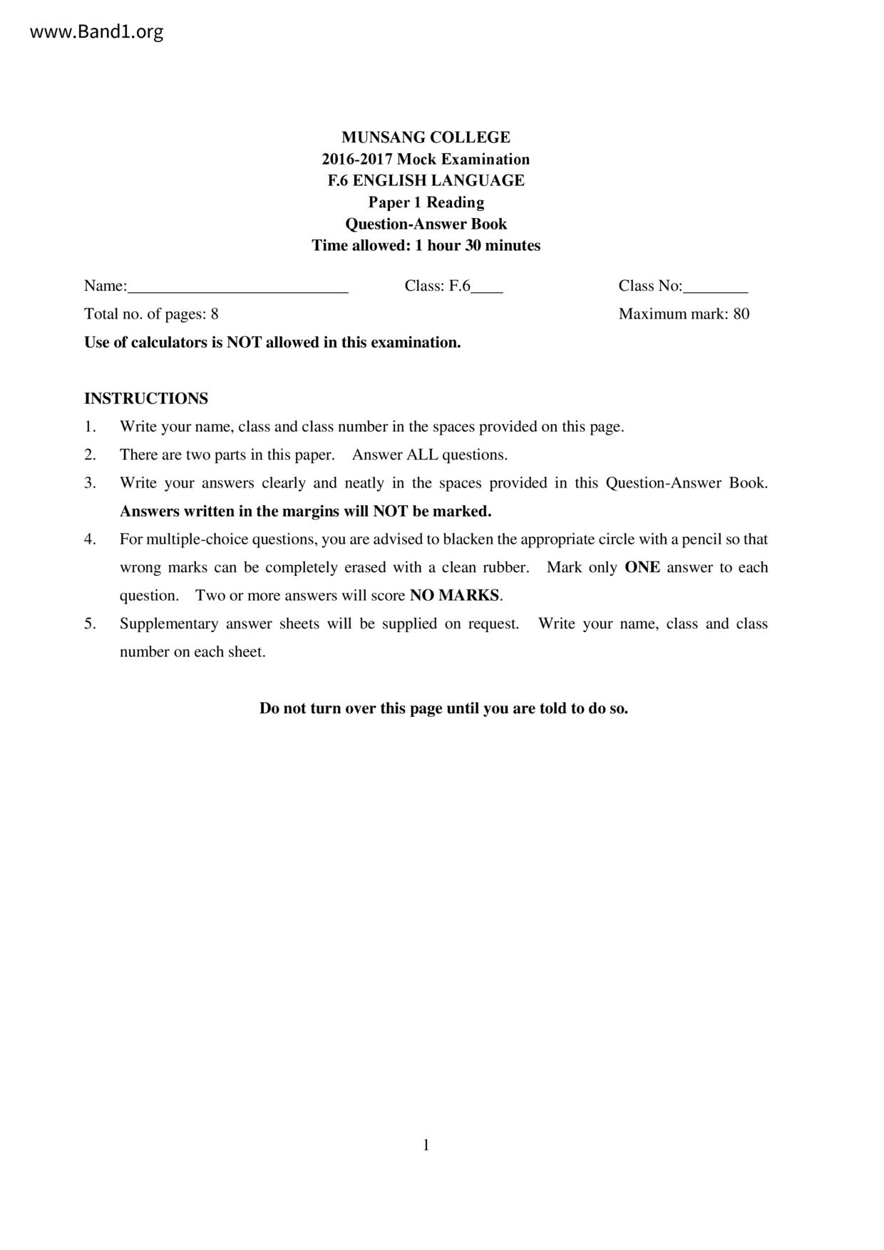 香港 中六 各科 (HK F6) 試卷 pdf
