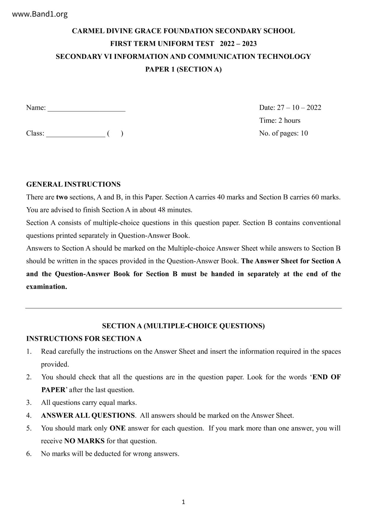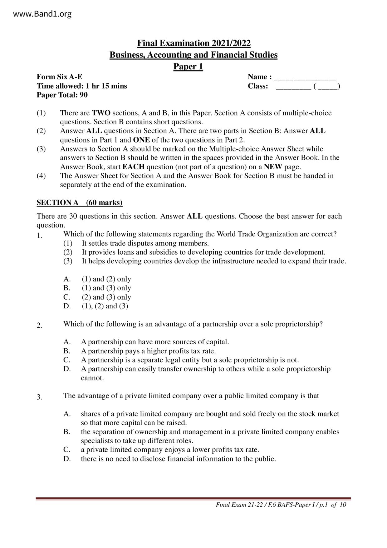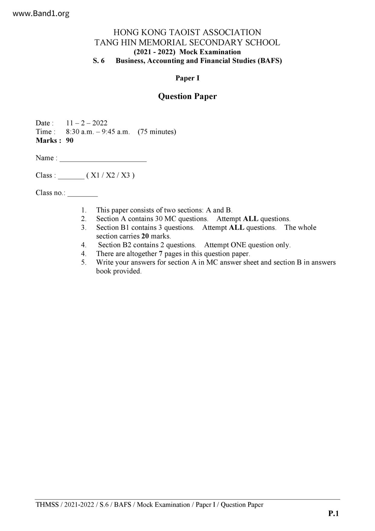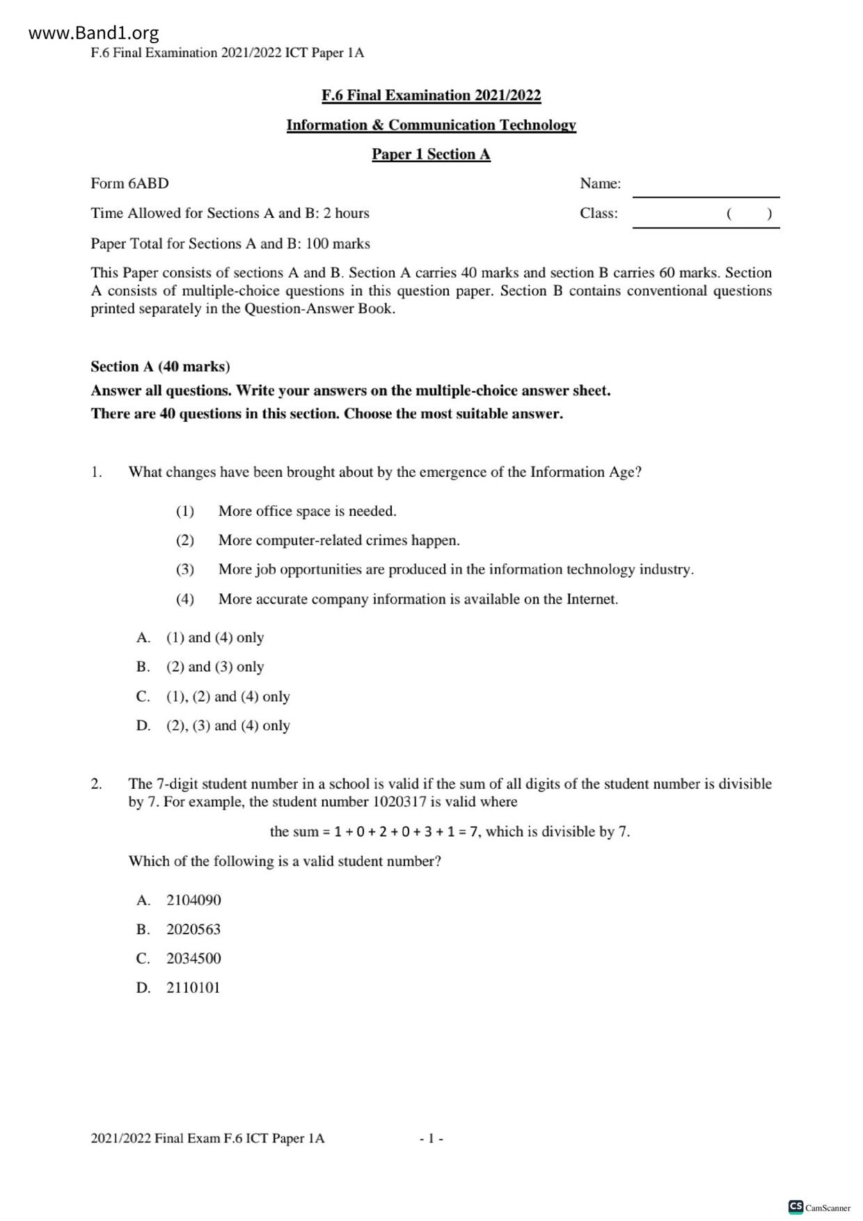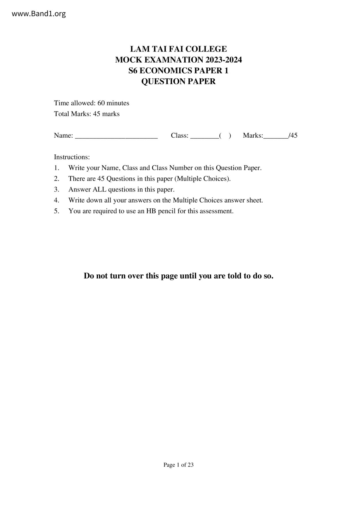 香港 中六 各科 (HK F6) 試卷 pdf