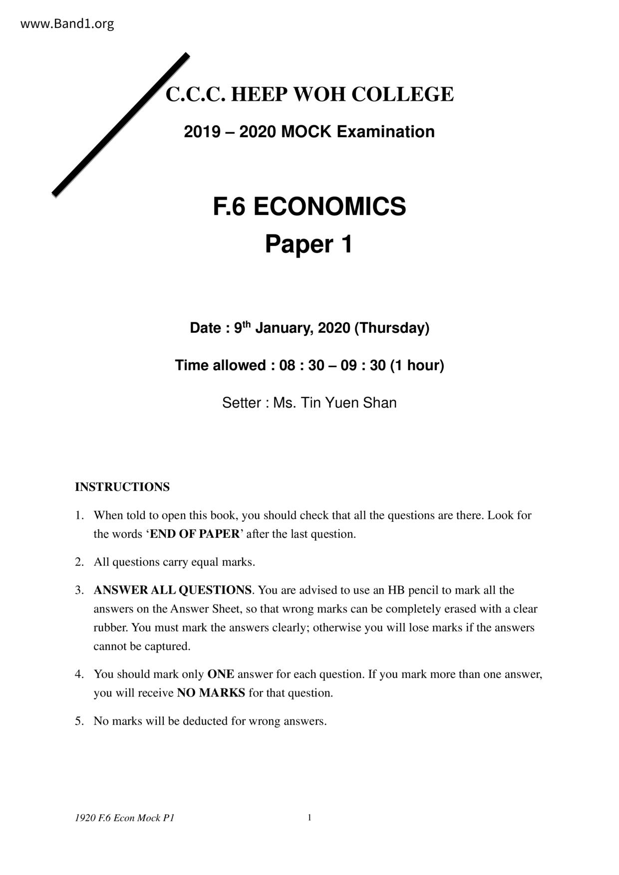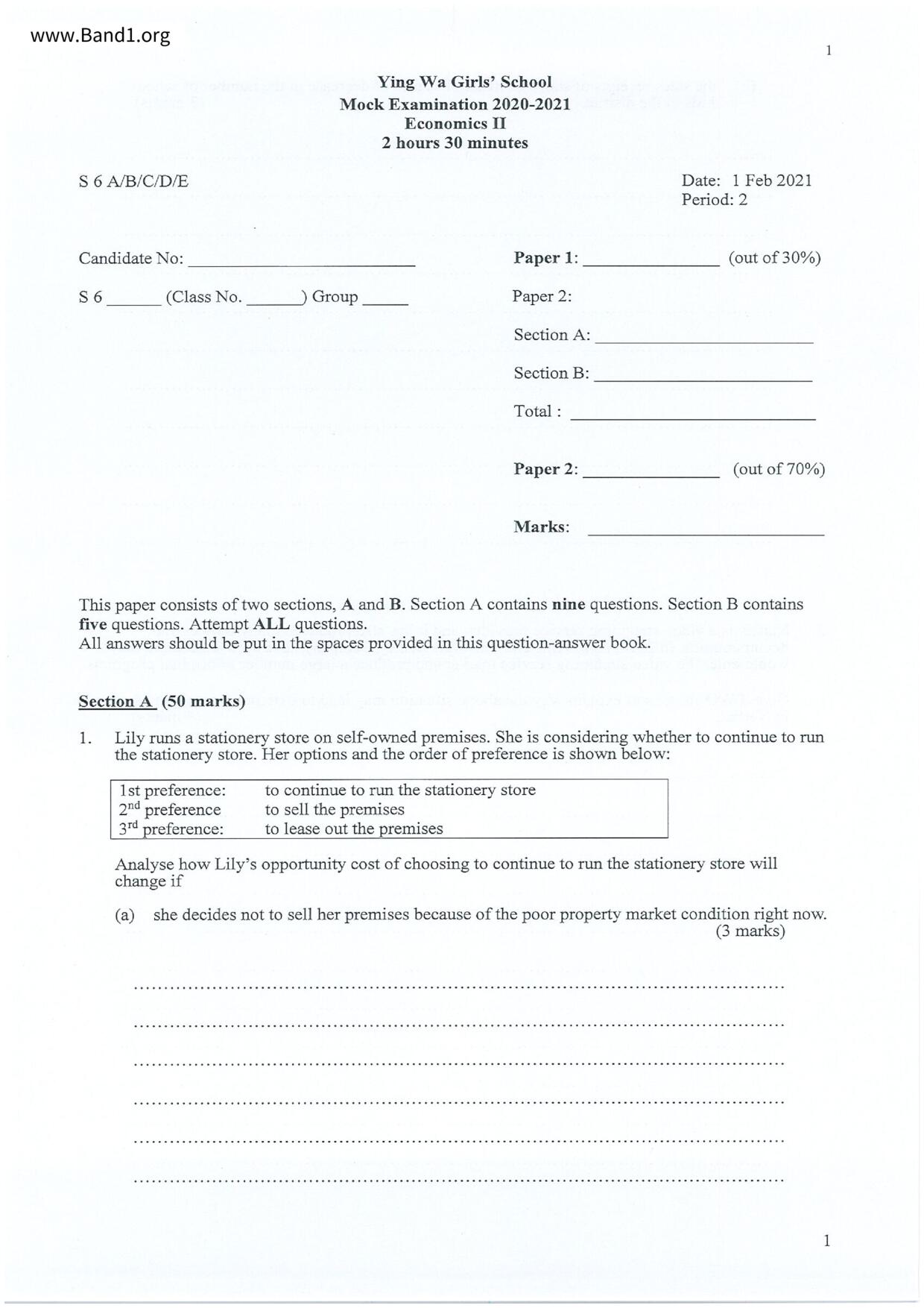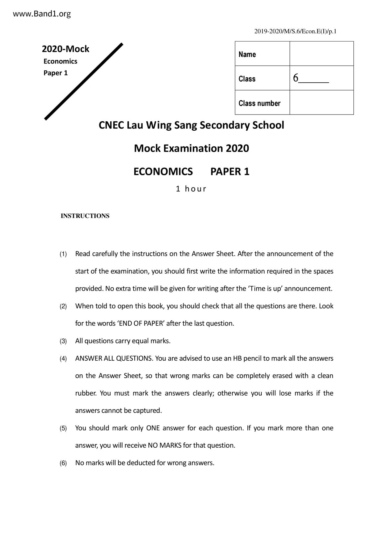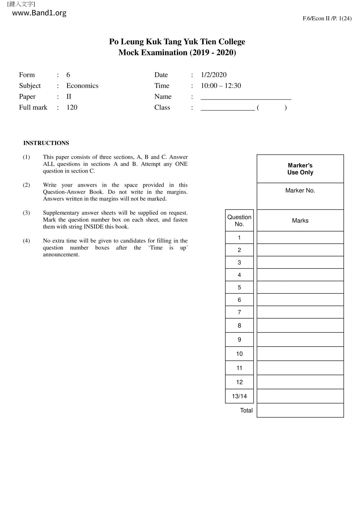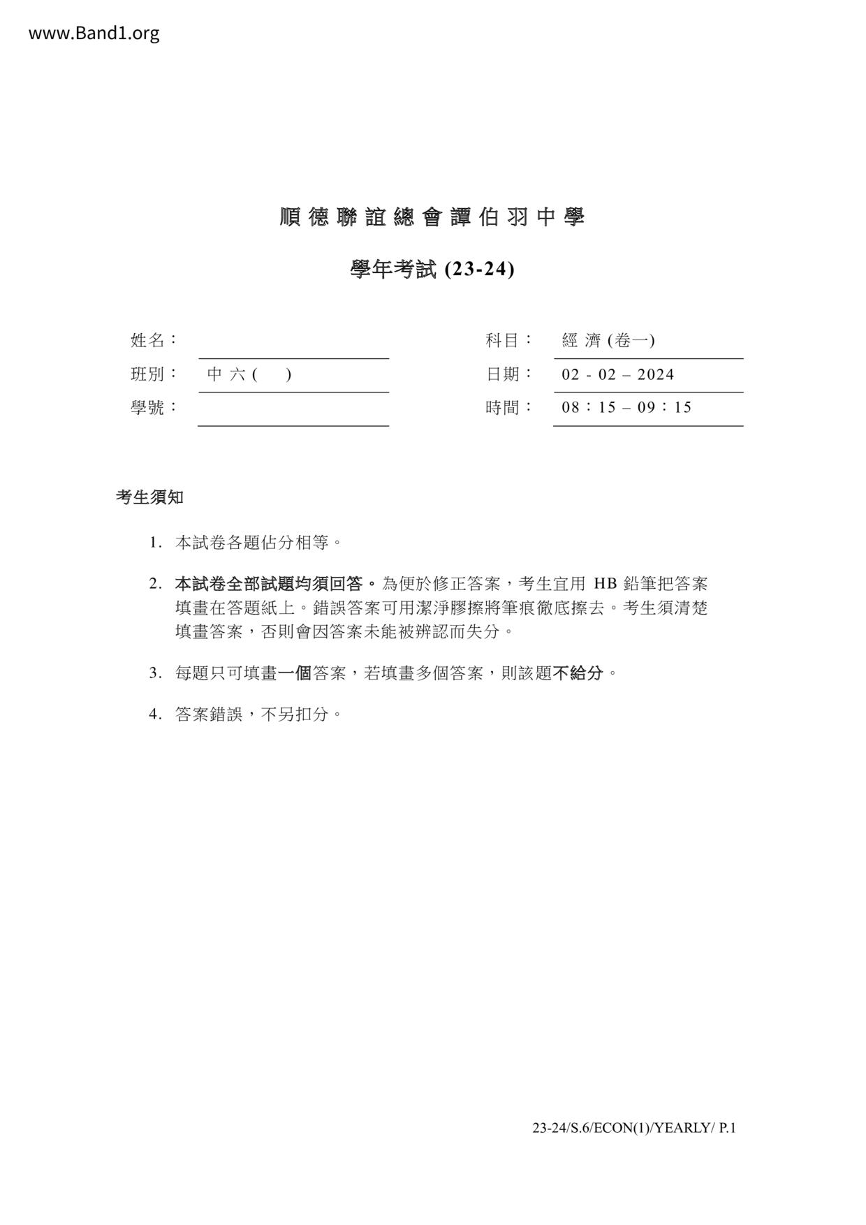 中六 經濟 可風中學(嗇色園主辦)