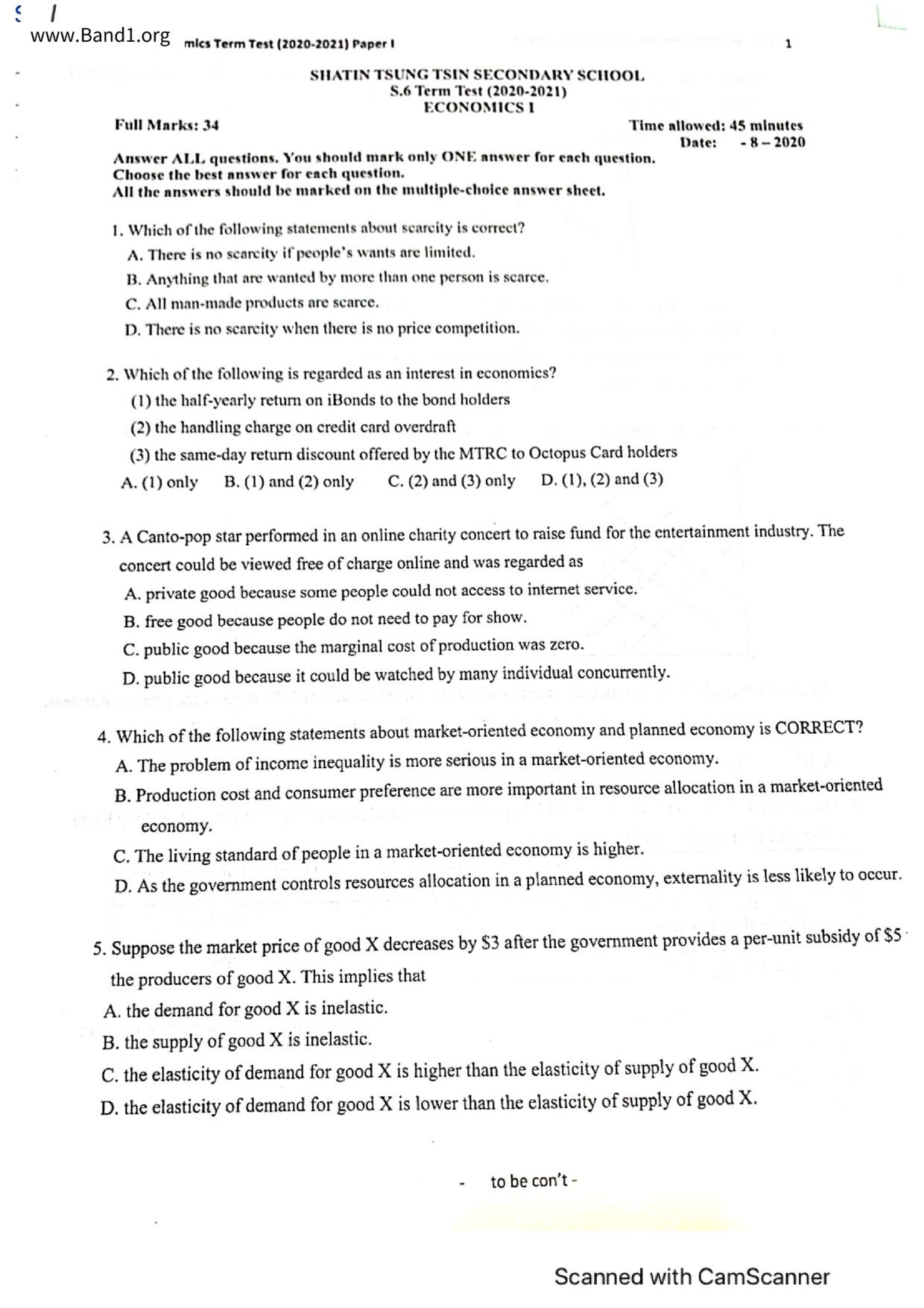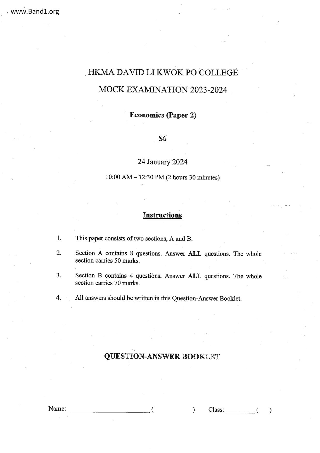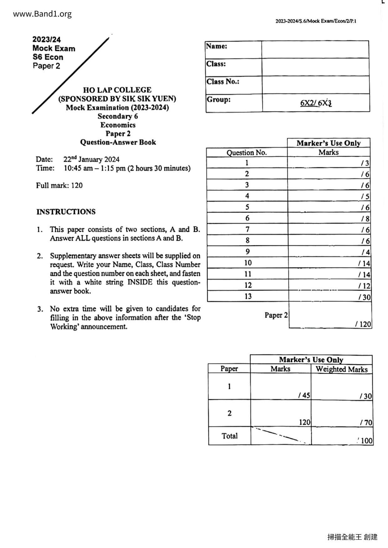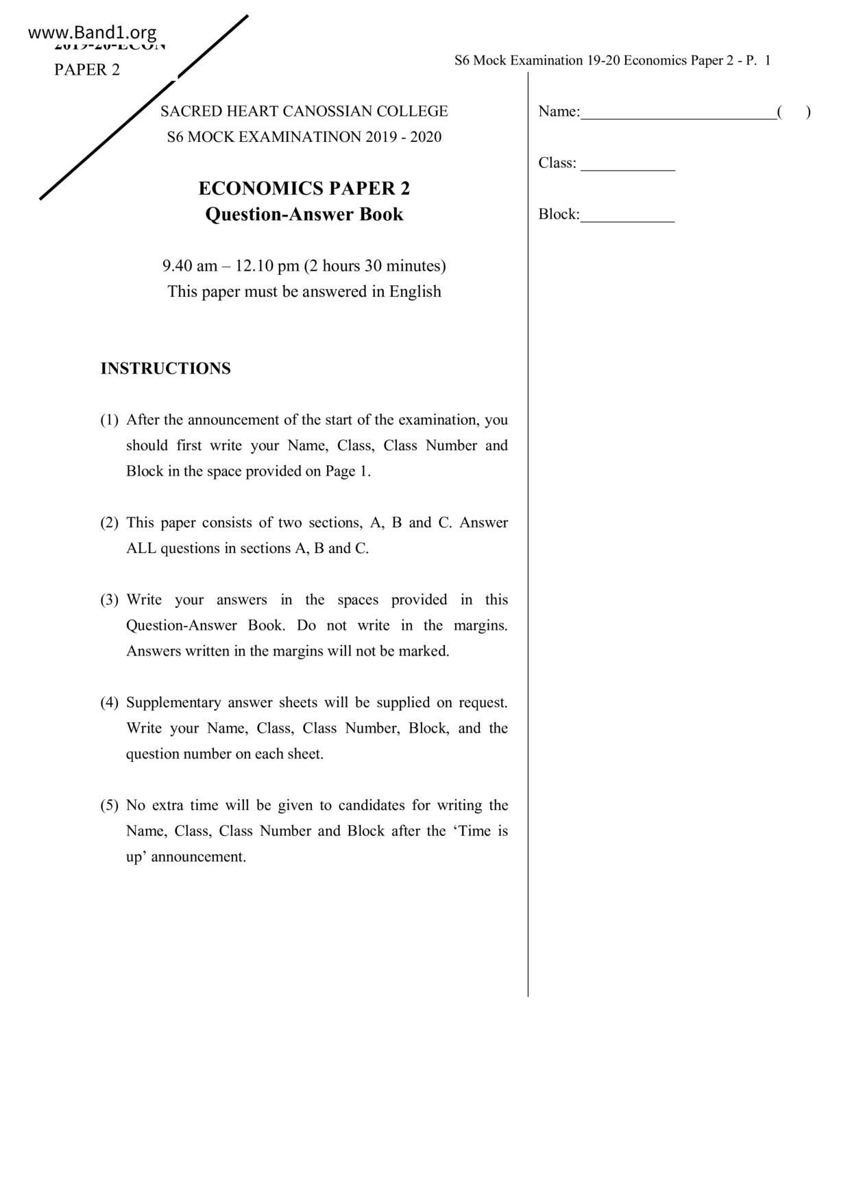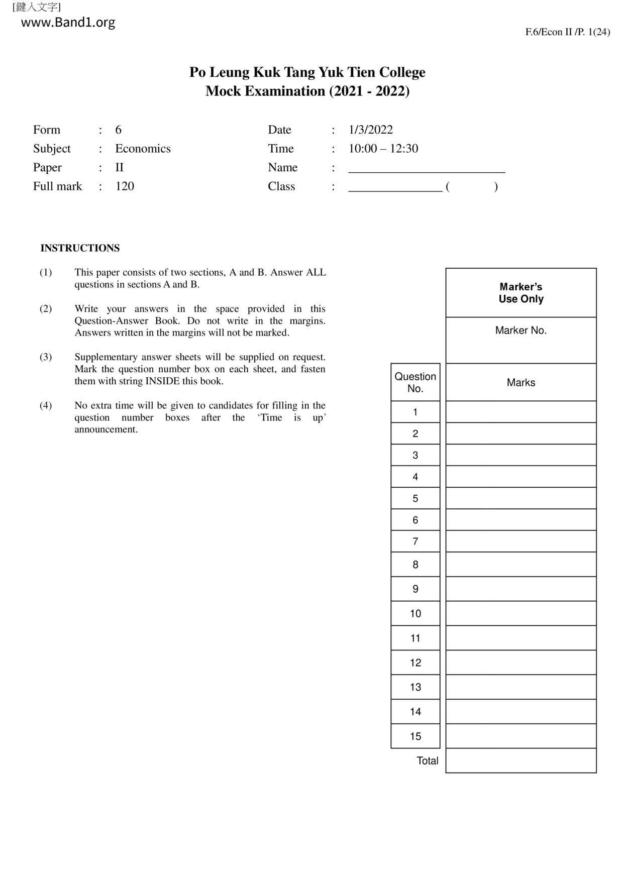 中六 經濟 可風中學(嗇色園主辦)