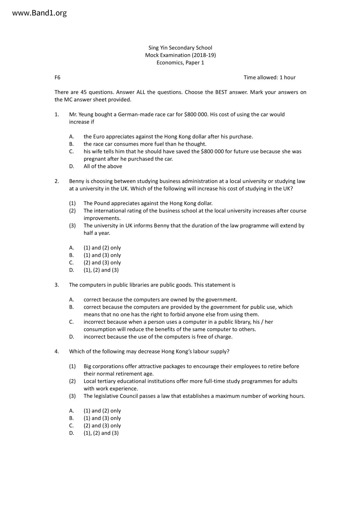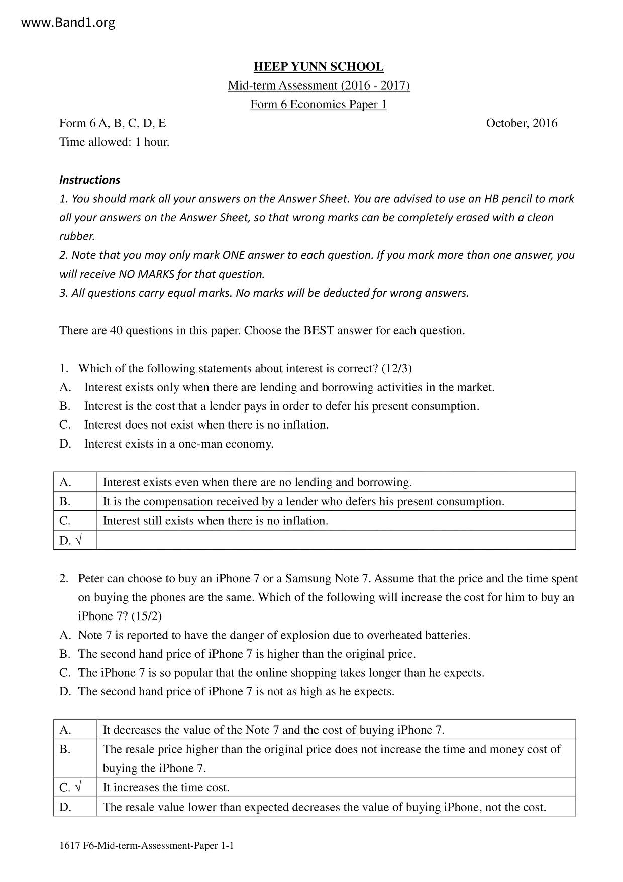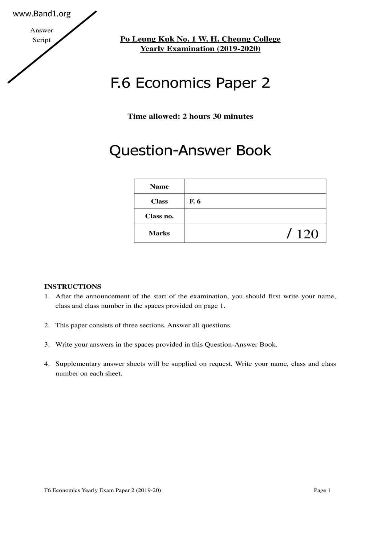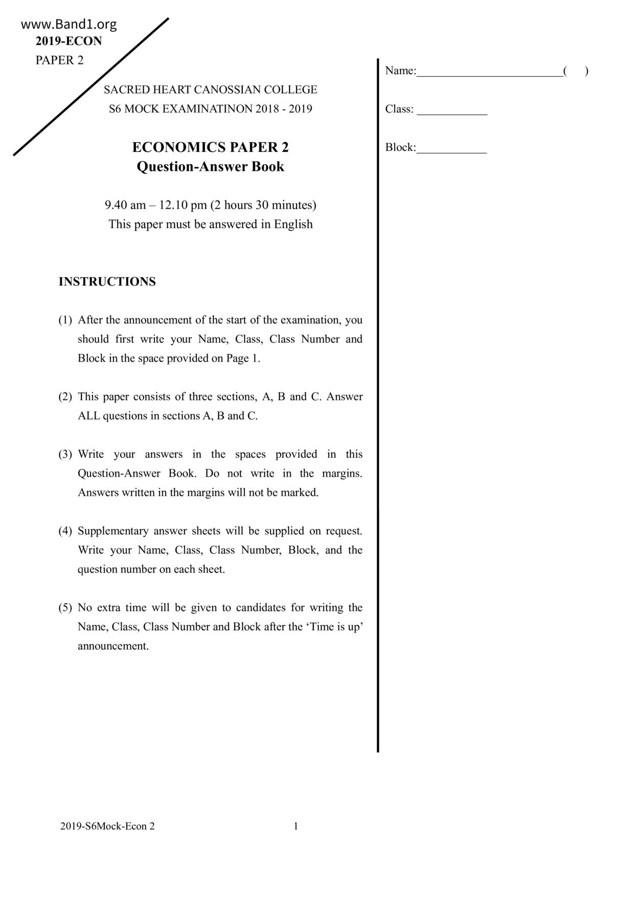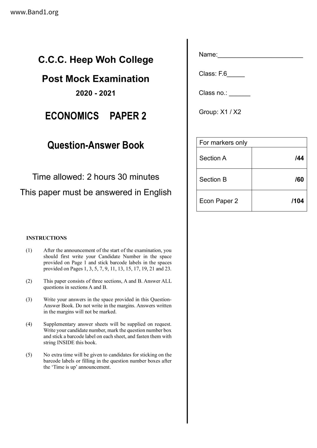 中六 經濟 可風中學(嗇色園主辦)