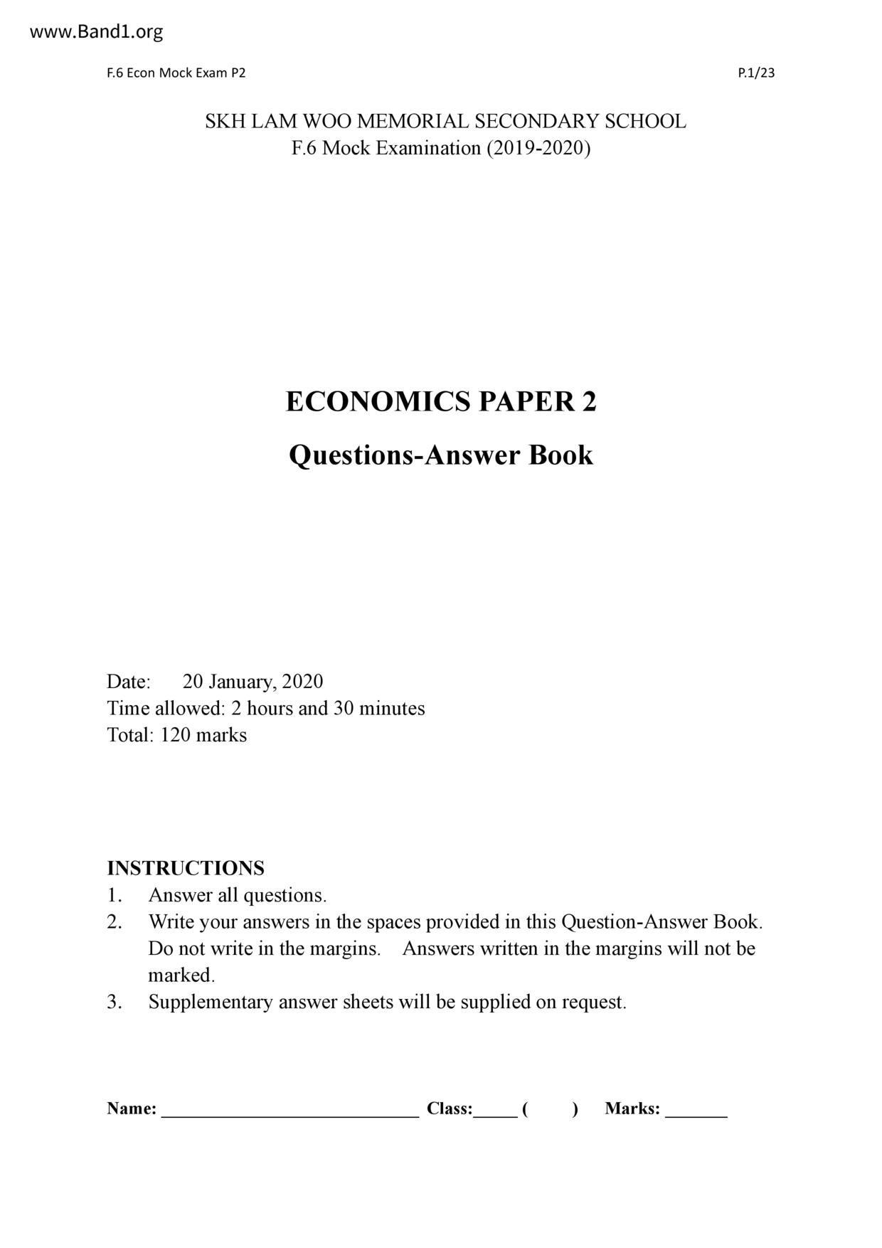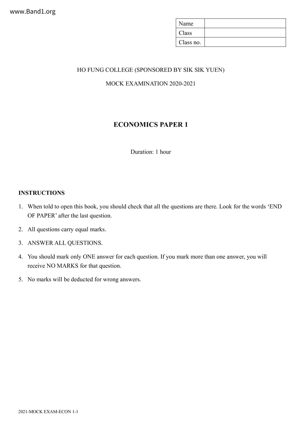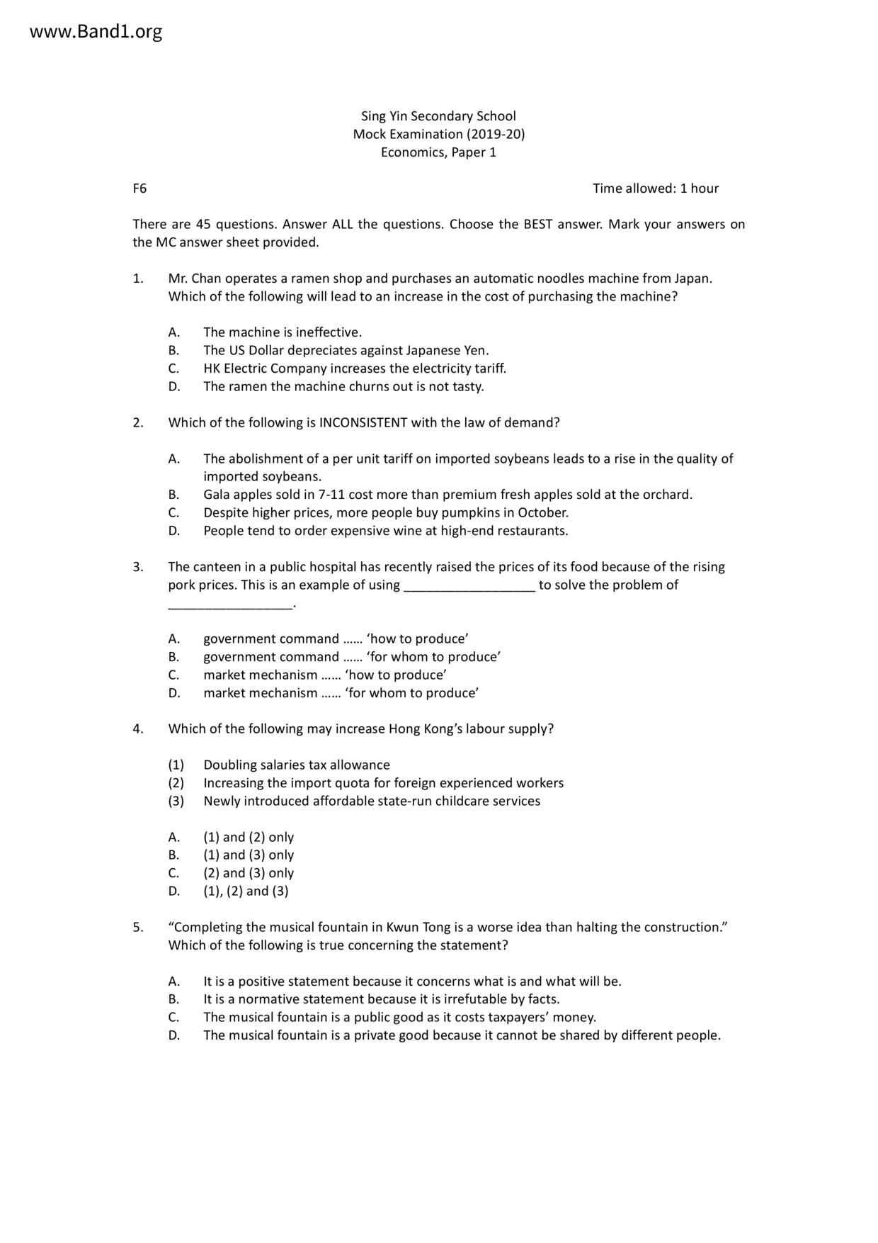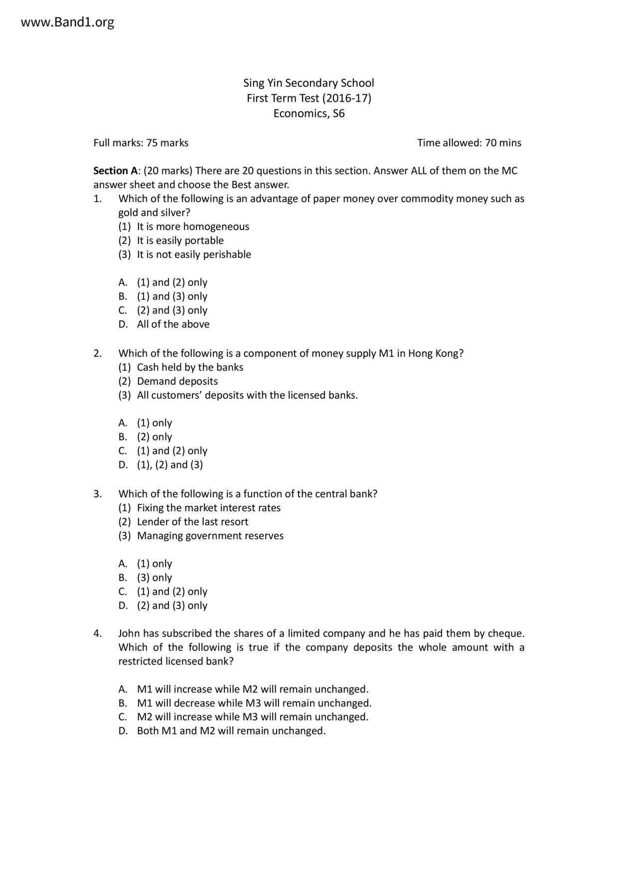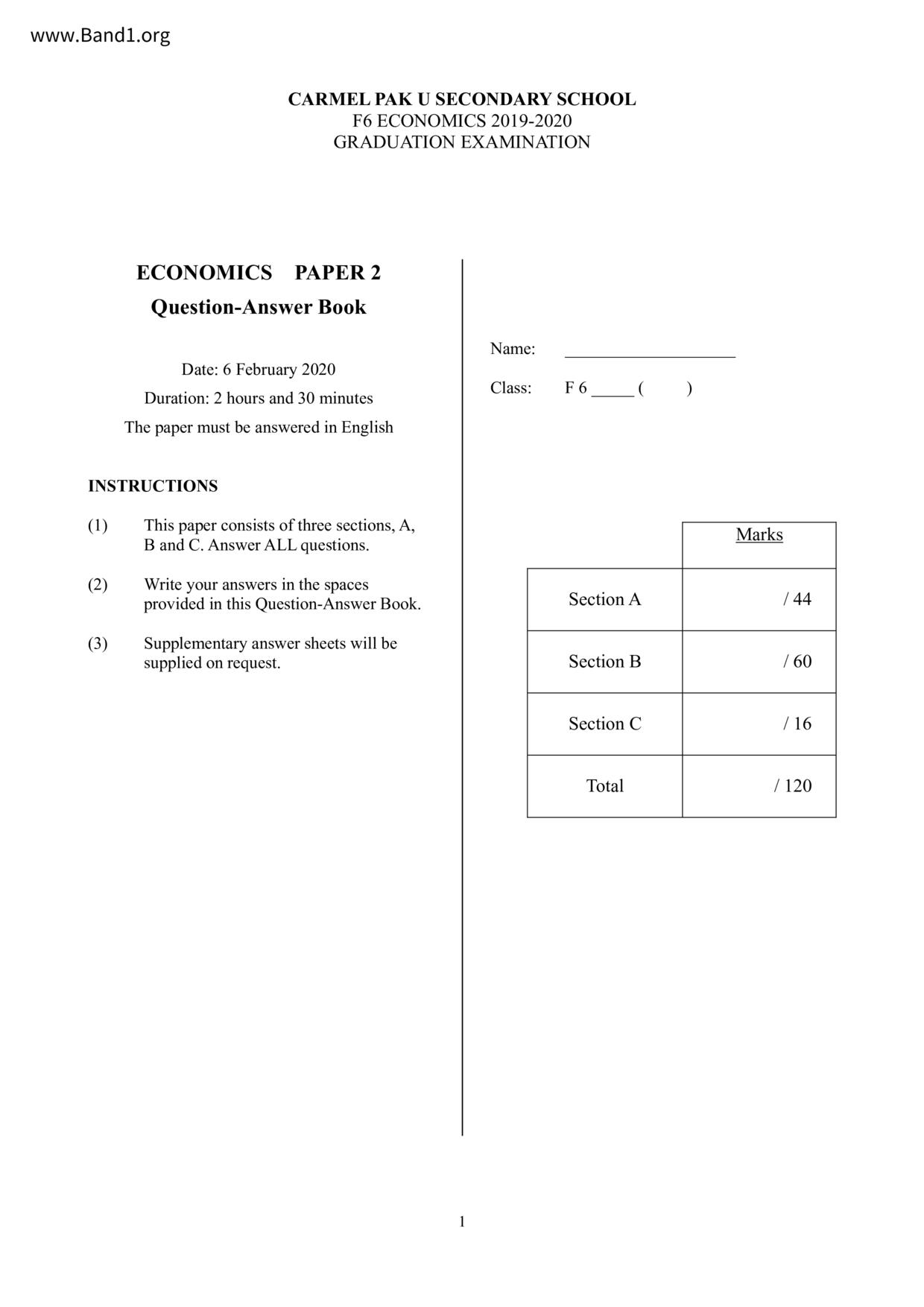 中六 經濟 可風中學(嗇色園主辦)