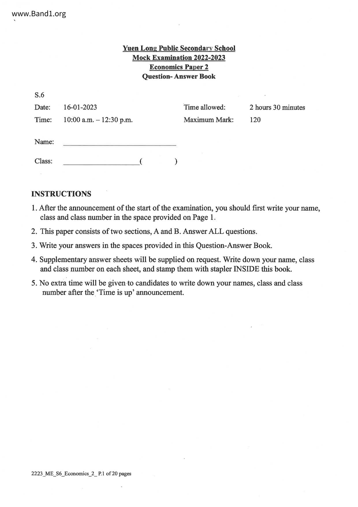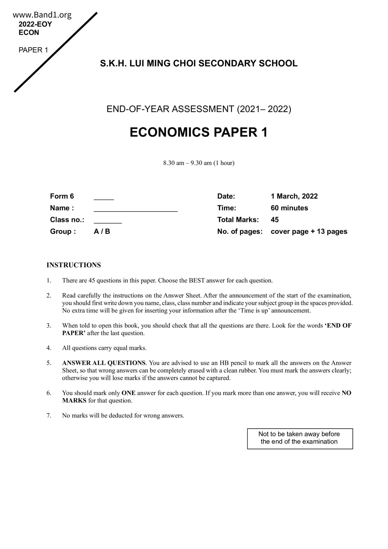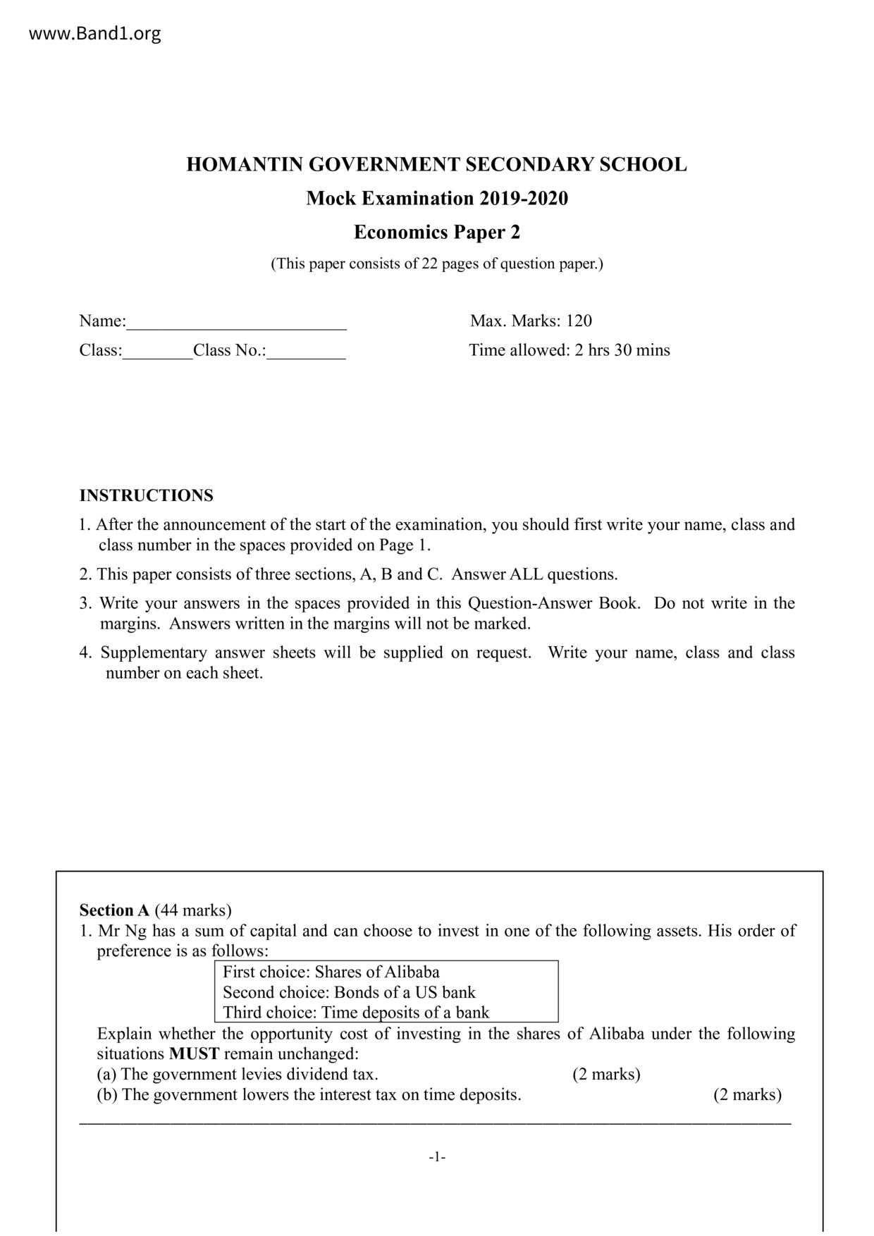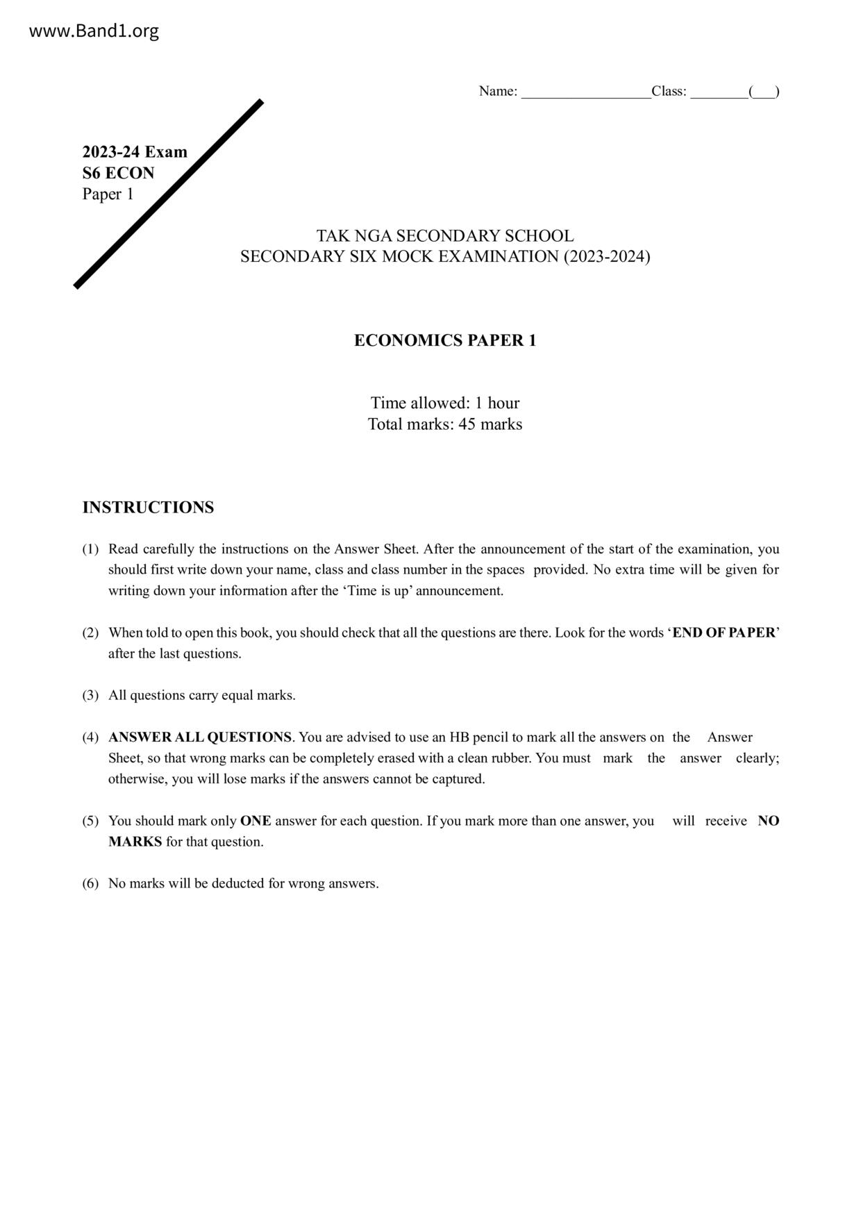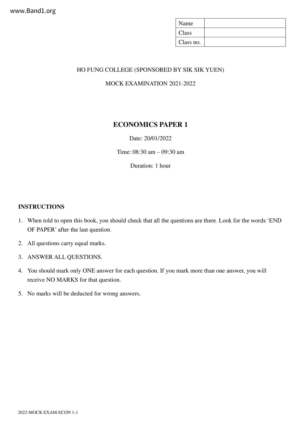 中六 經濟 可風中學(嗇色園主辦)