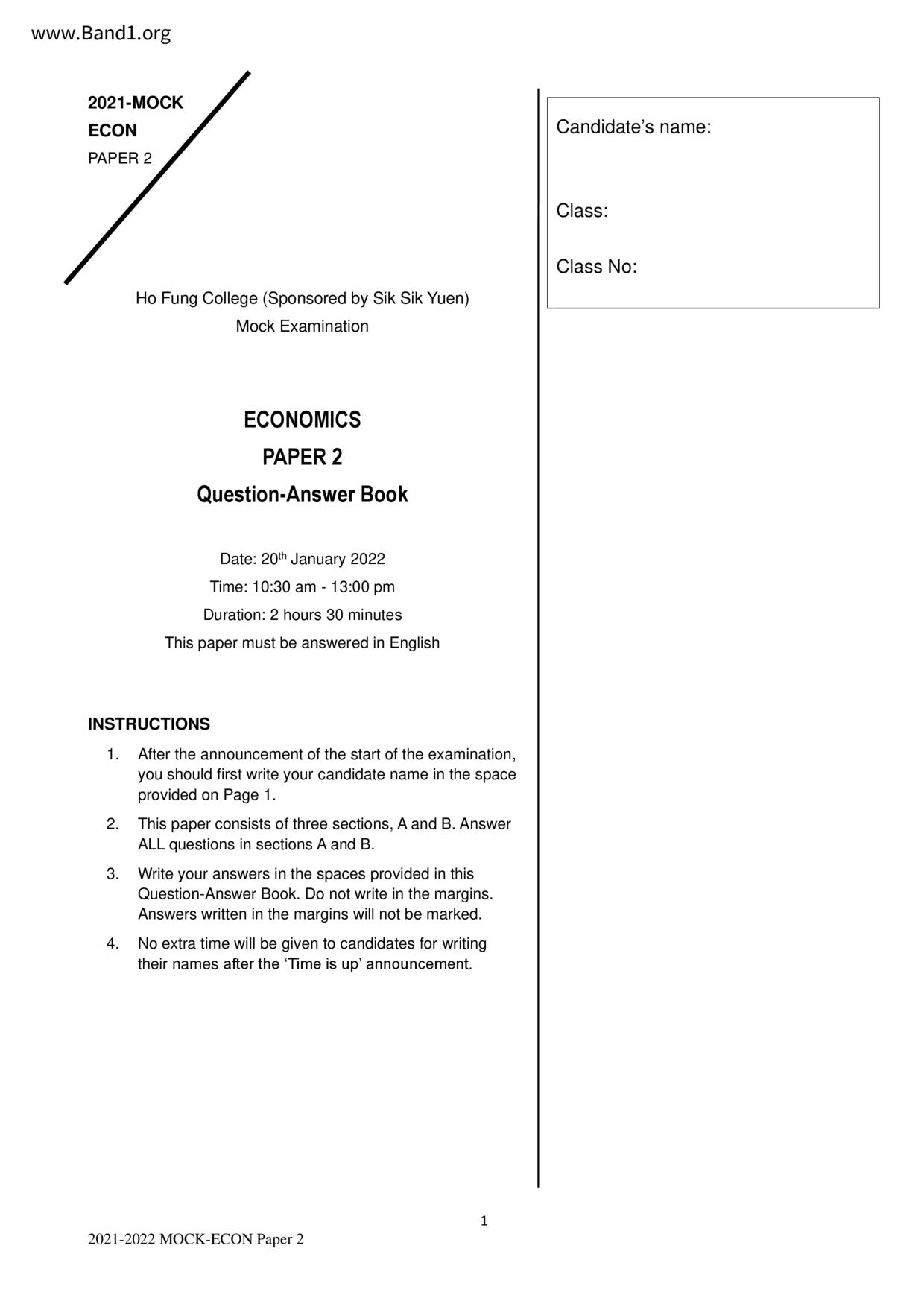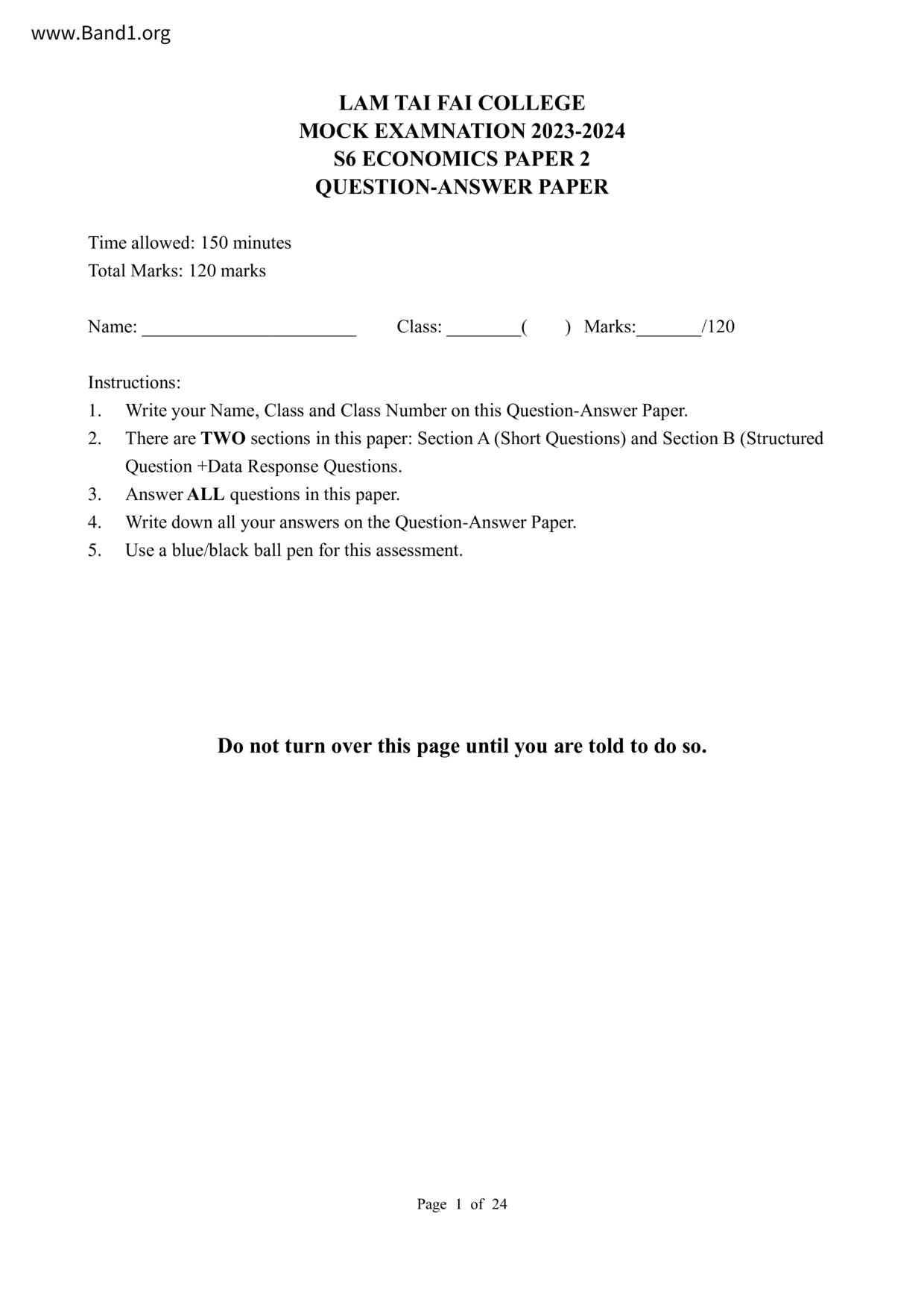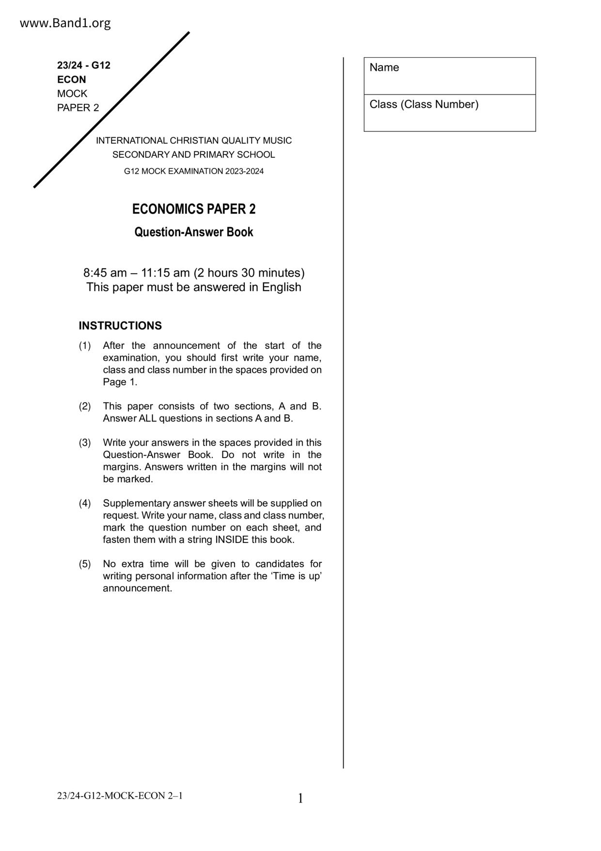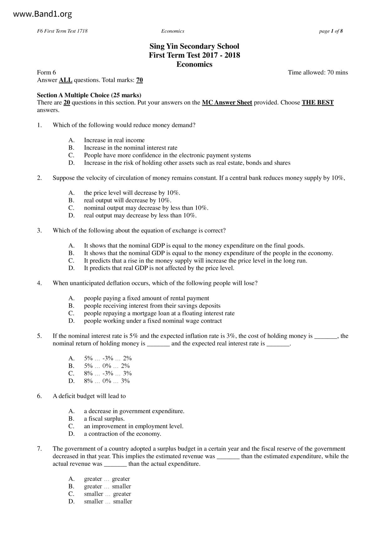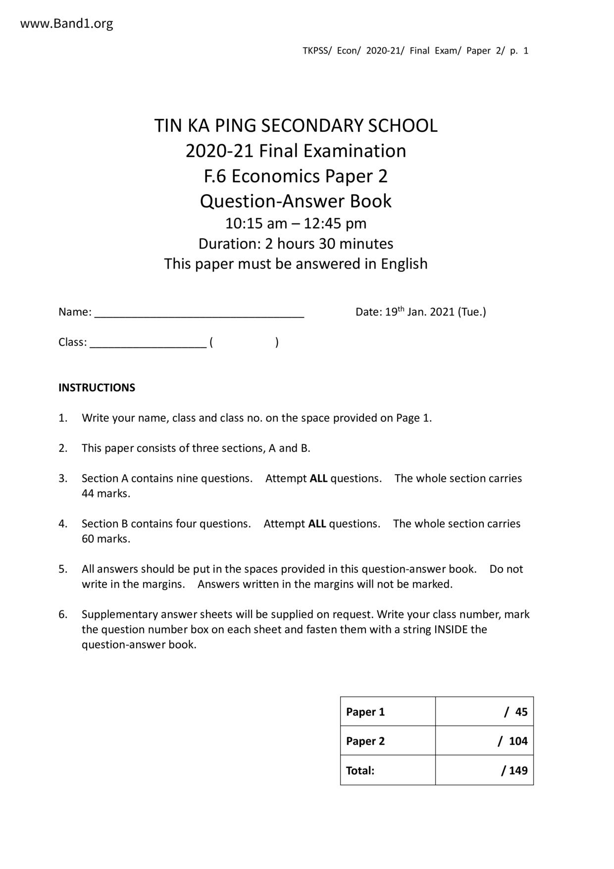 中六 經濟 可風中學(嗇色園主辦)