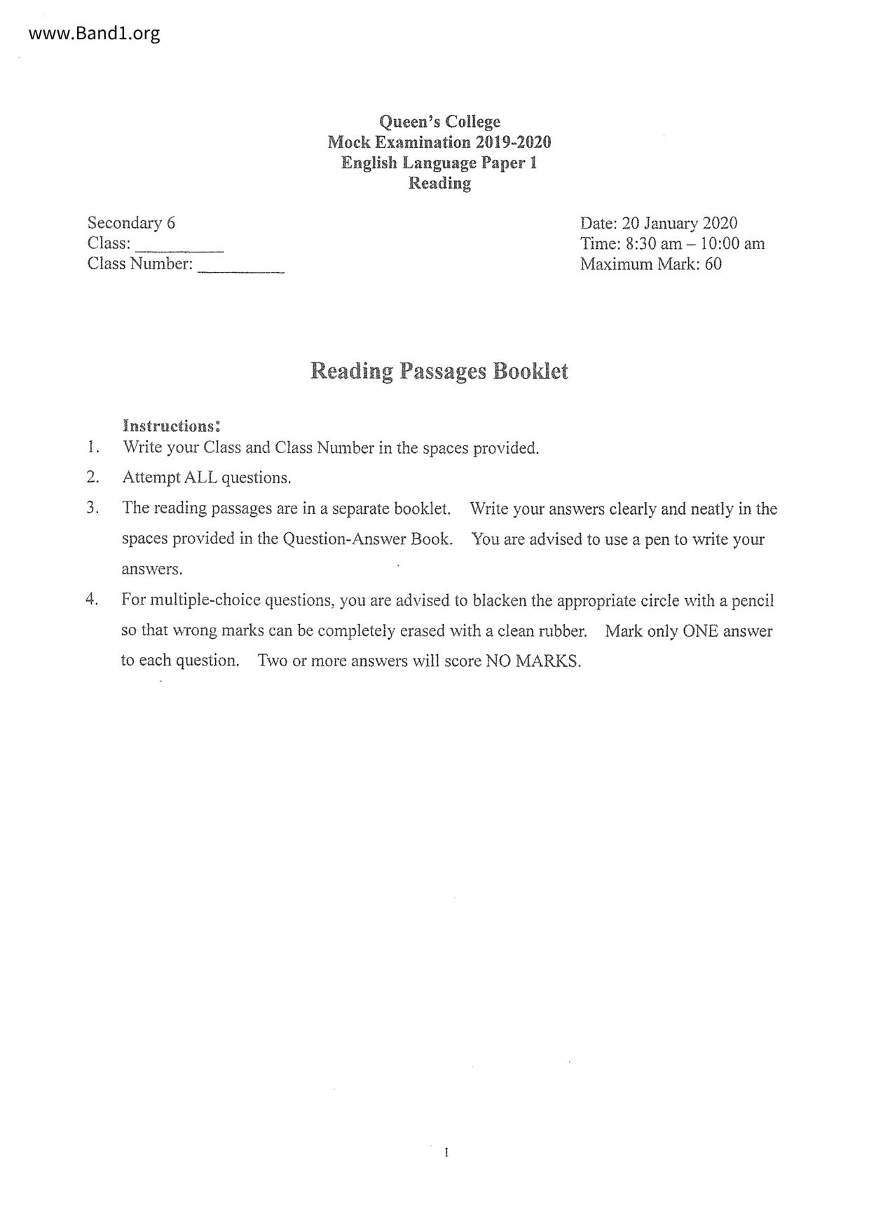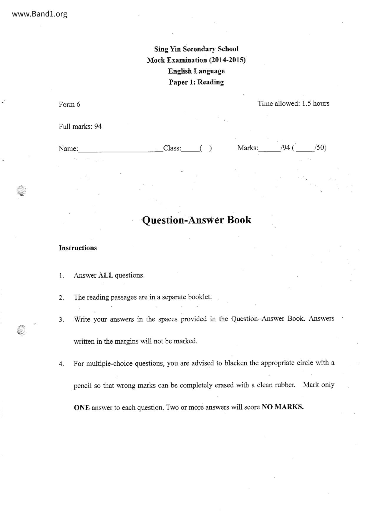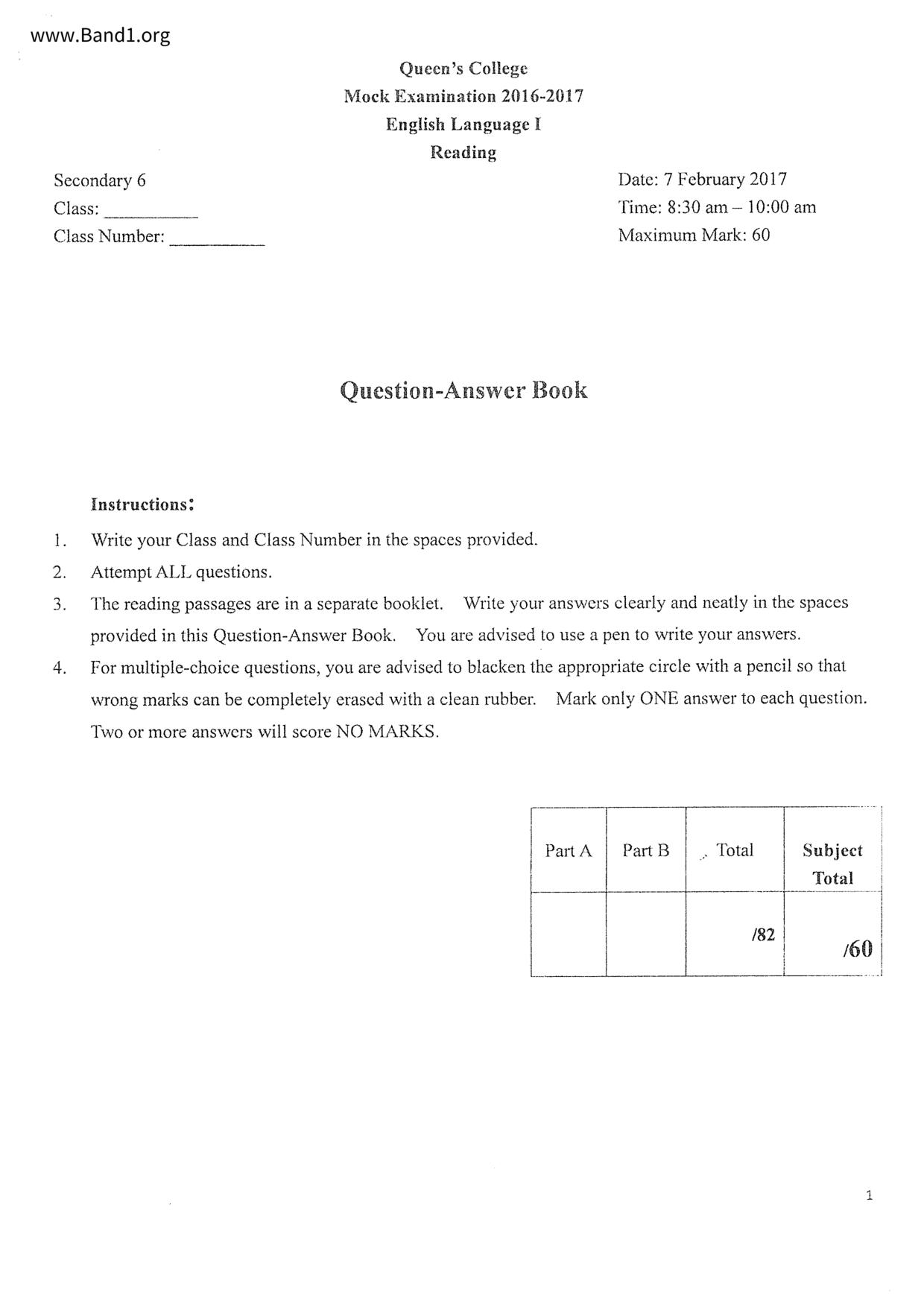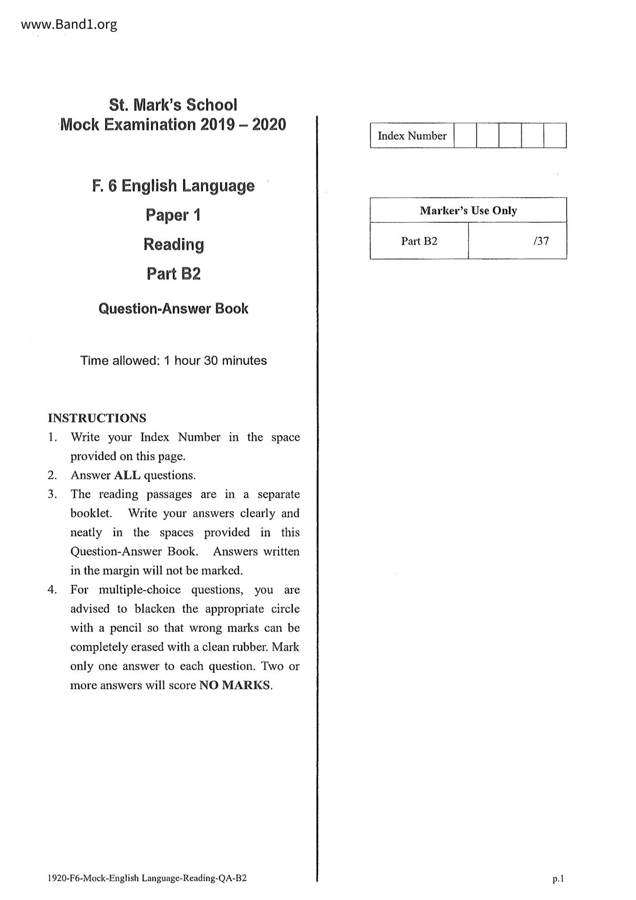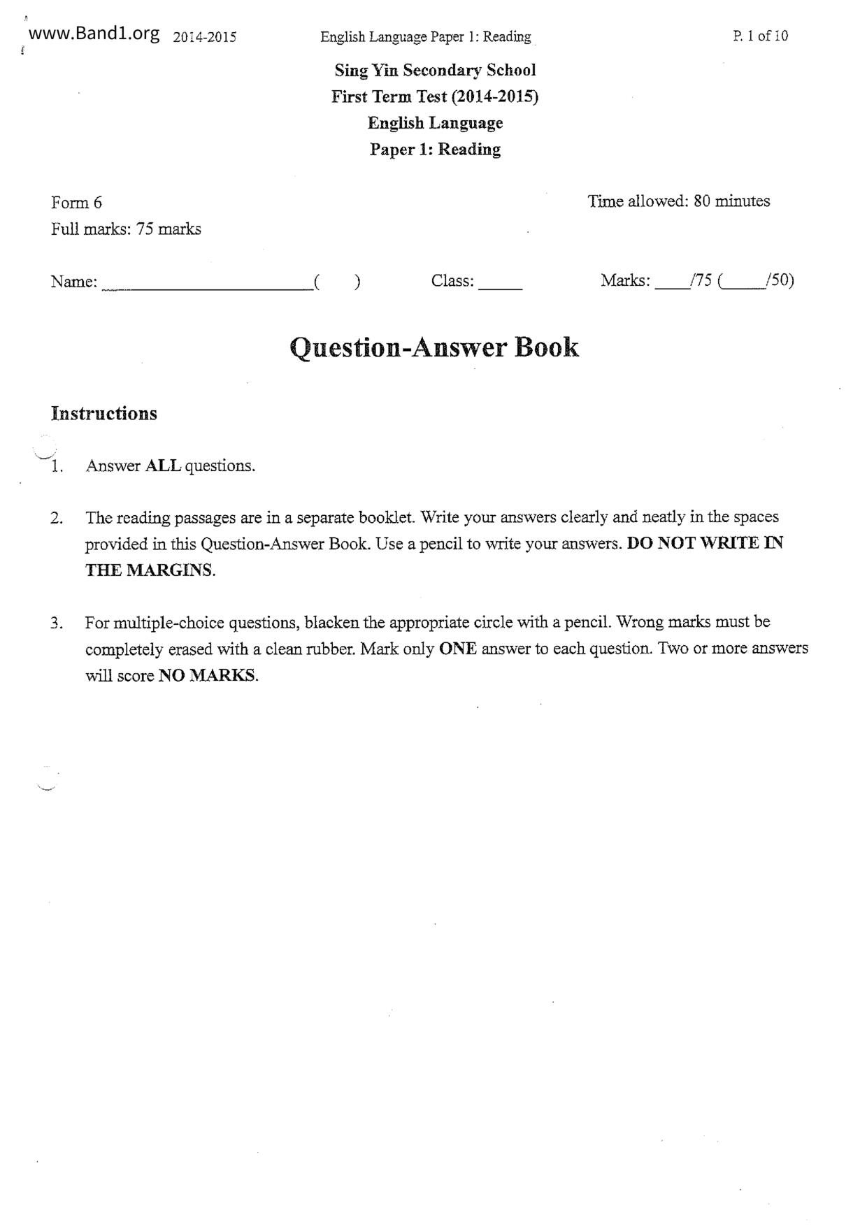 中六 英文 文理書院(九龍)