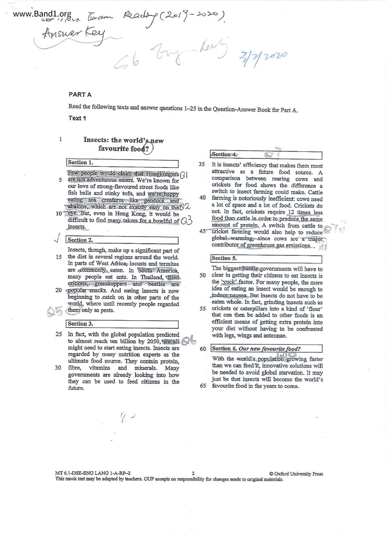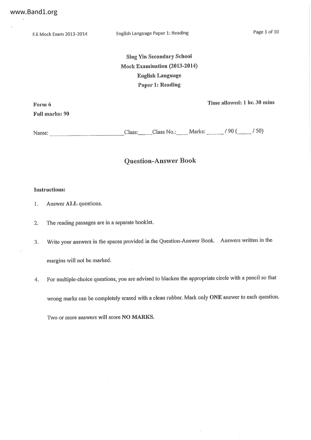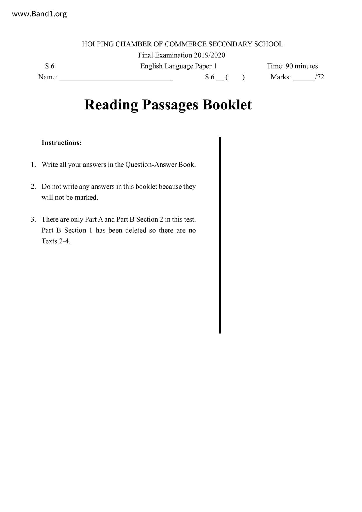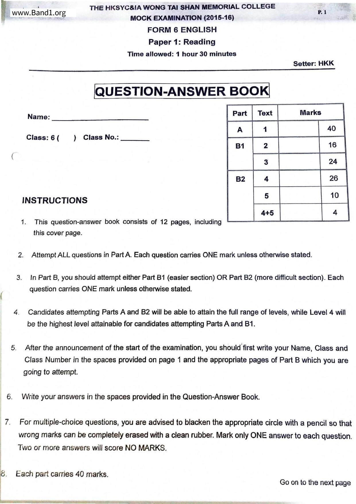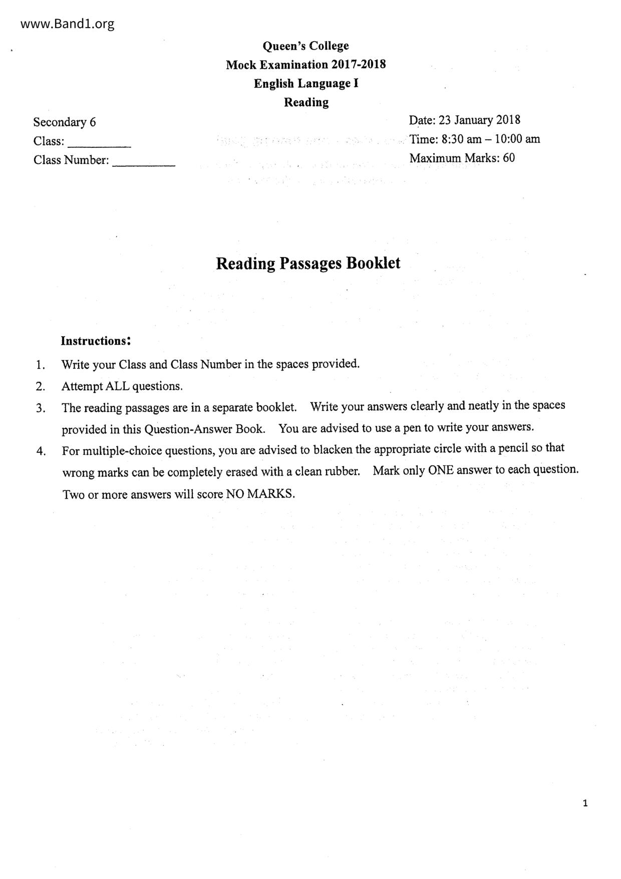中六 英文 文理書院(九龍)