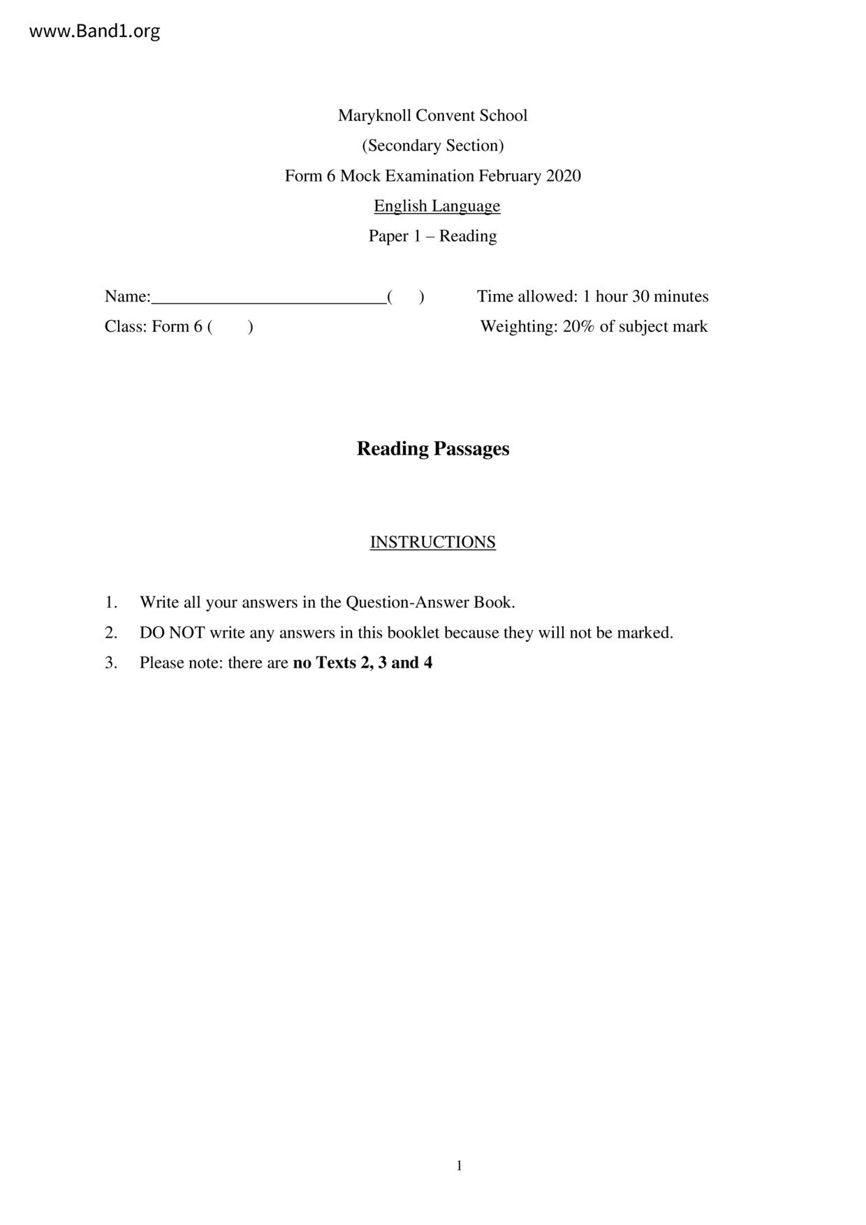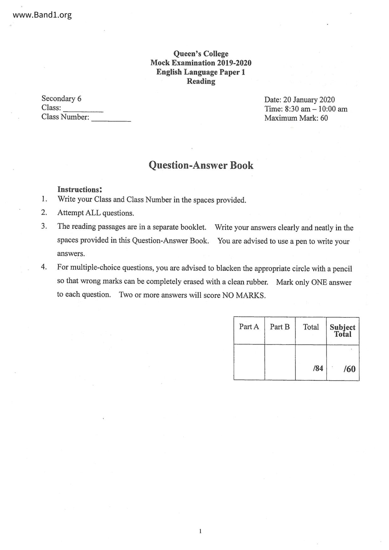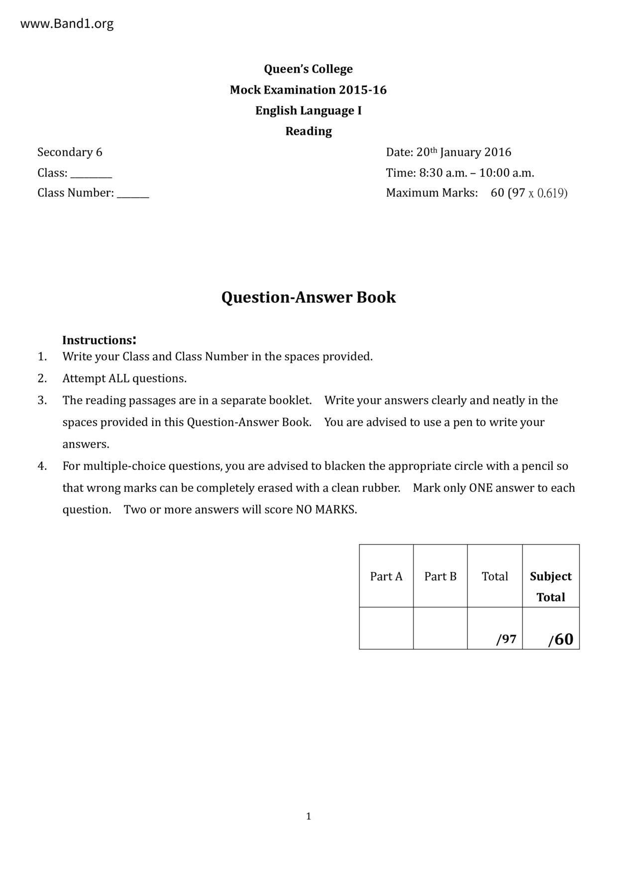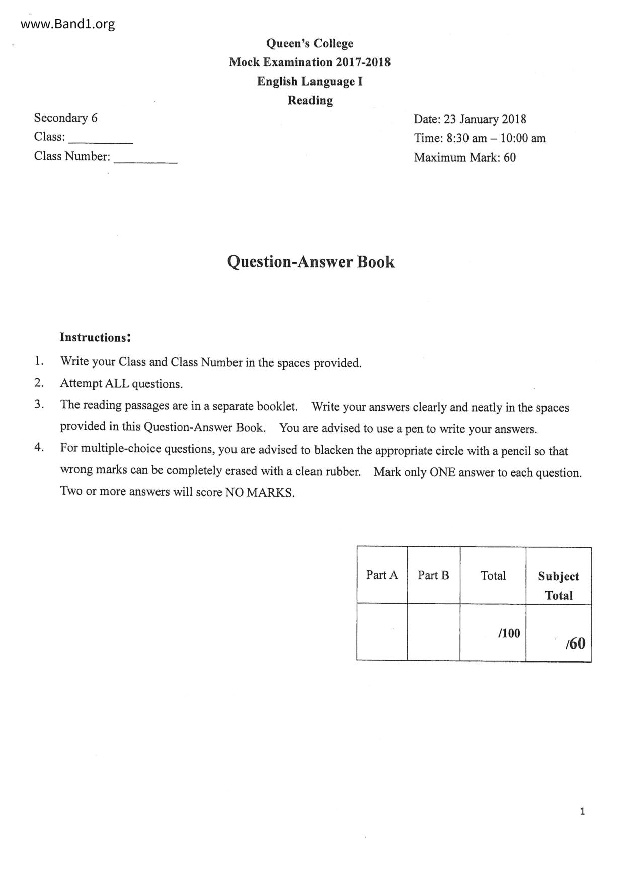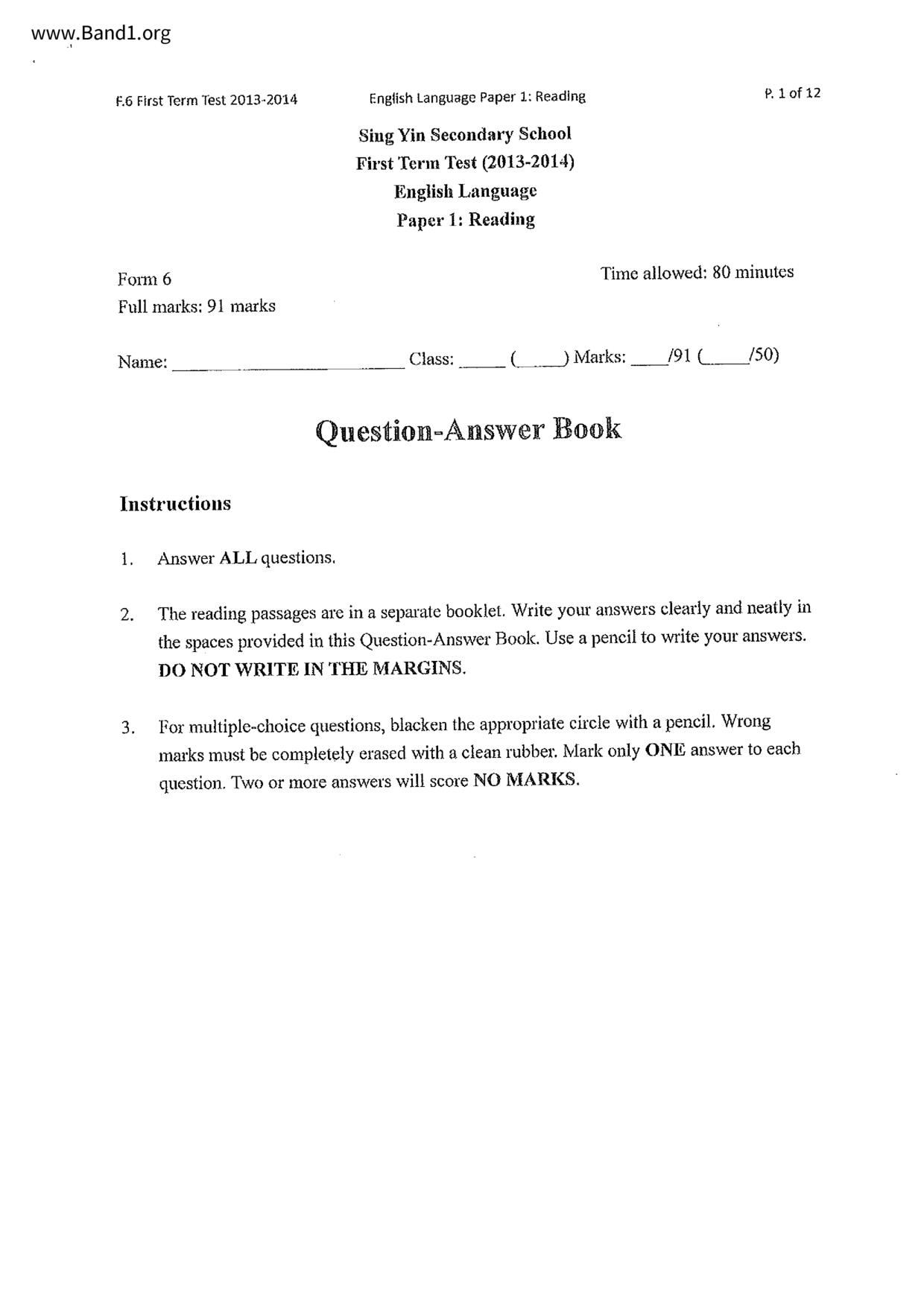 中六 英文 文理書院(九龍)