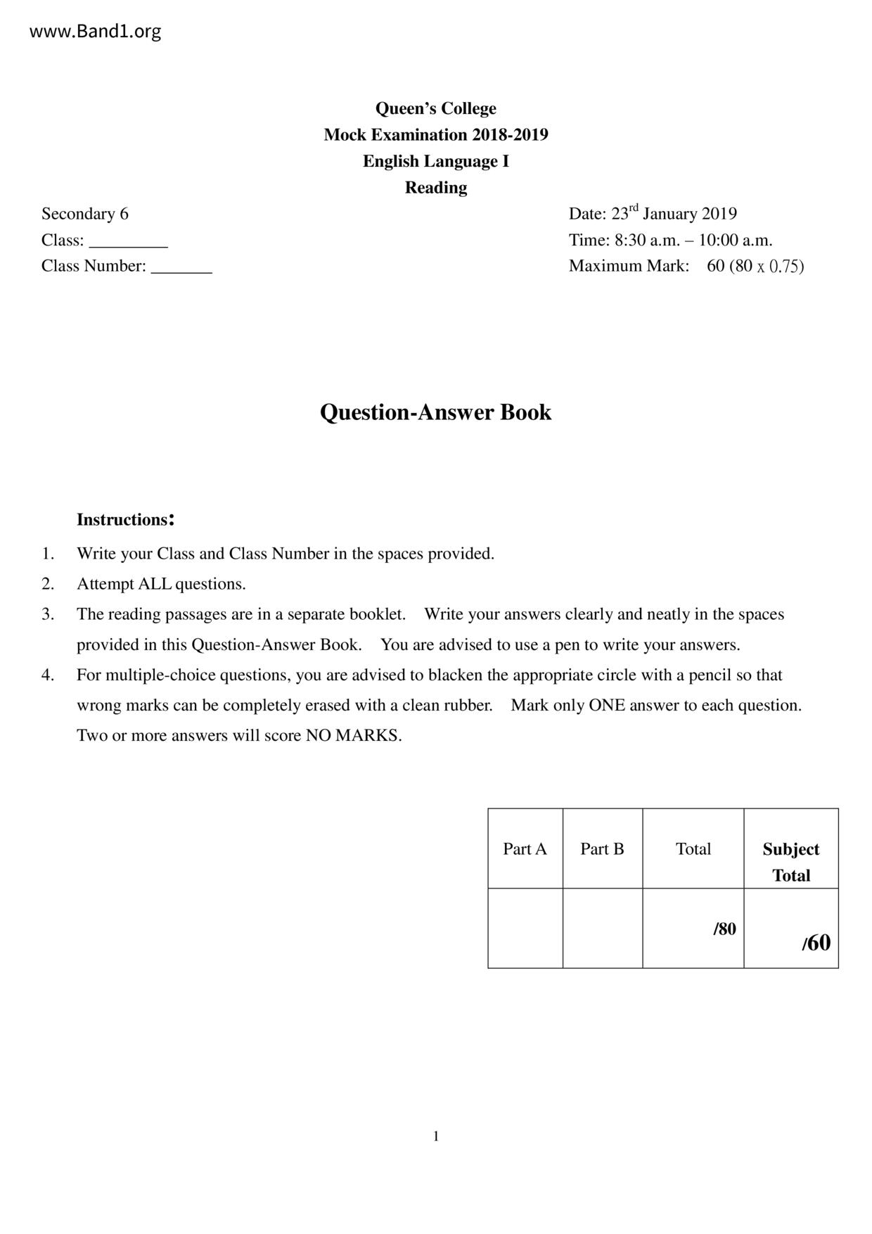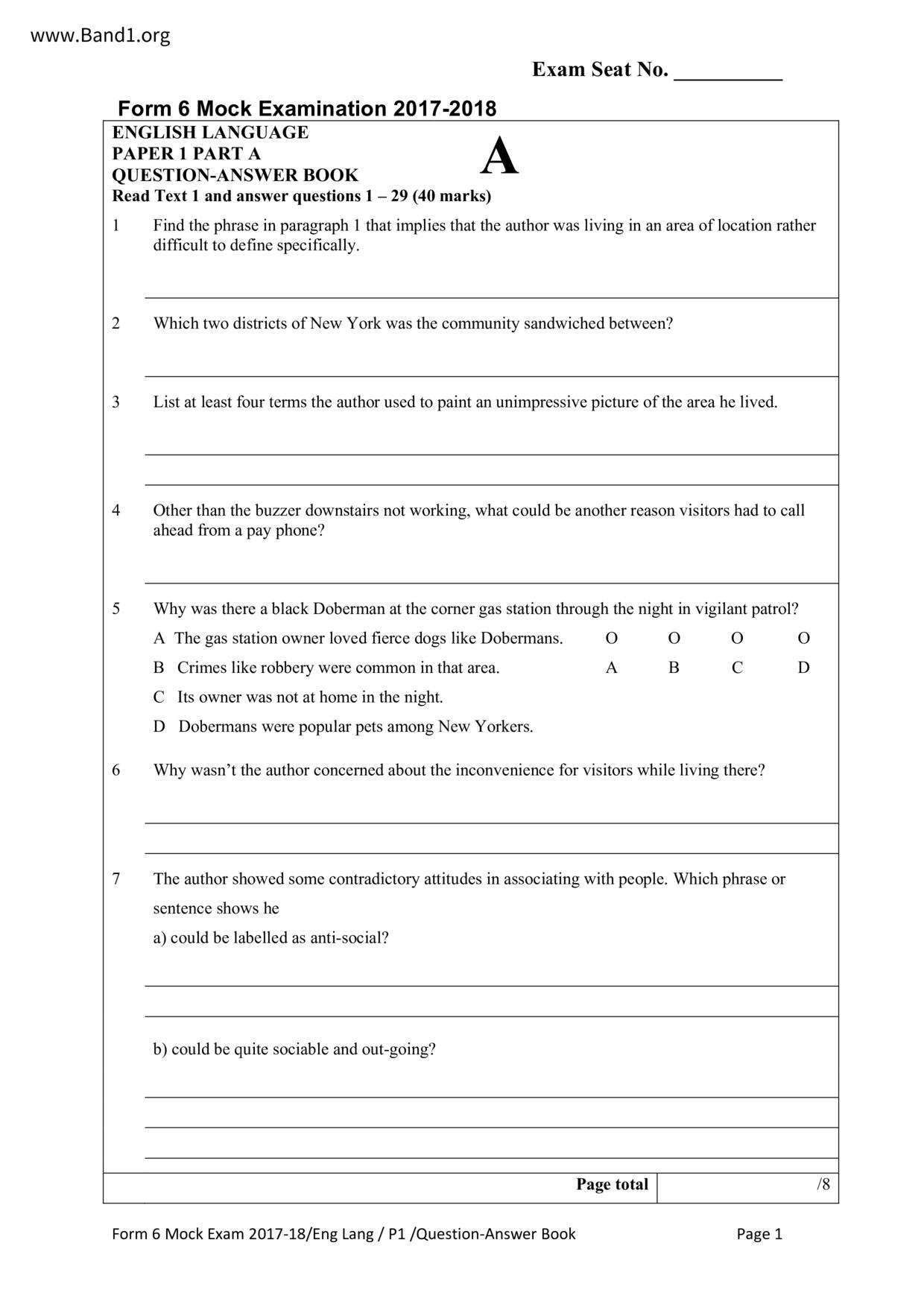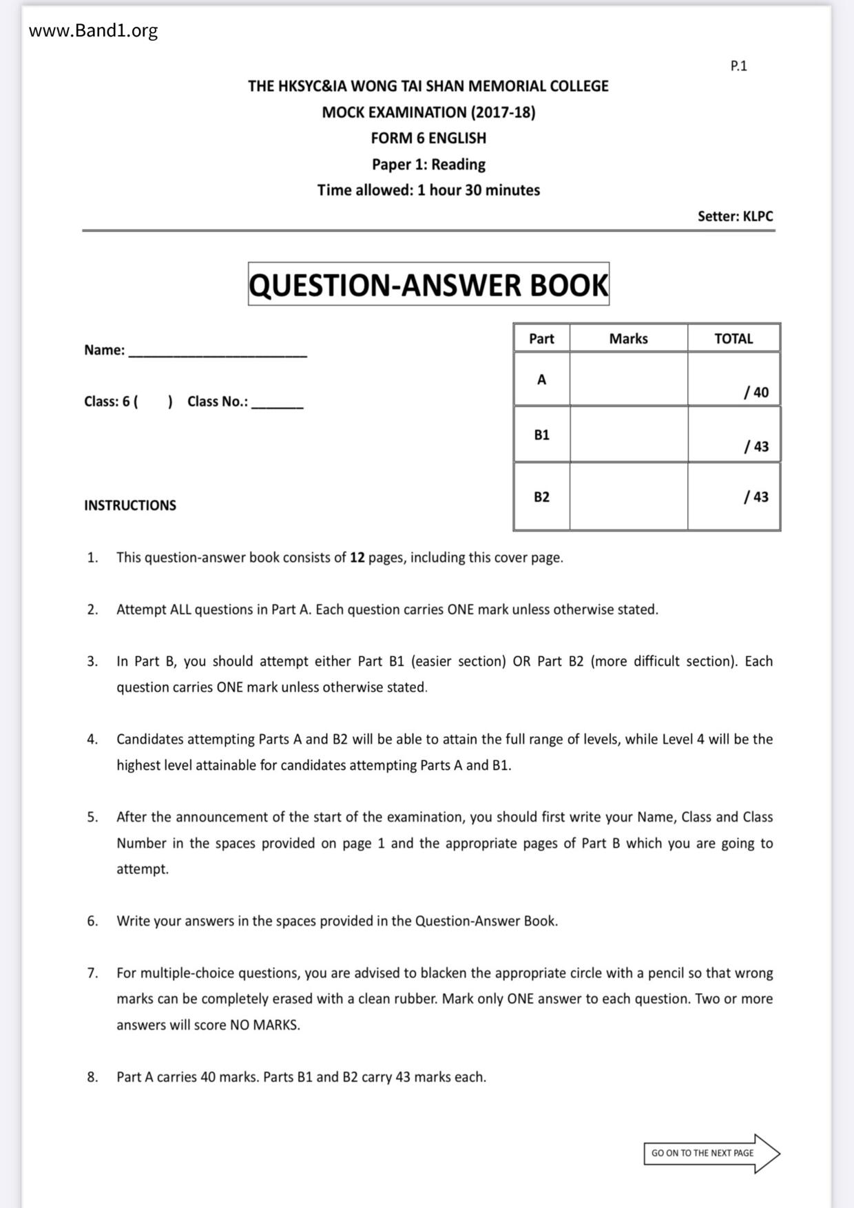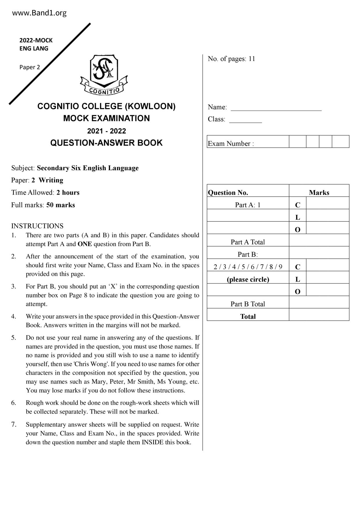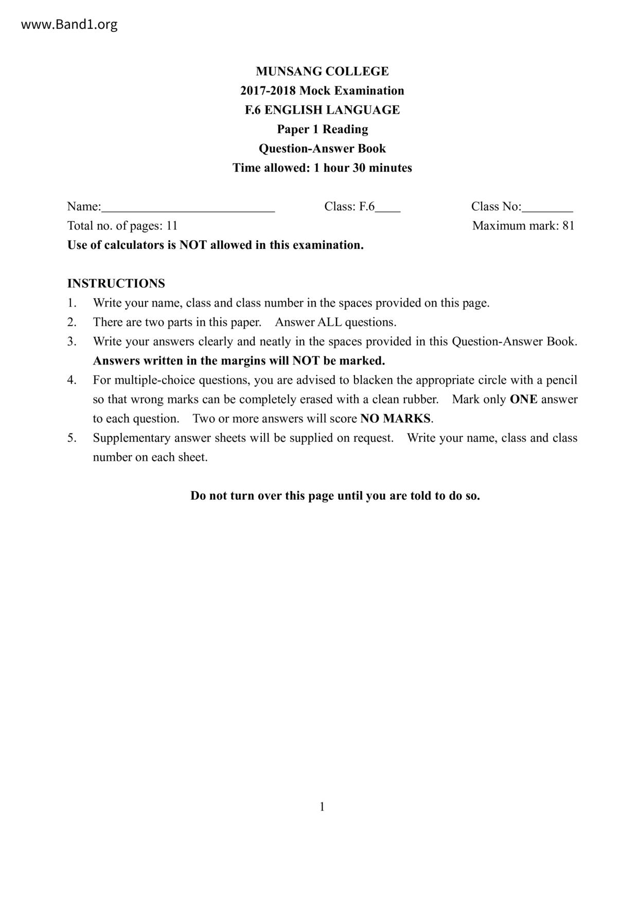 中六 英文 文理書院(九龍)