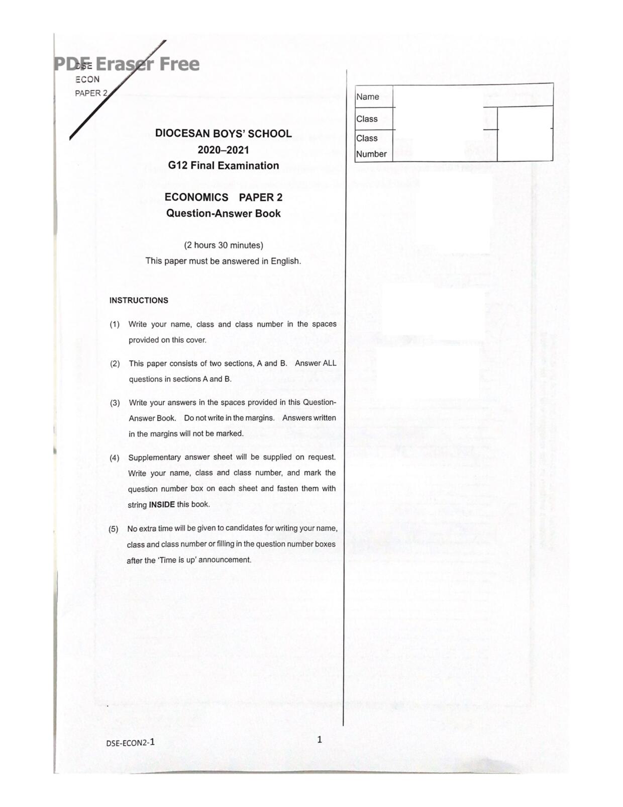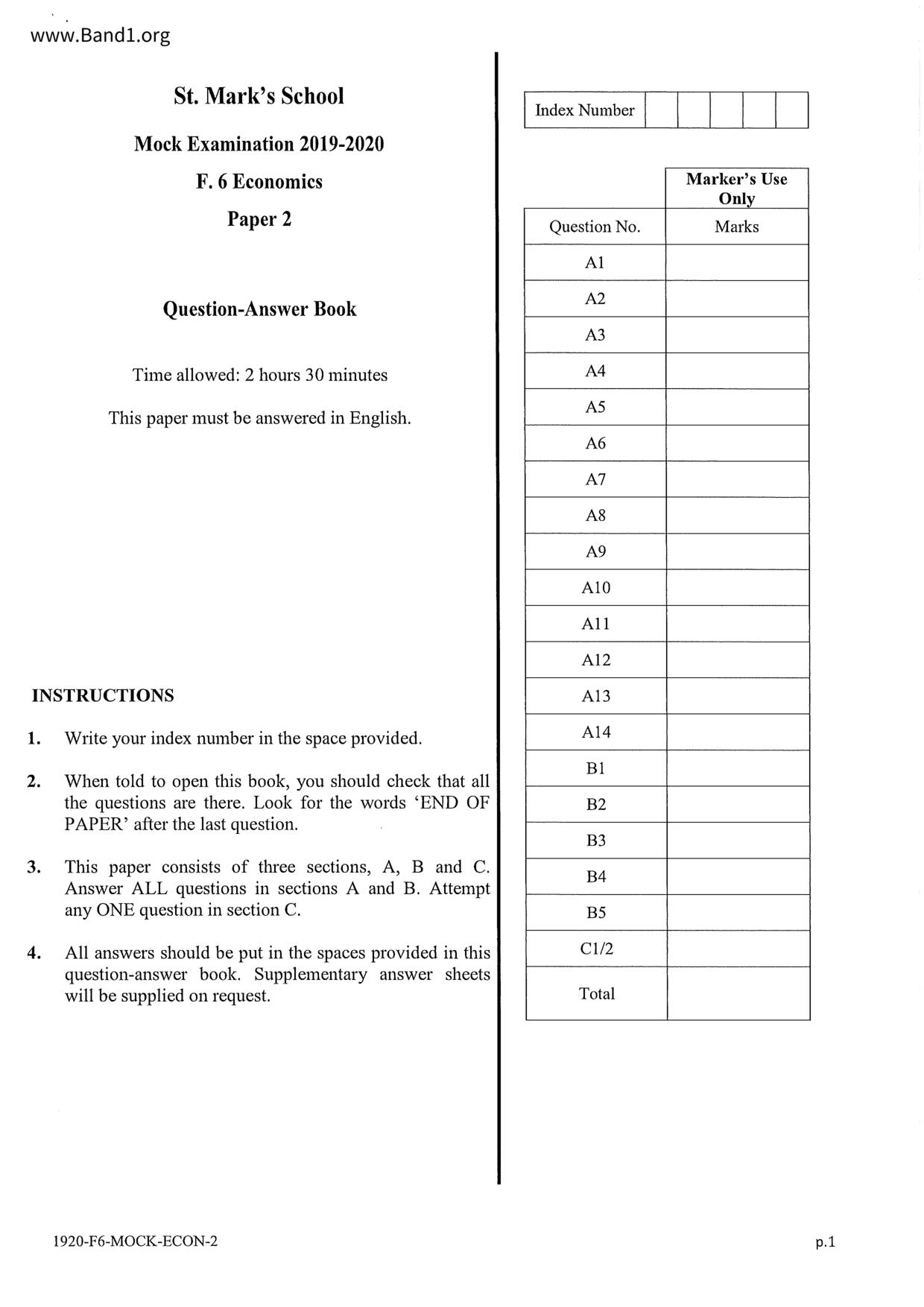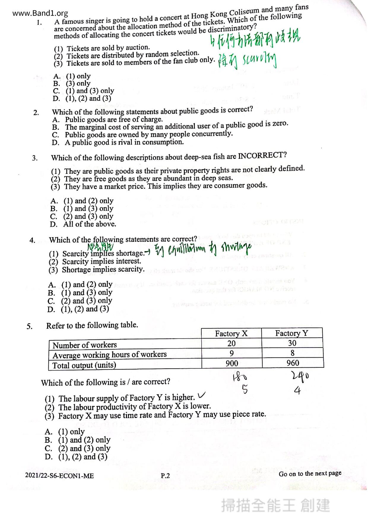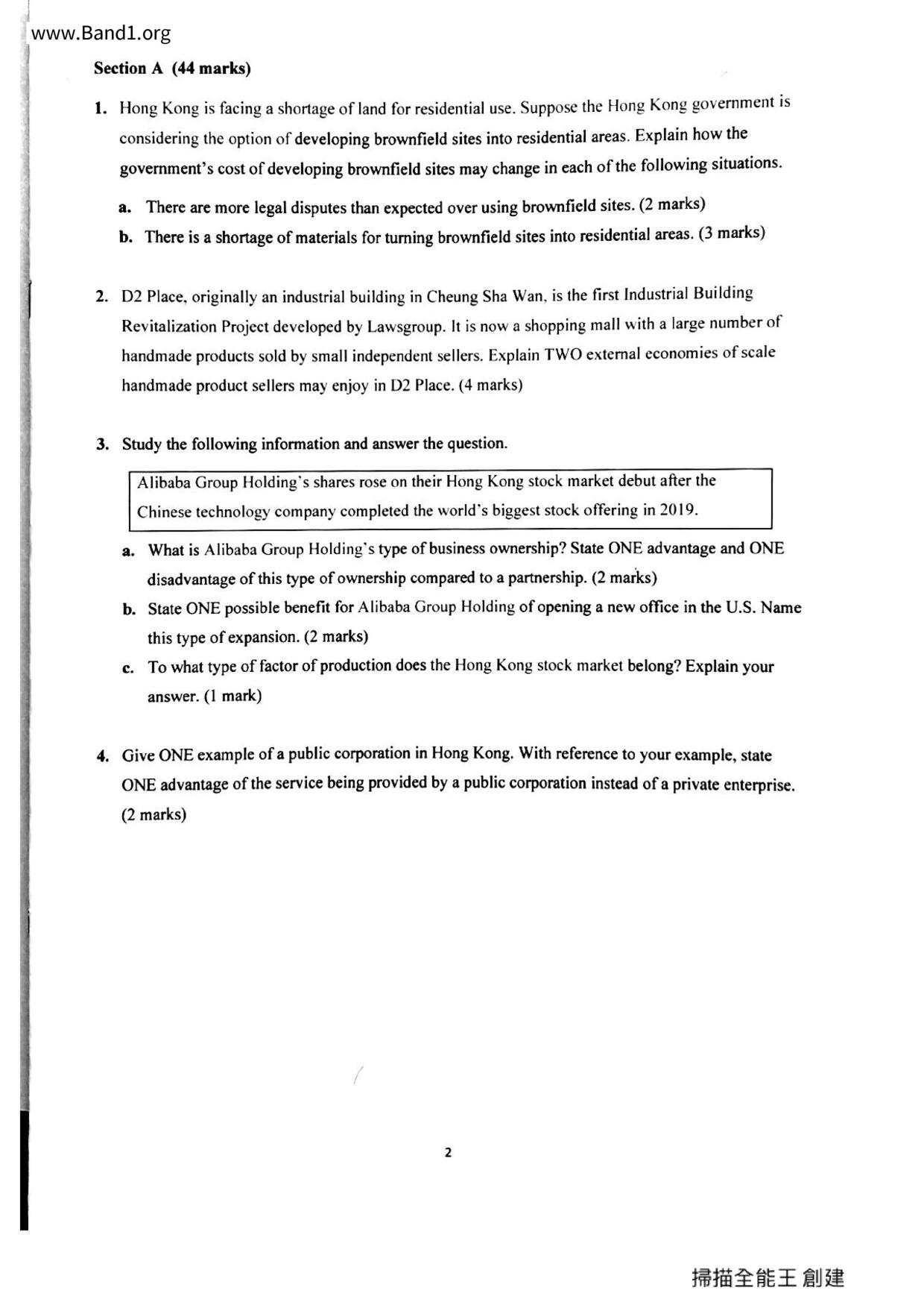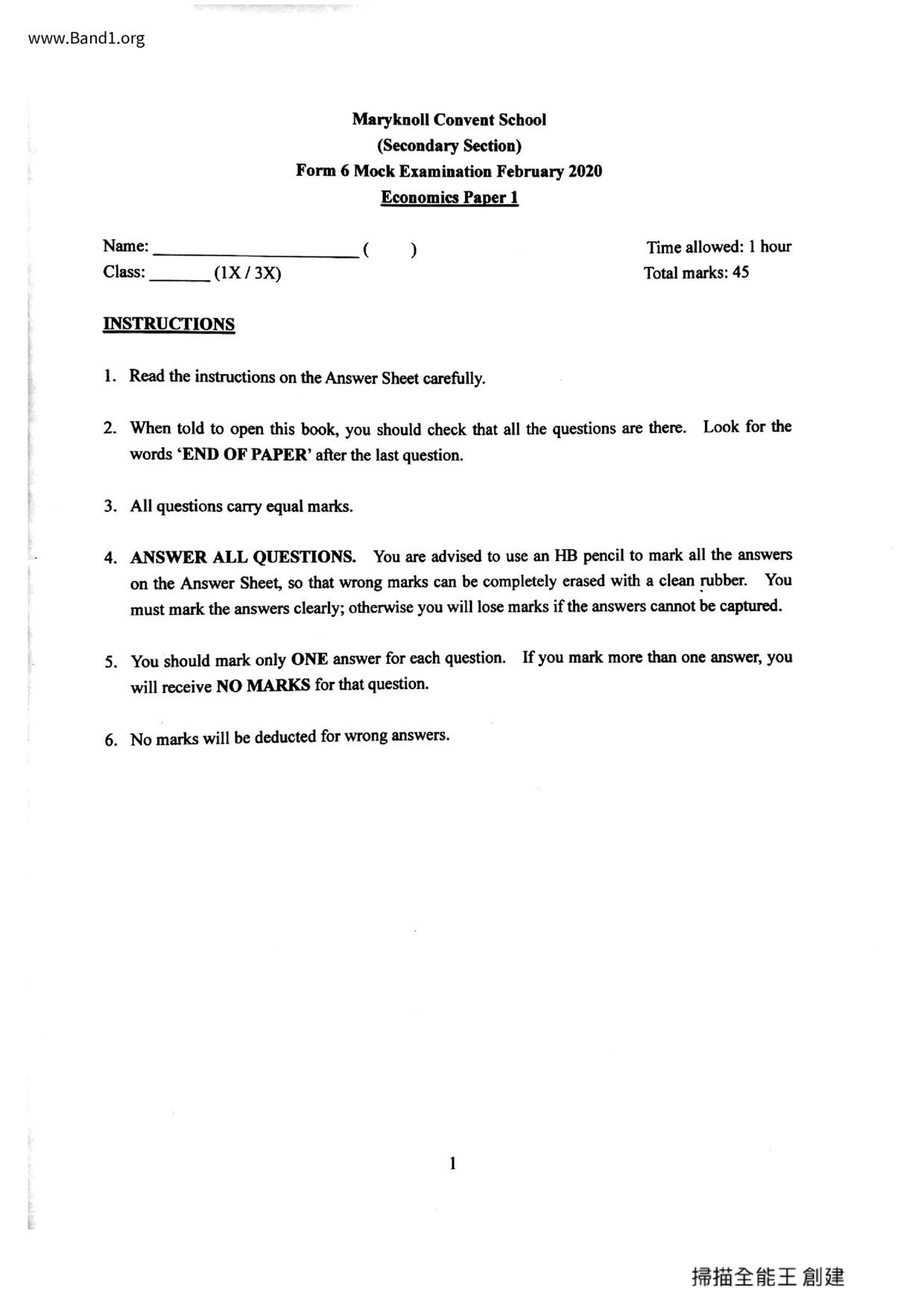 中六 經濟 華仁書院(九龍)