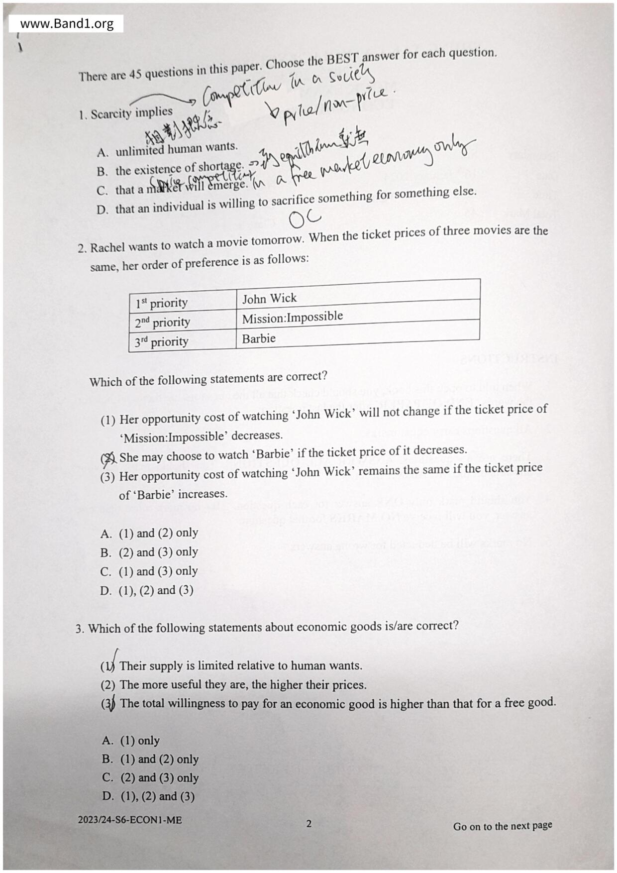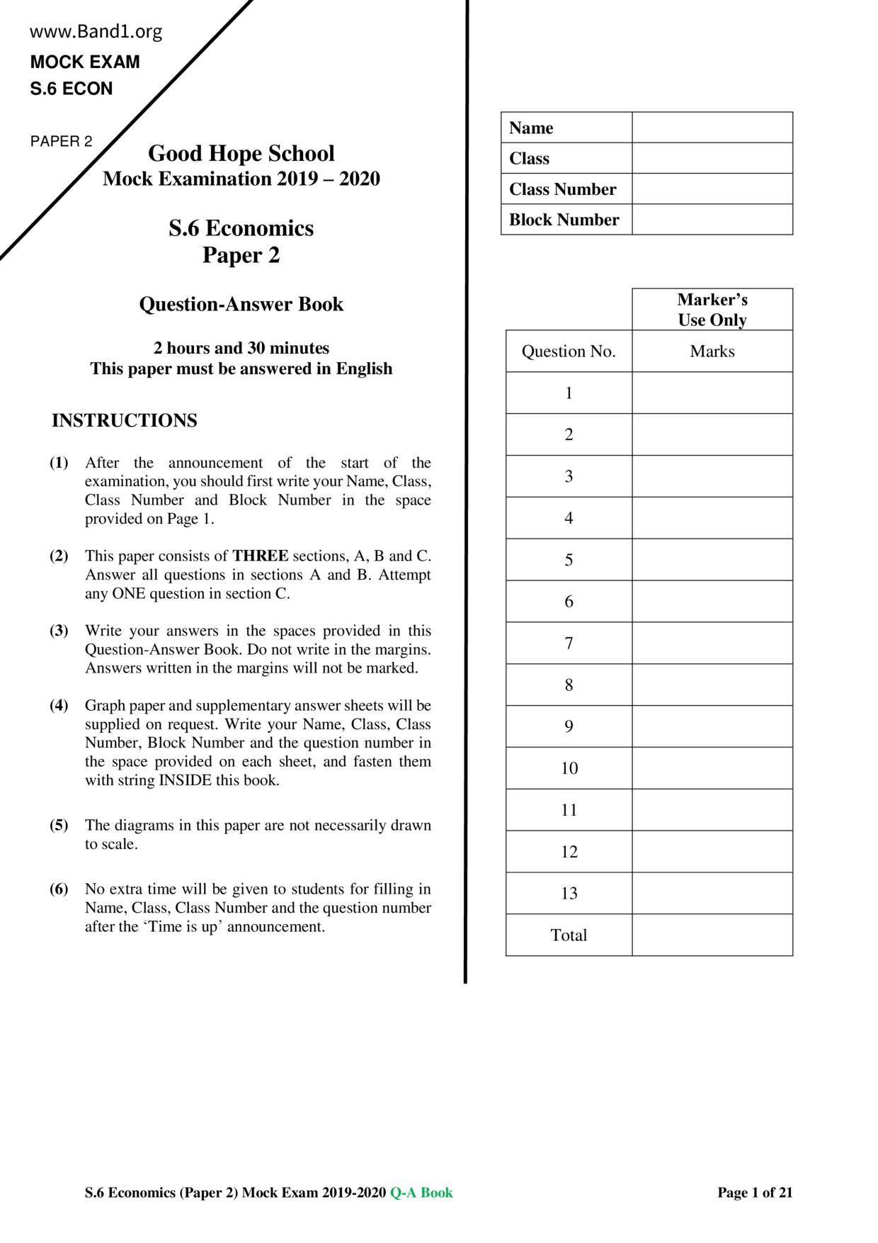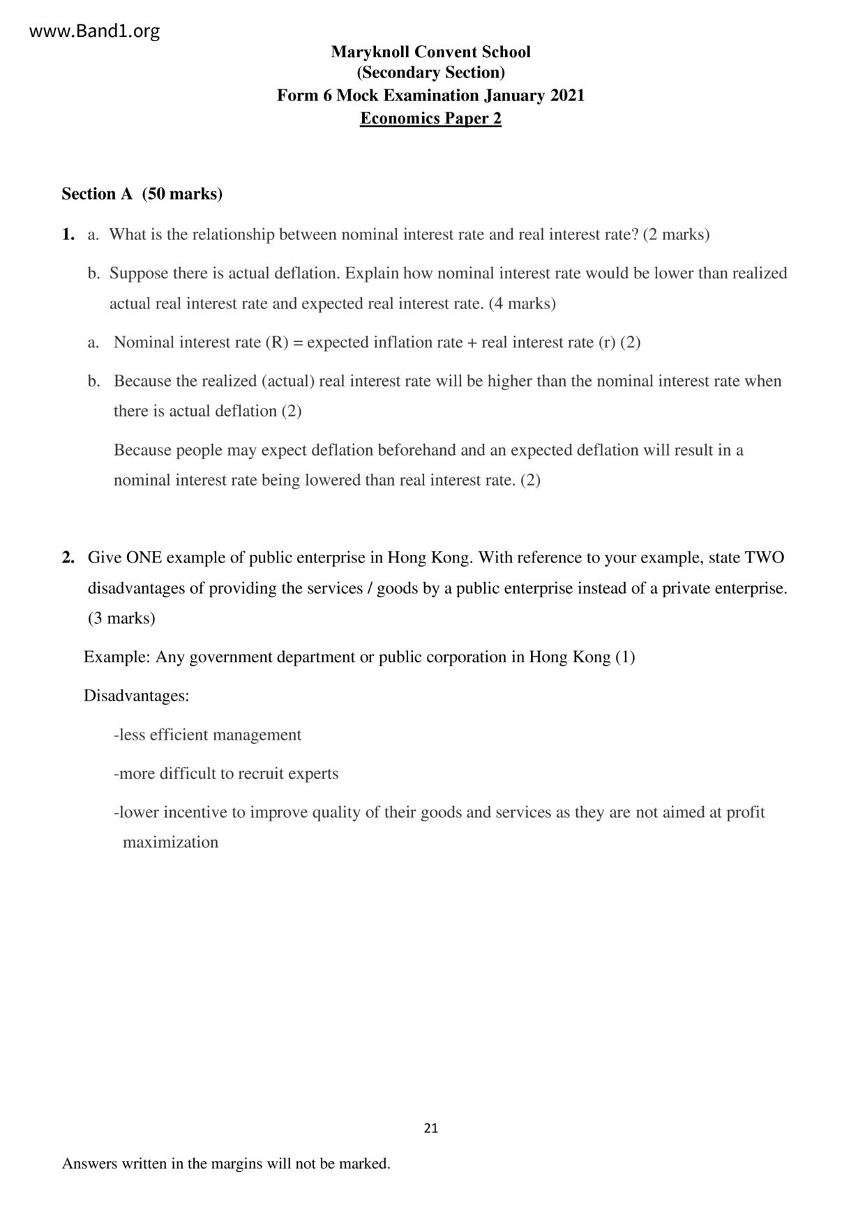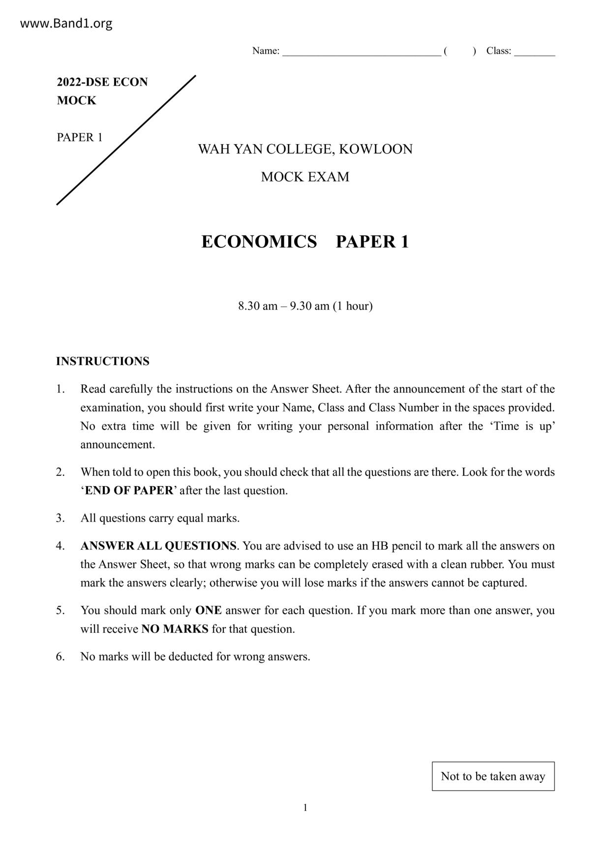 中六 經濟 華仁書院(九龍)