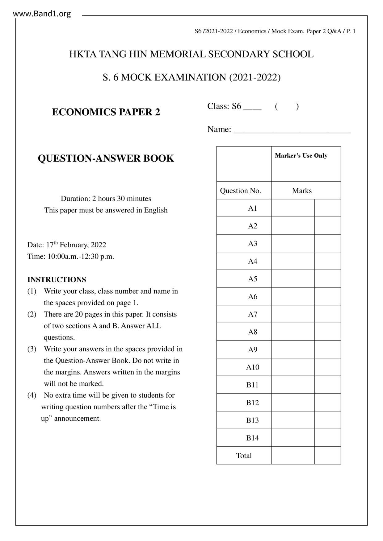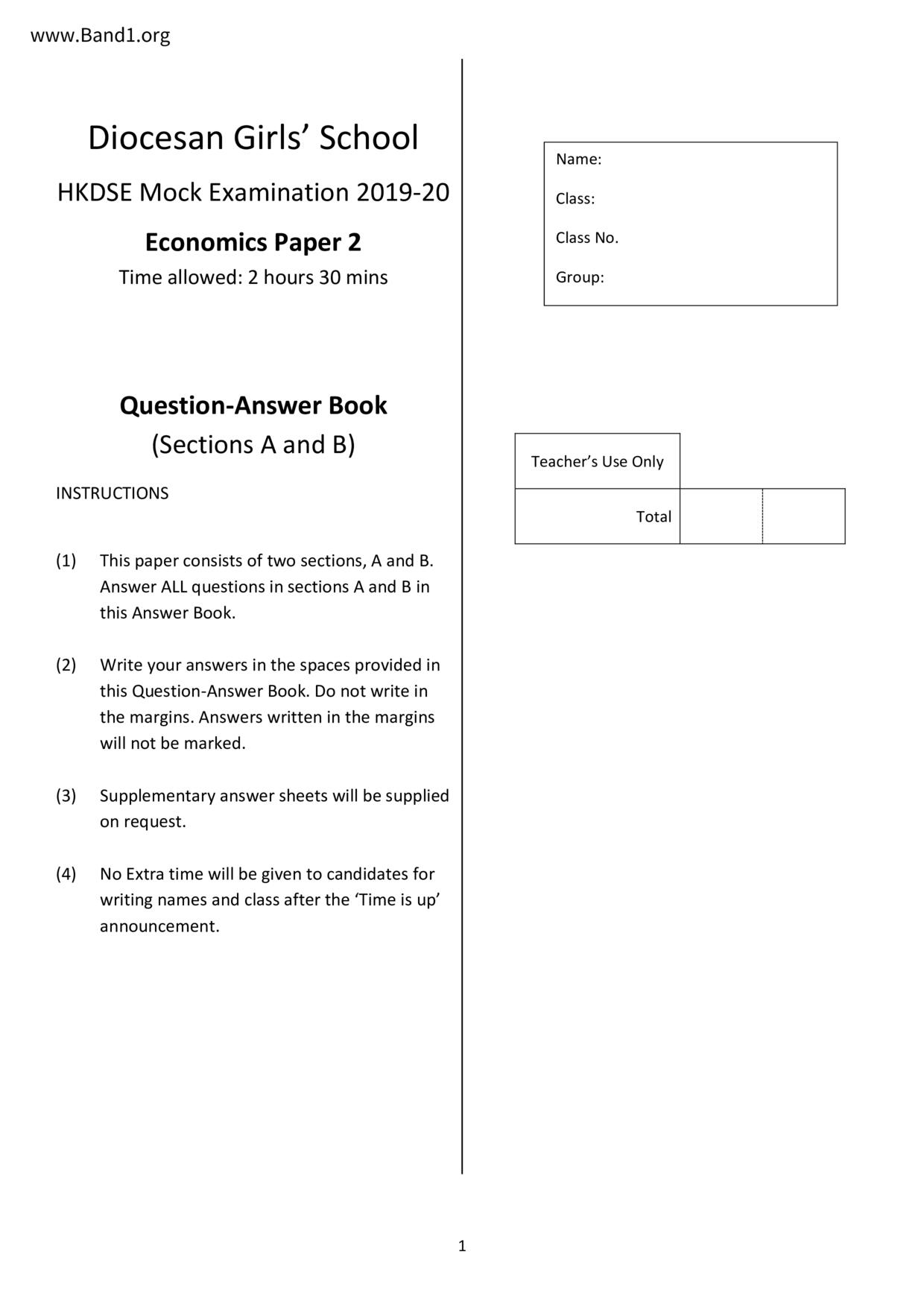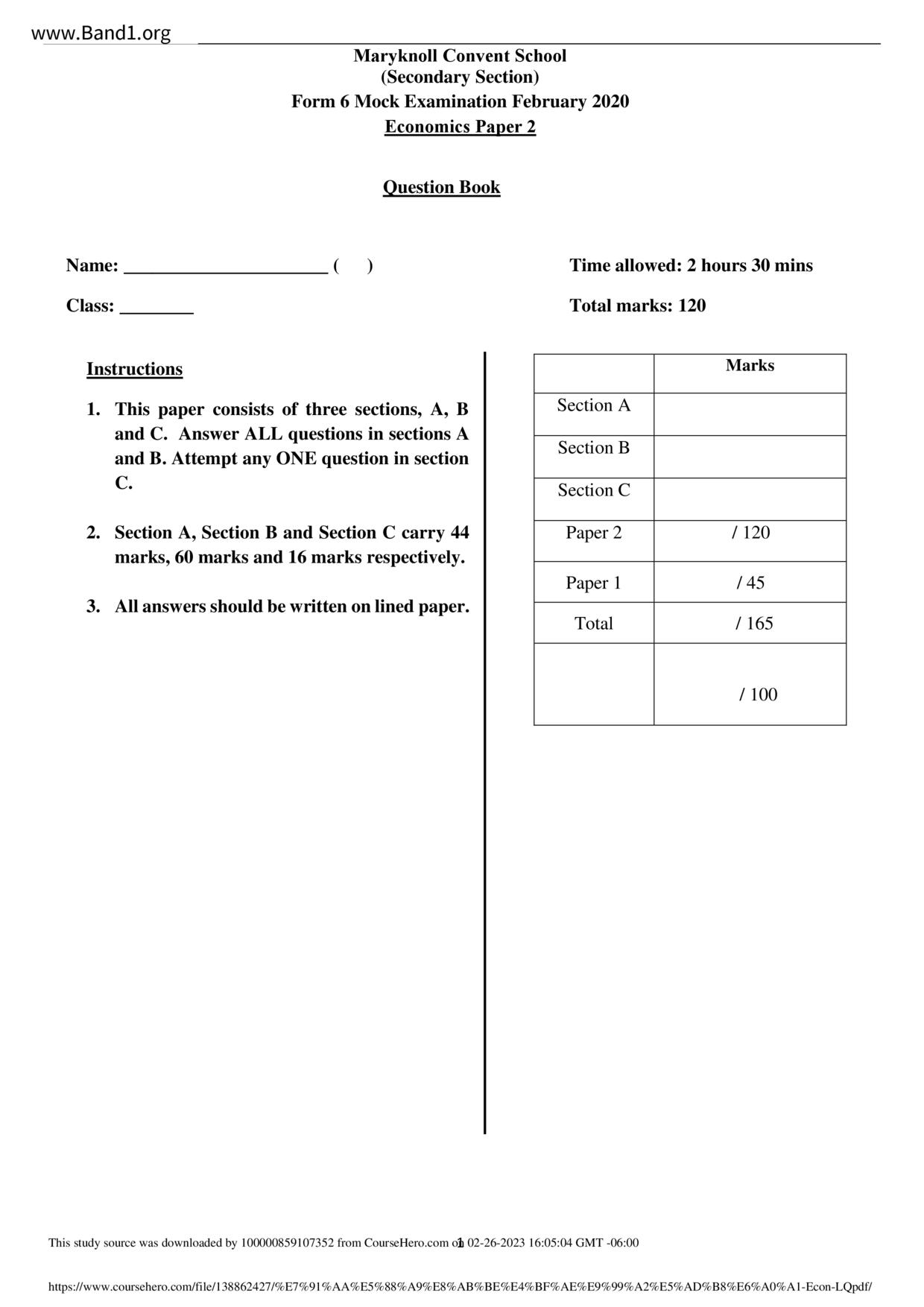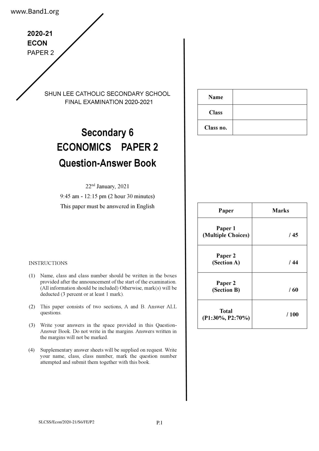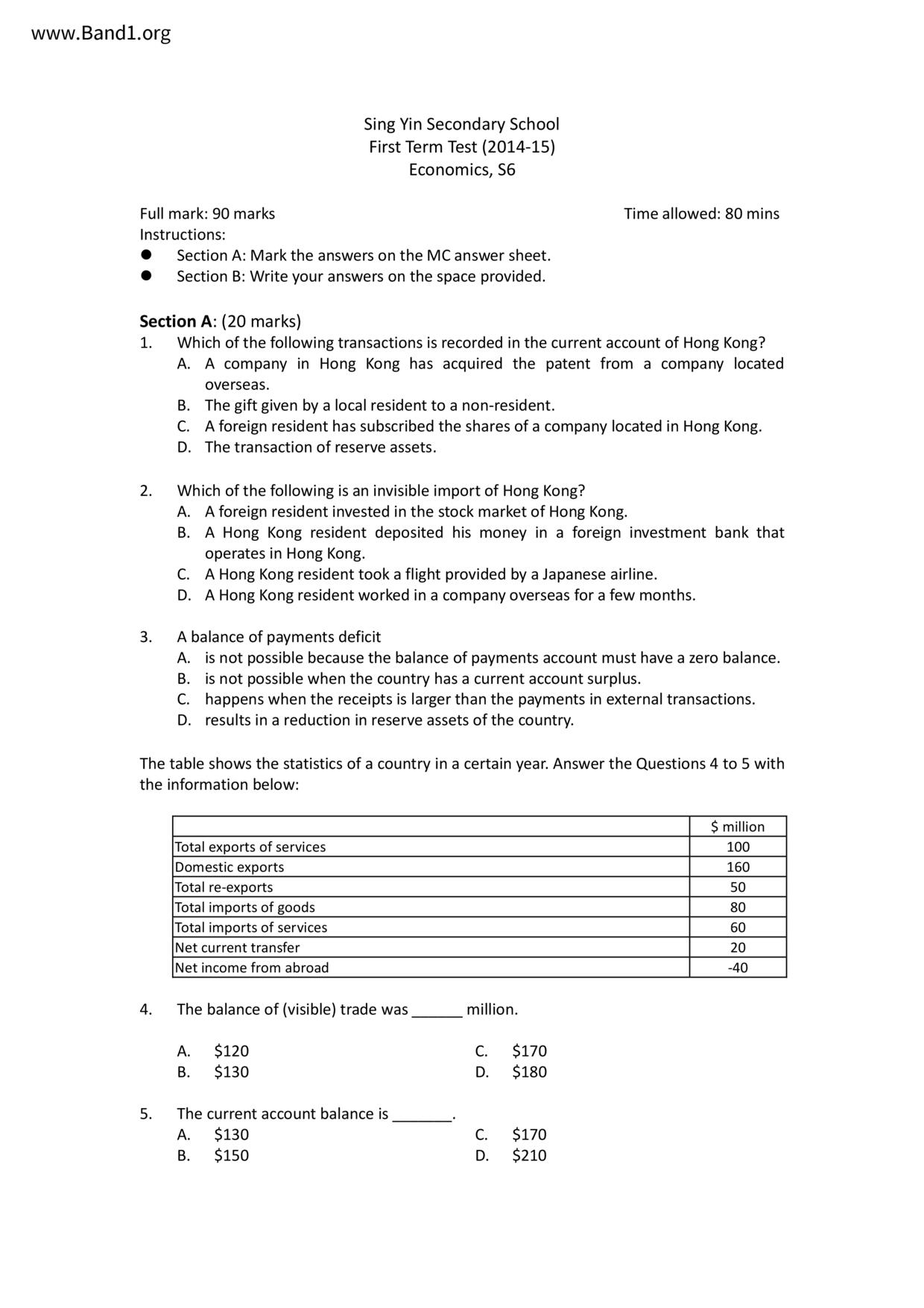 中六 經濟 華仁書院(九龍)