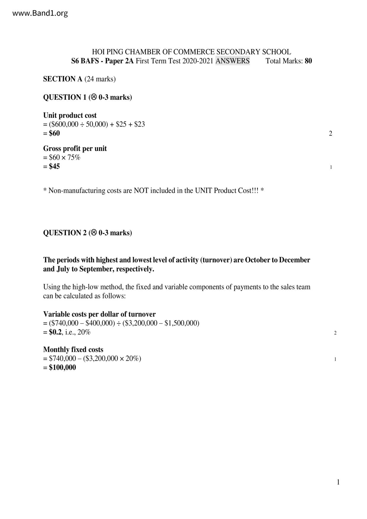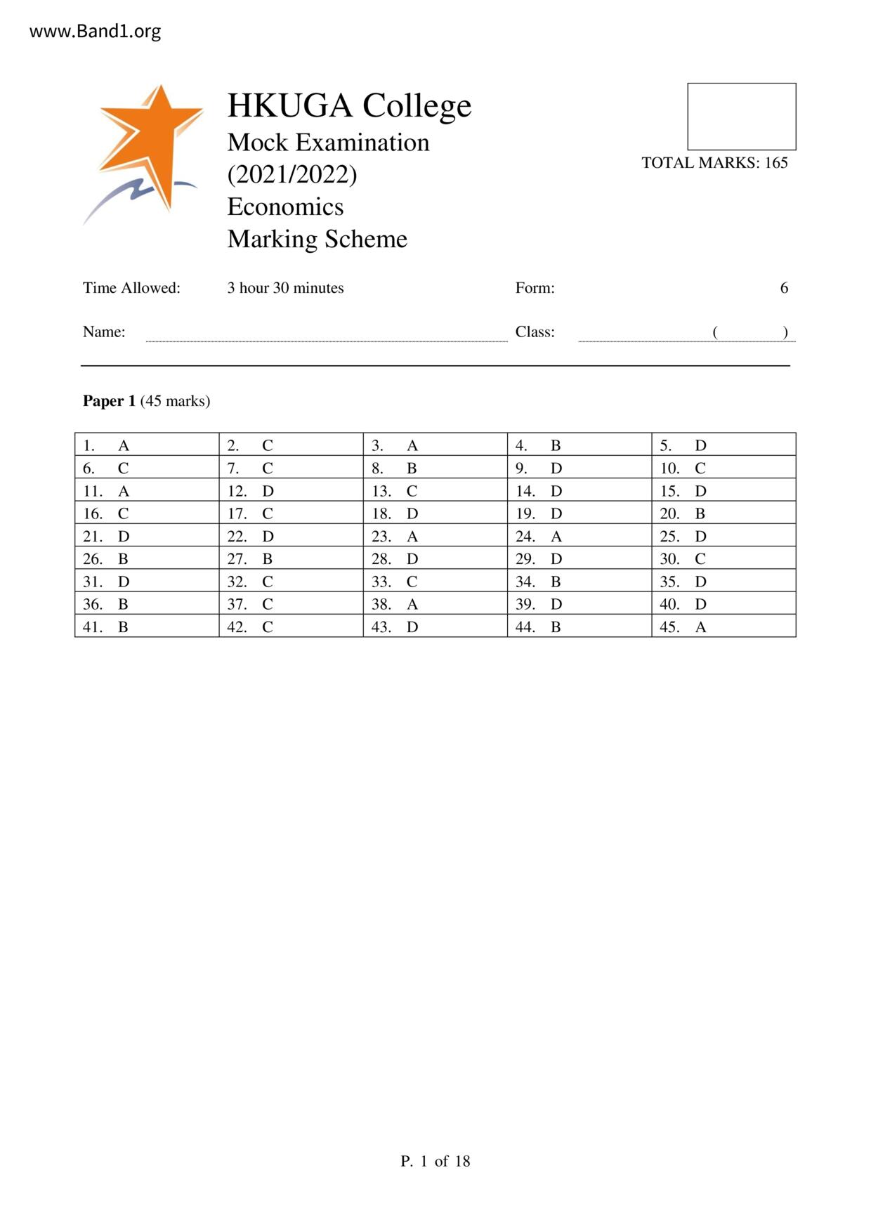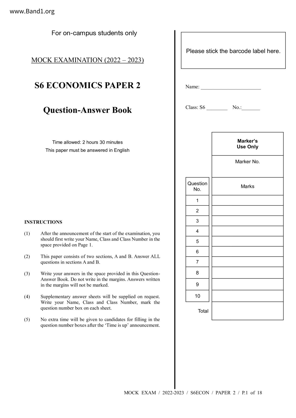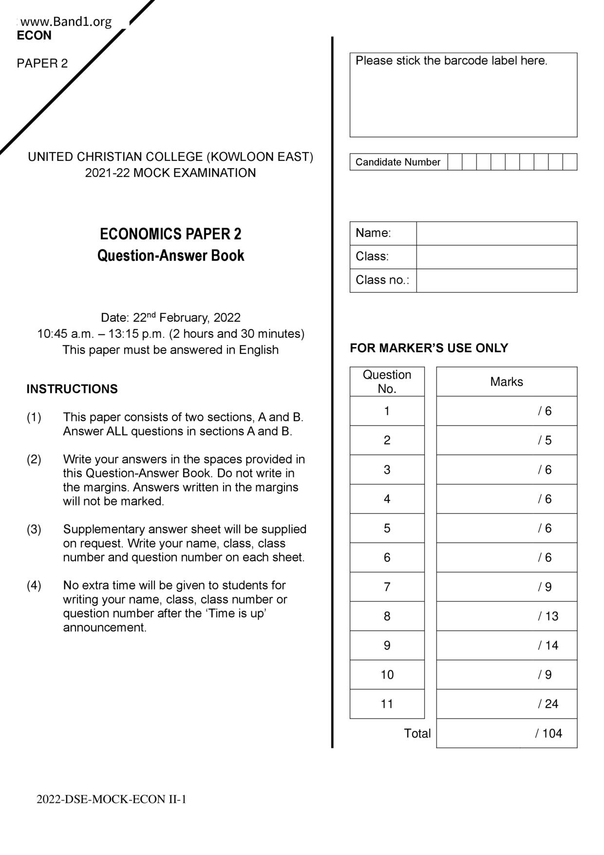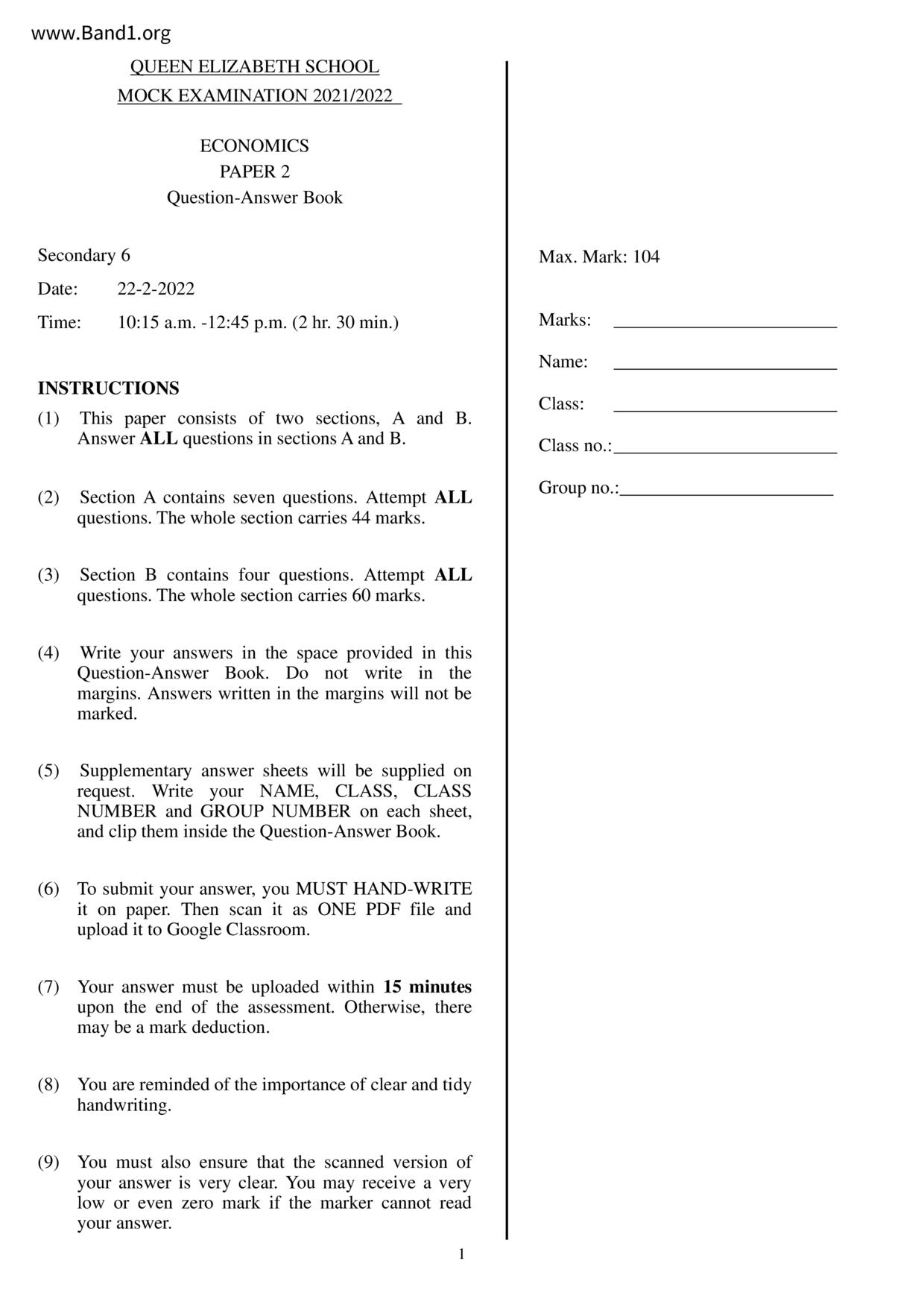 中六 經濟 華仁書院(九龍)