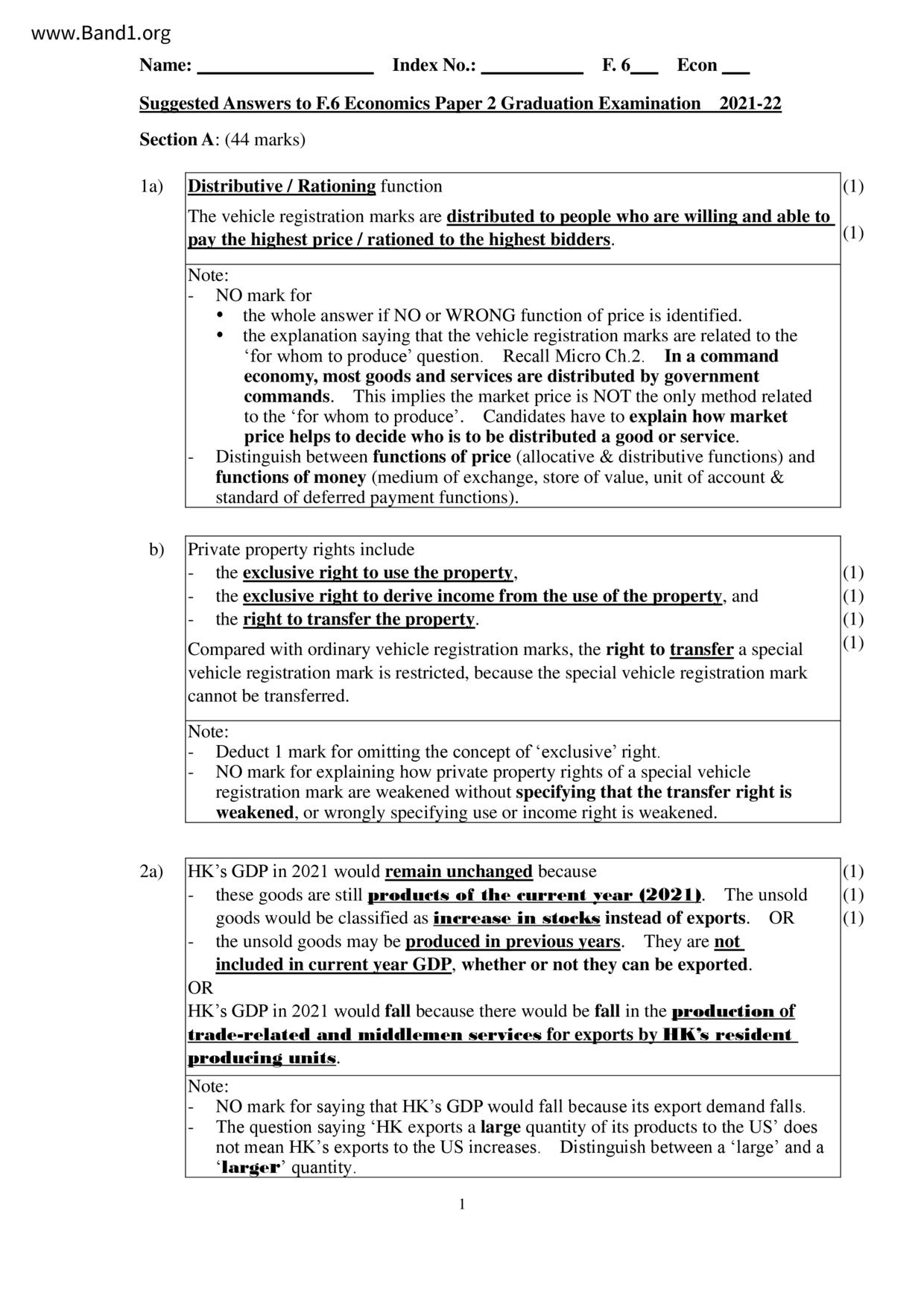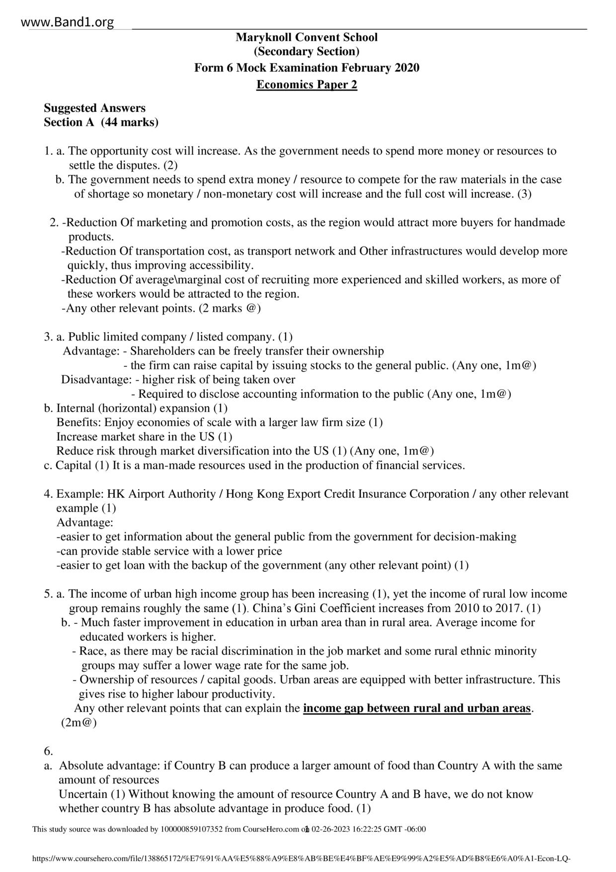 中六 經濟 嘉諾撒聖瑪利書院