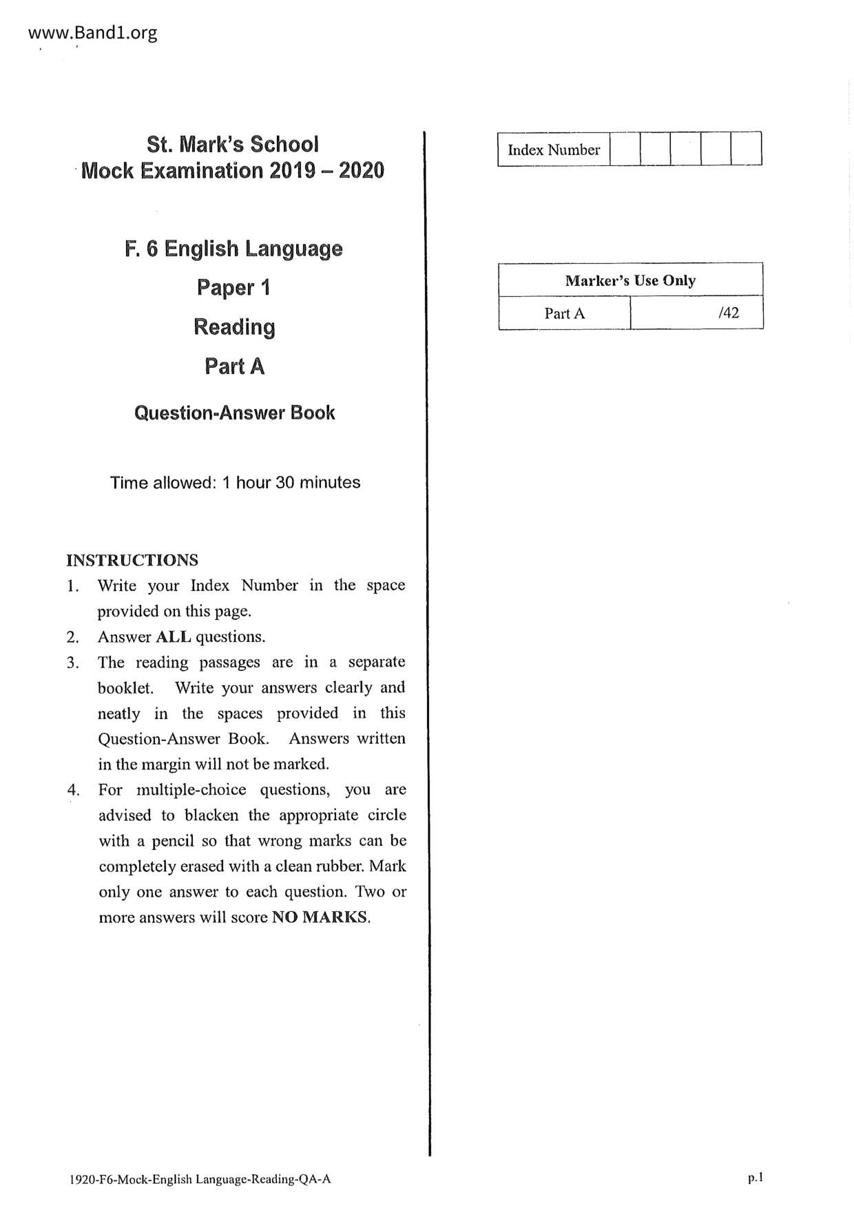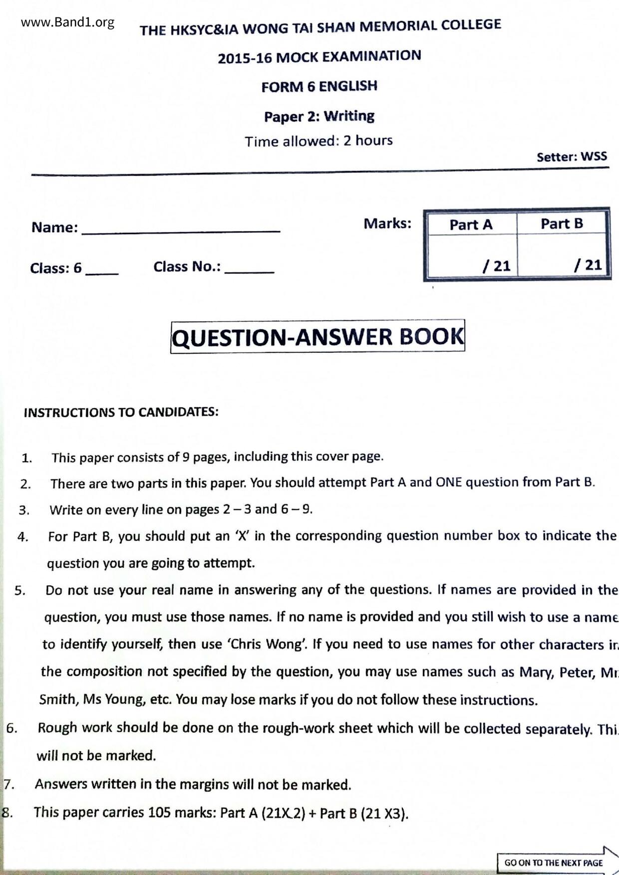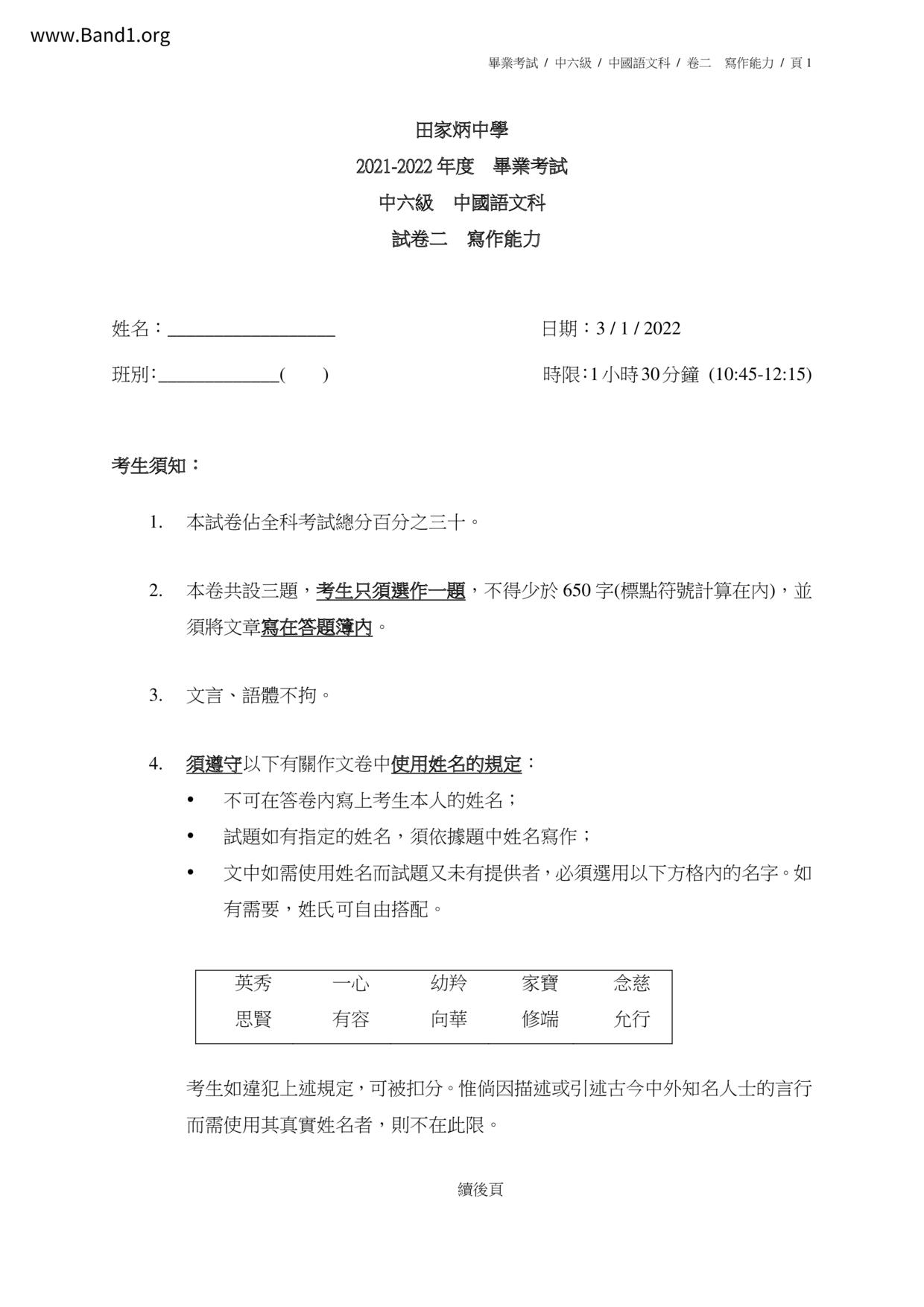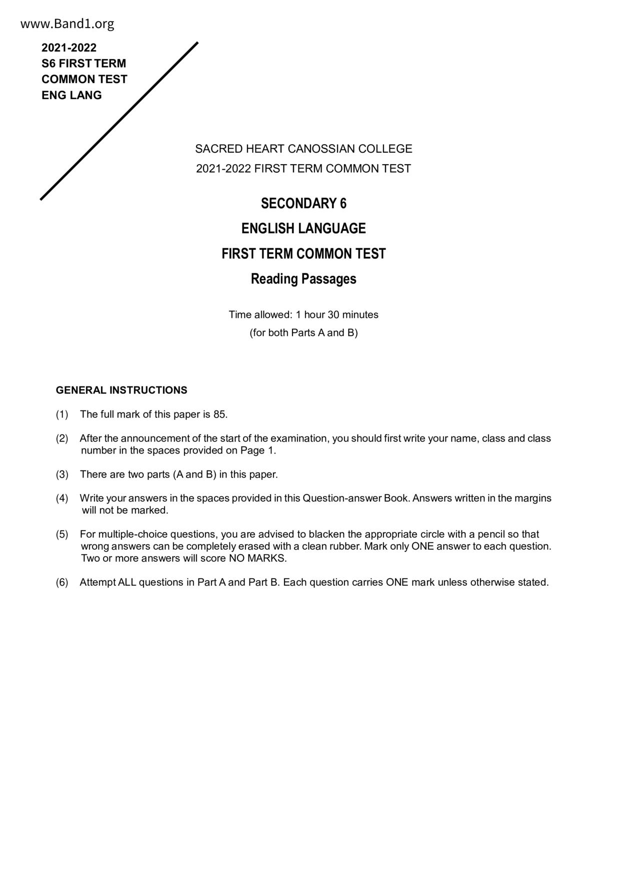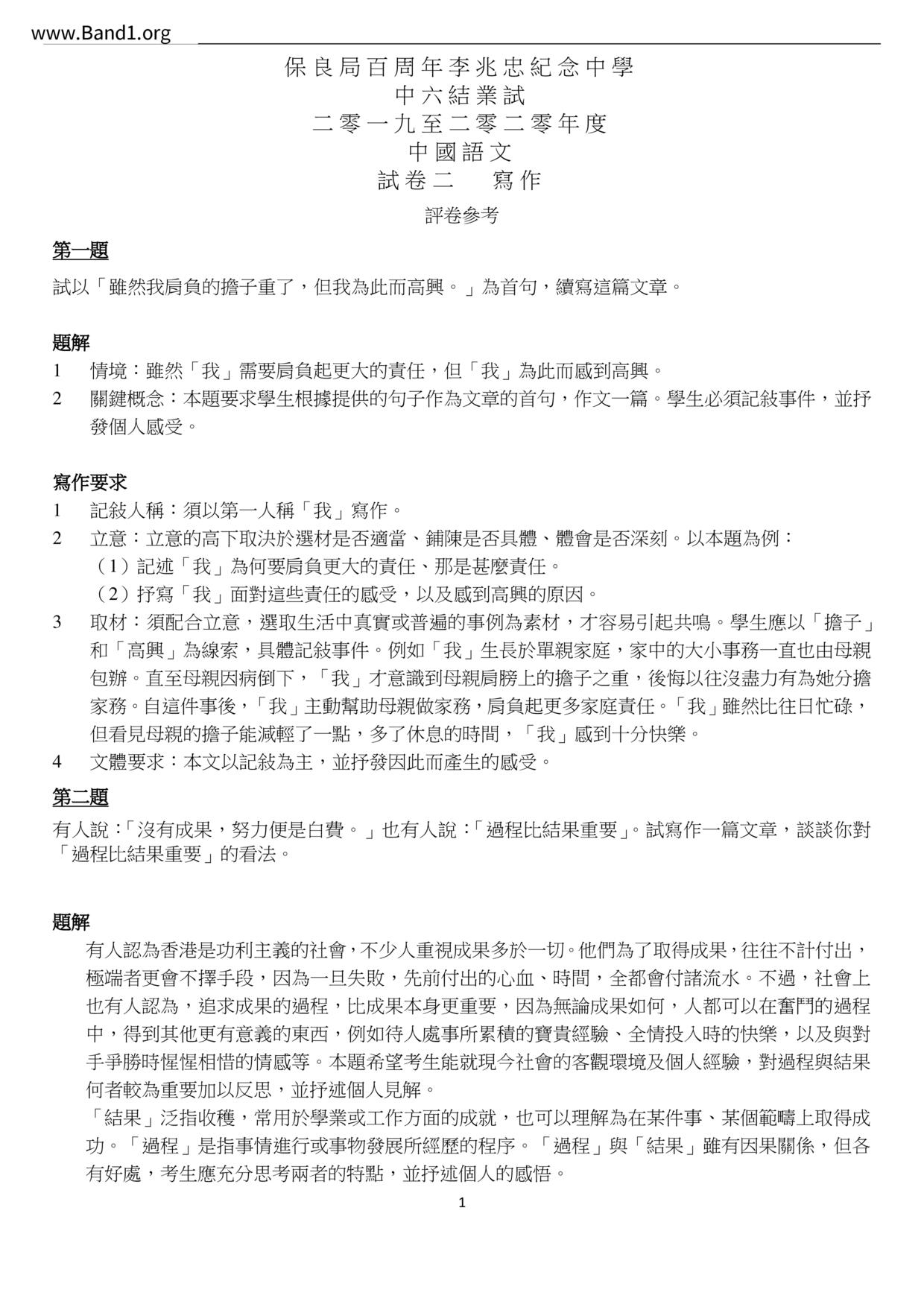 中六 英文 保良局第一張永慶中學