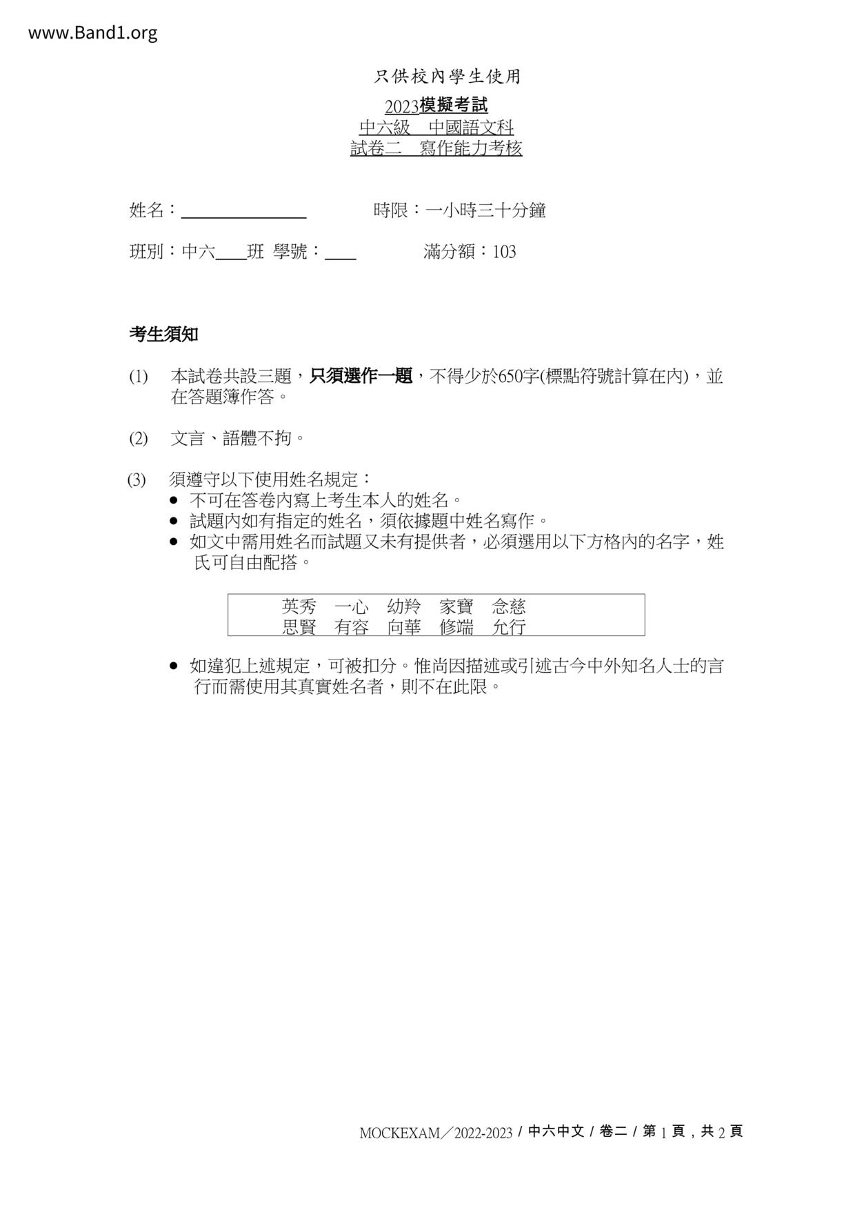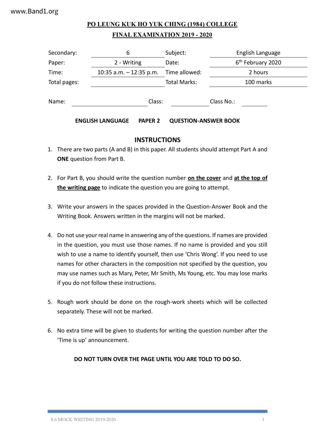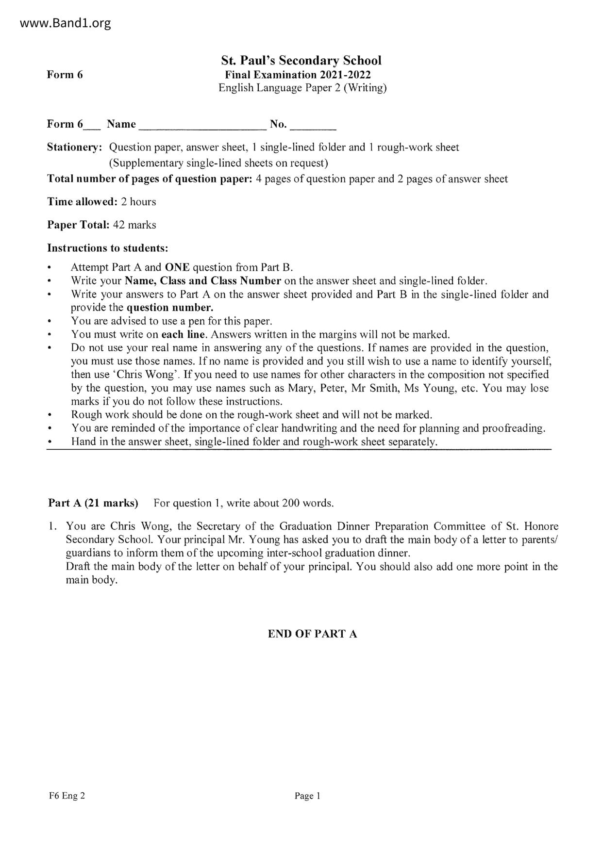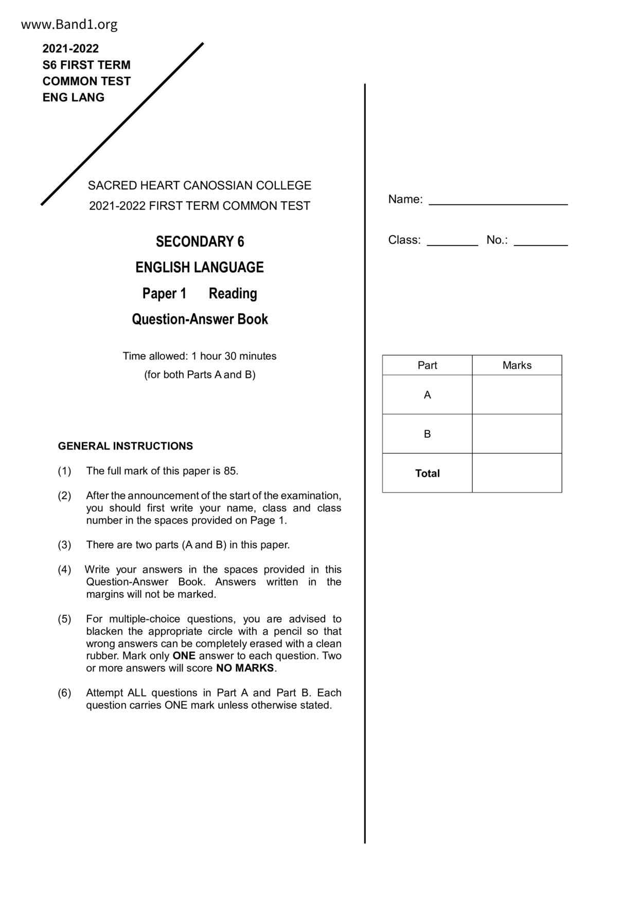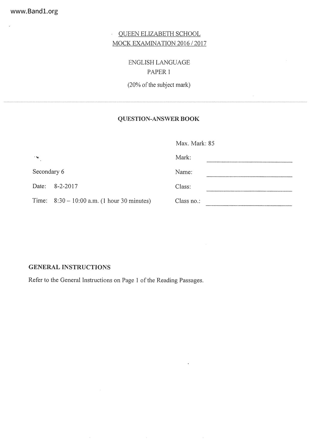 中六 英文 保良局第一張永慶中學