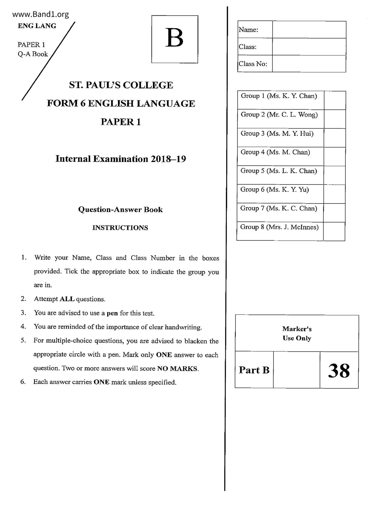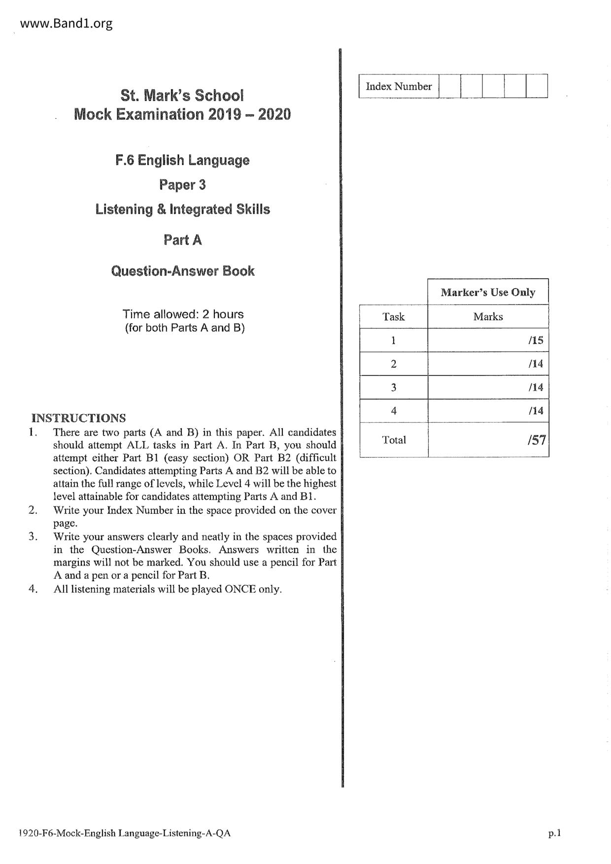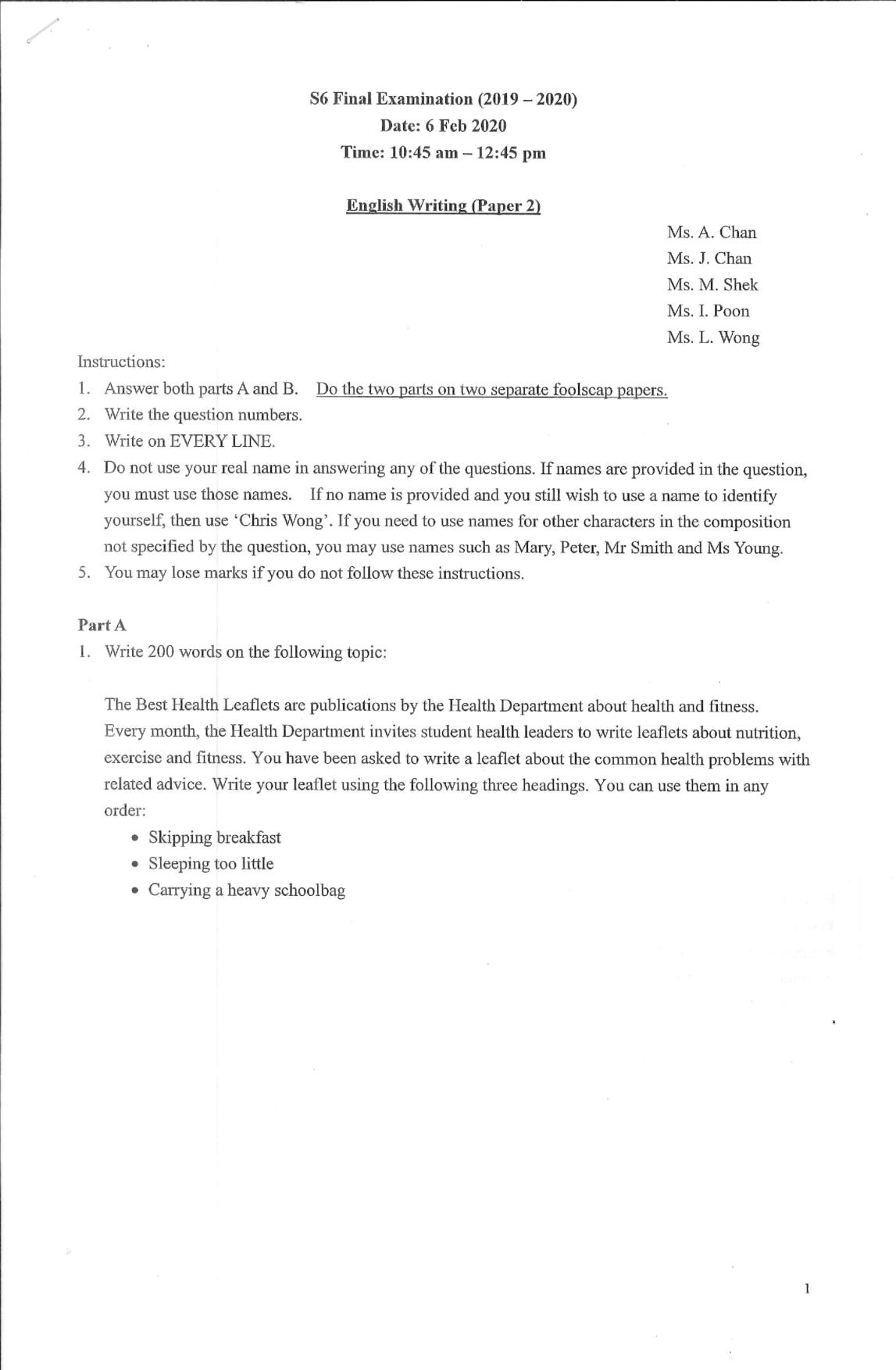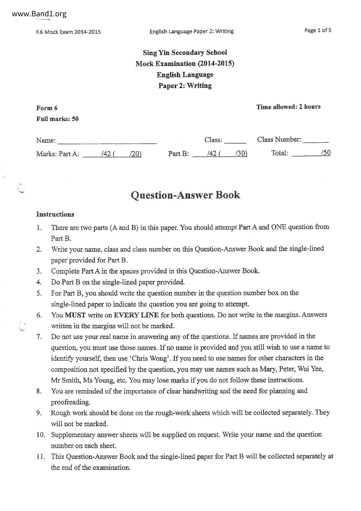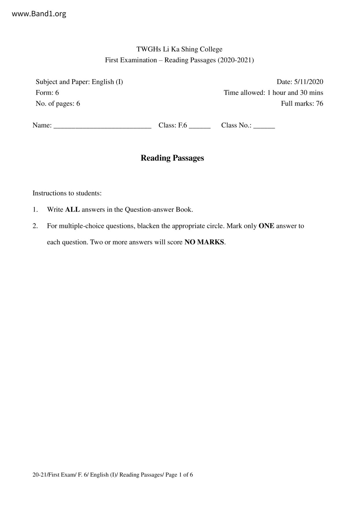 中六 英文 保良局第一張永慶中學