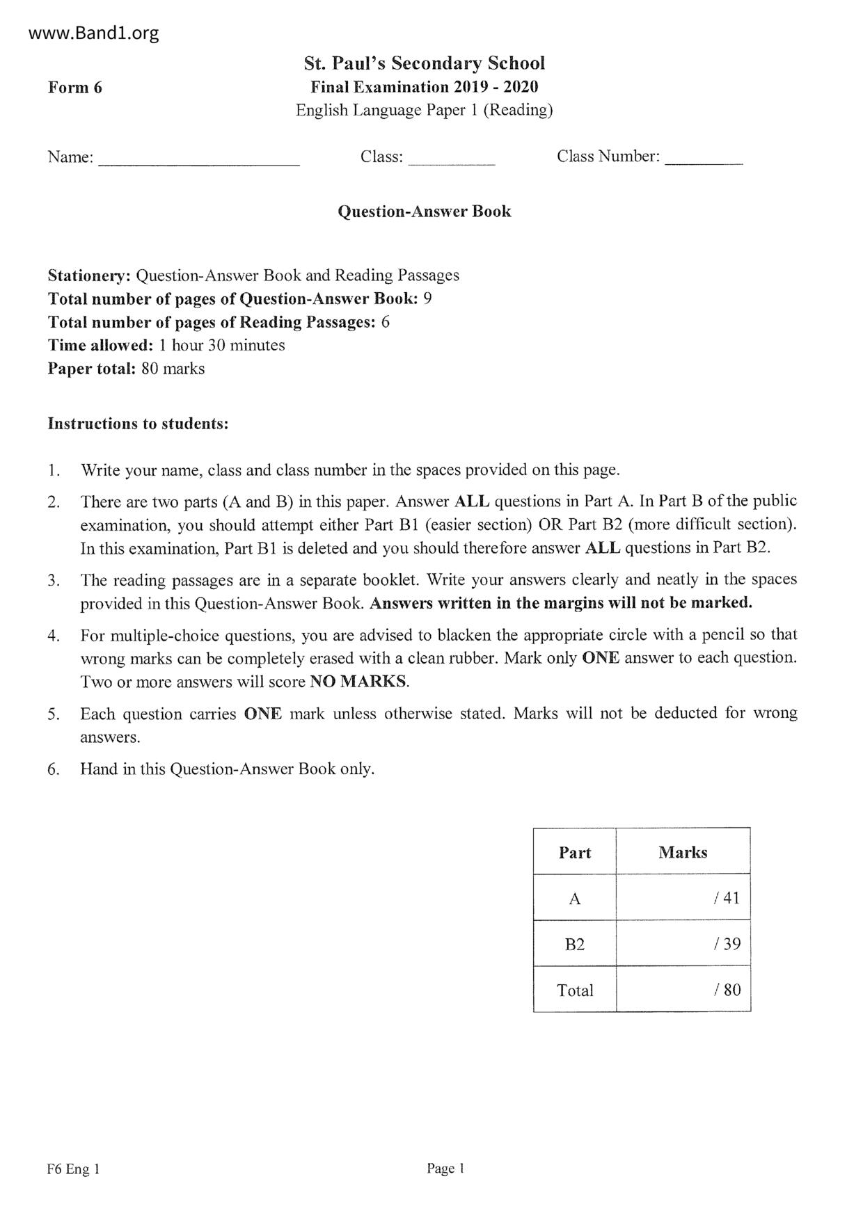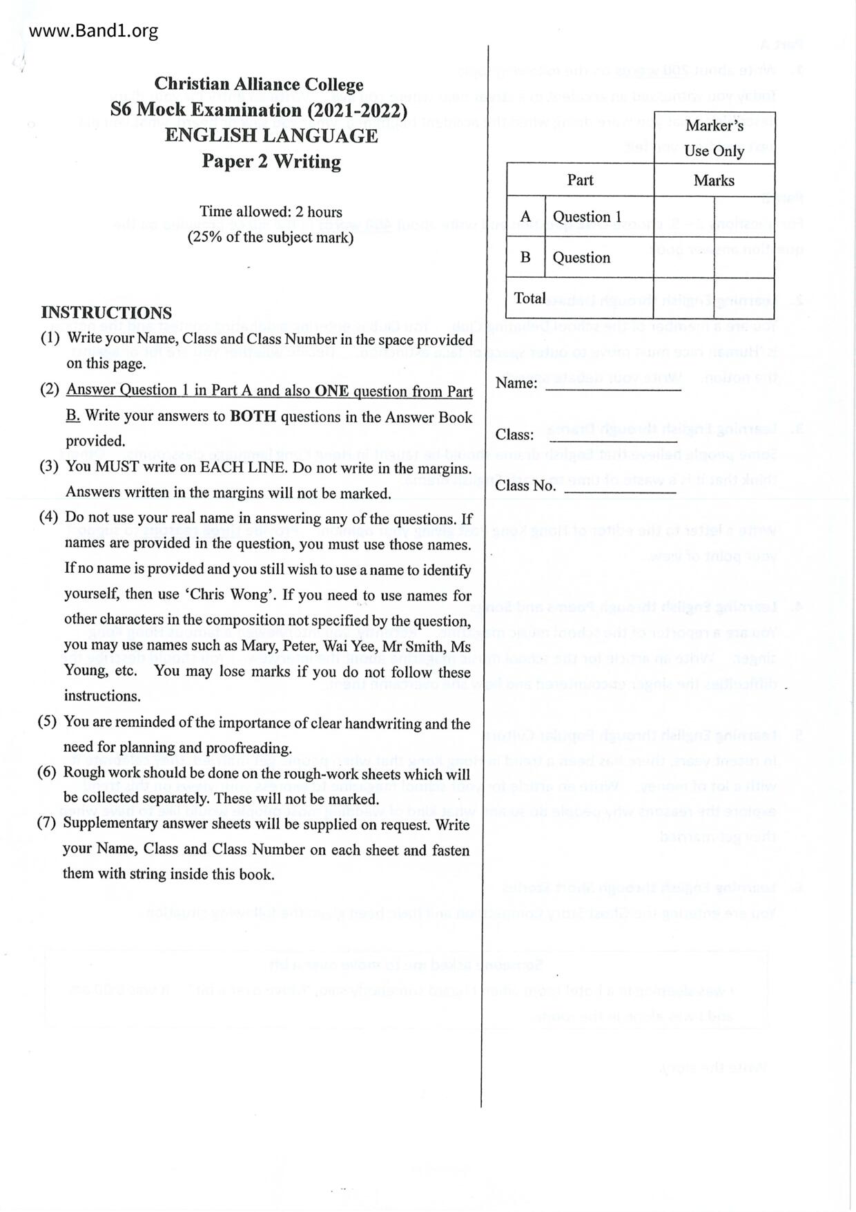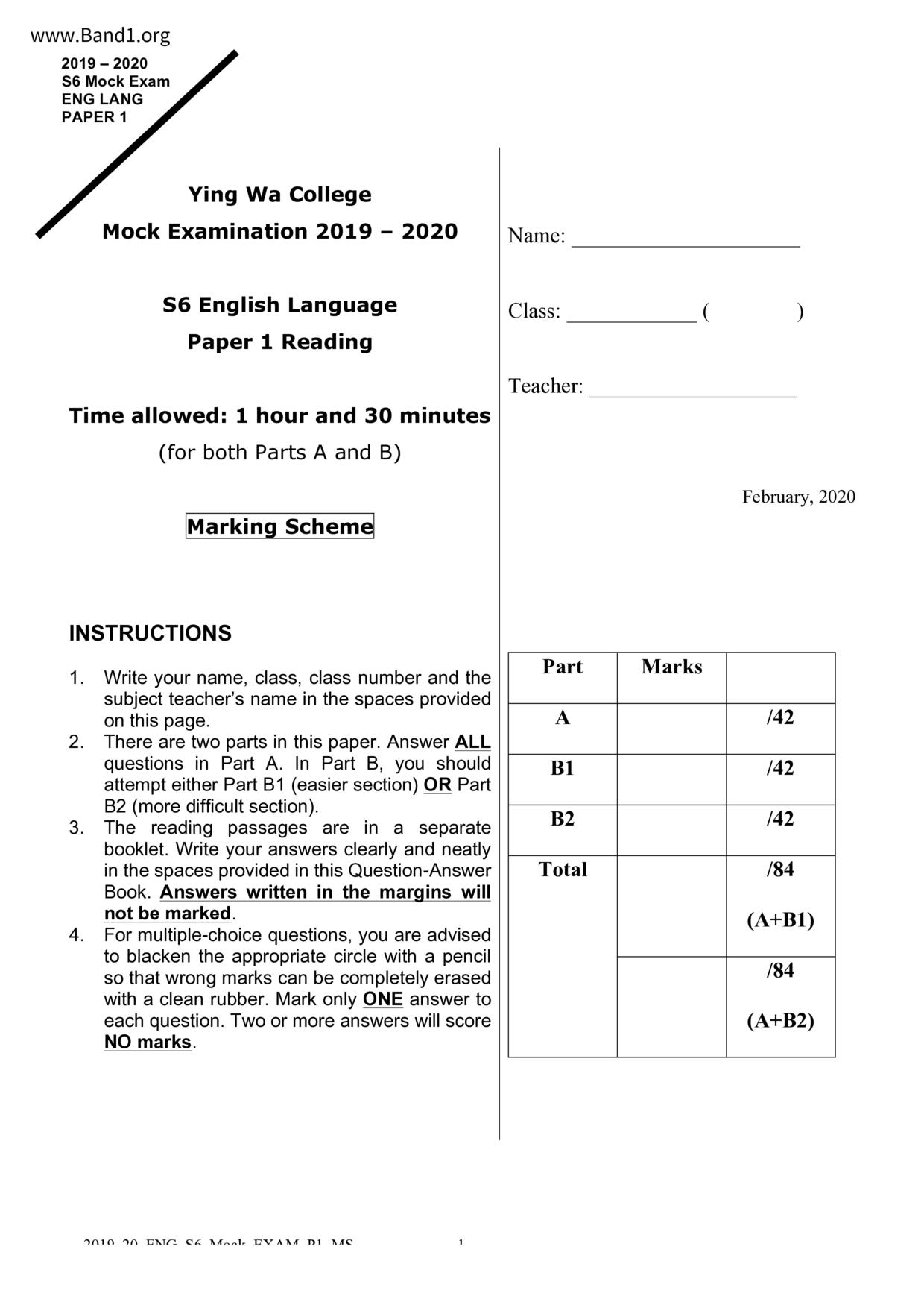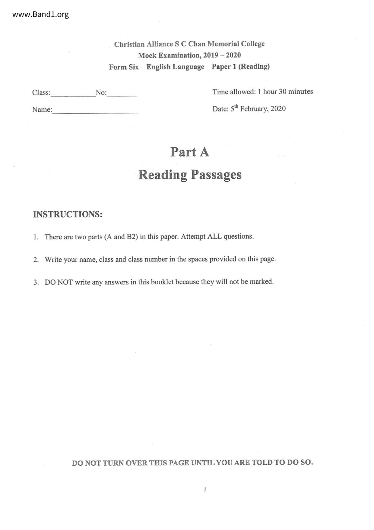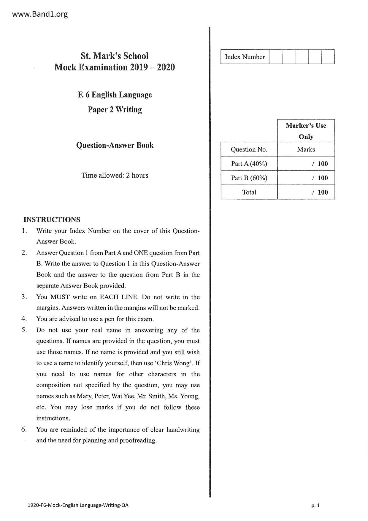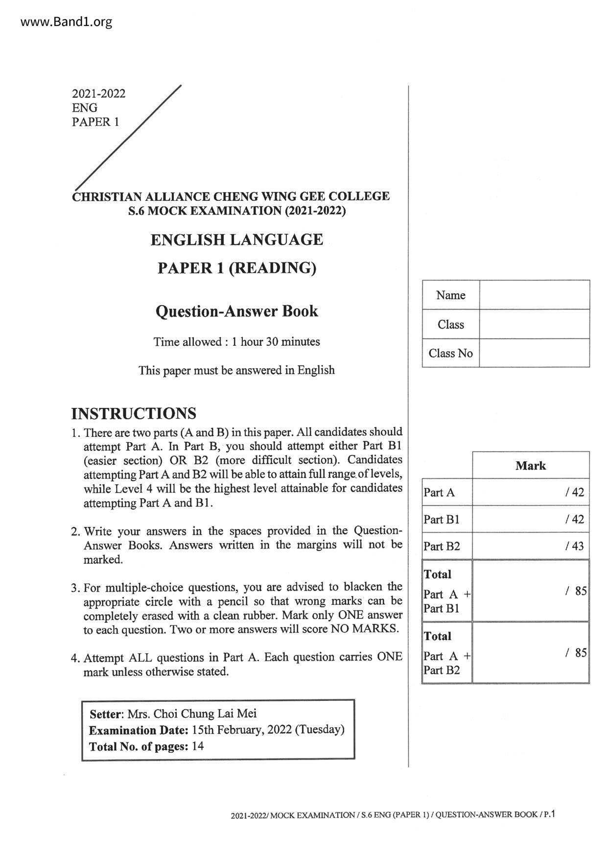 中六 英文 保良局第一張永慶中學
