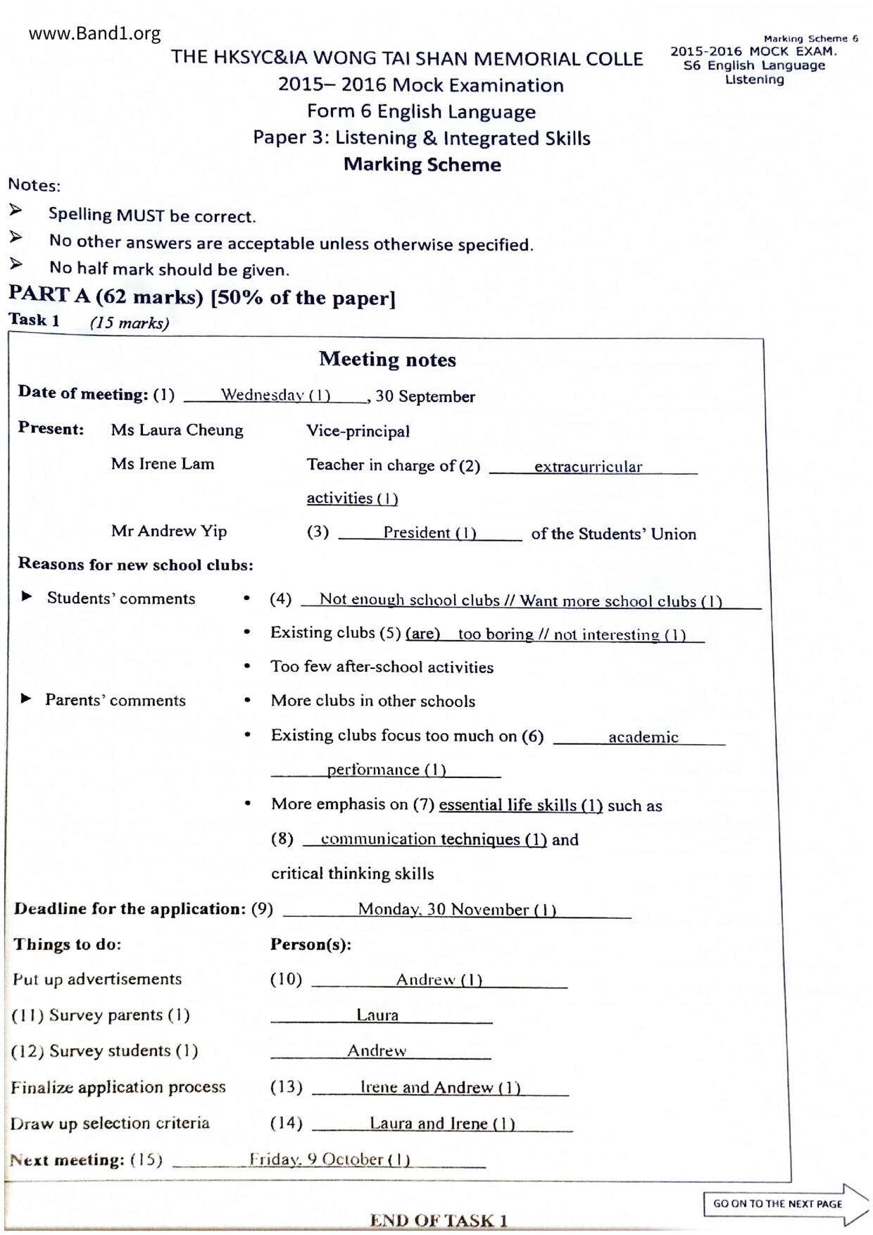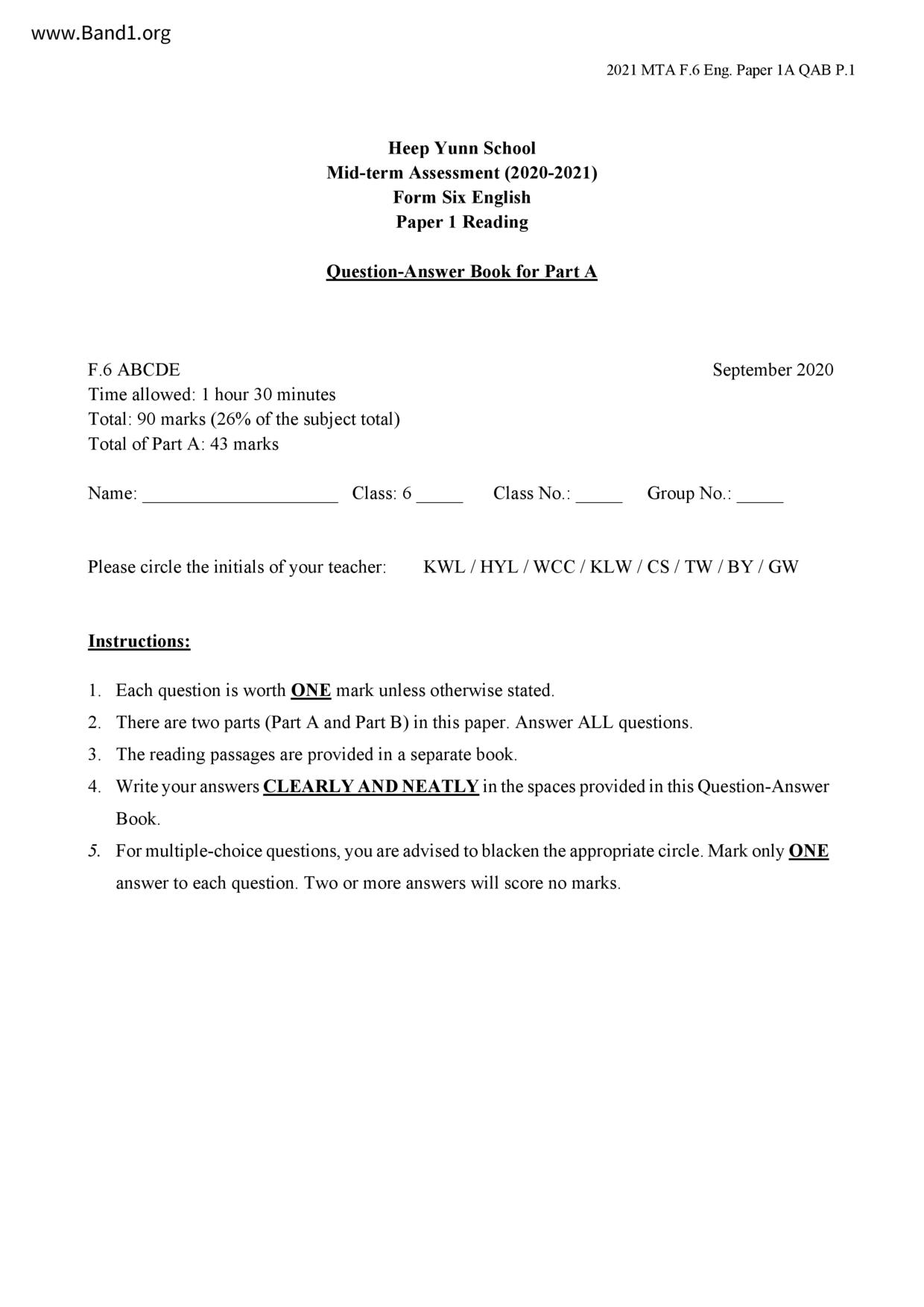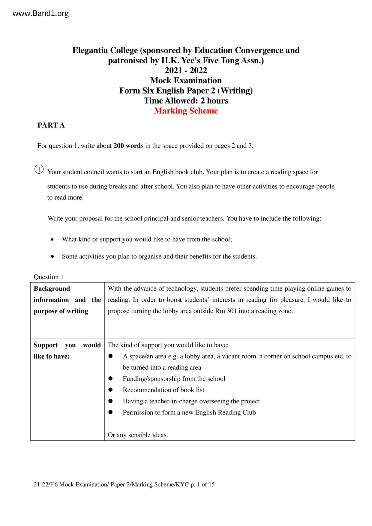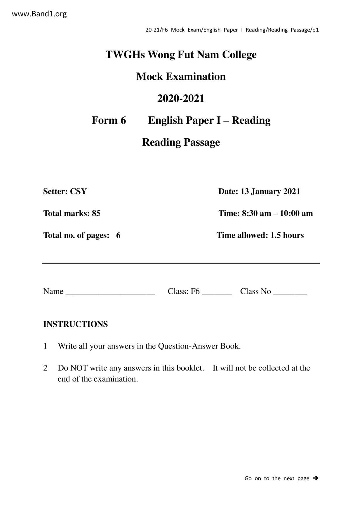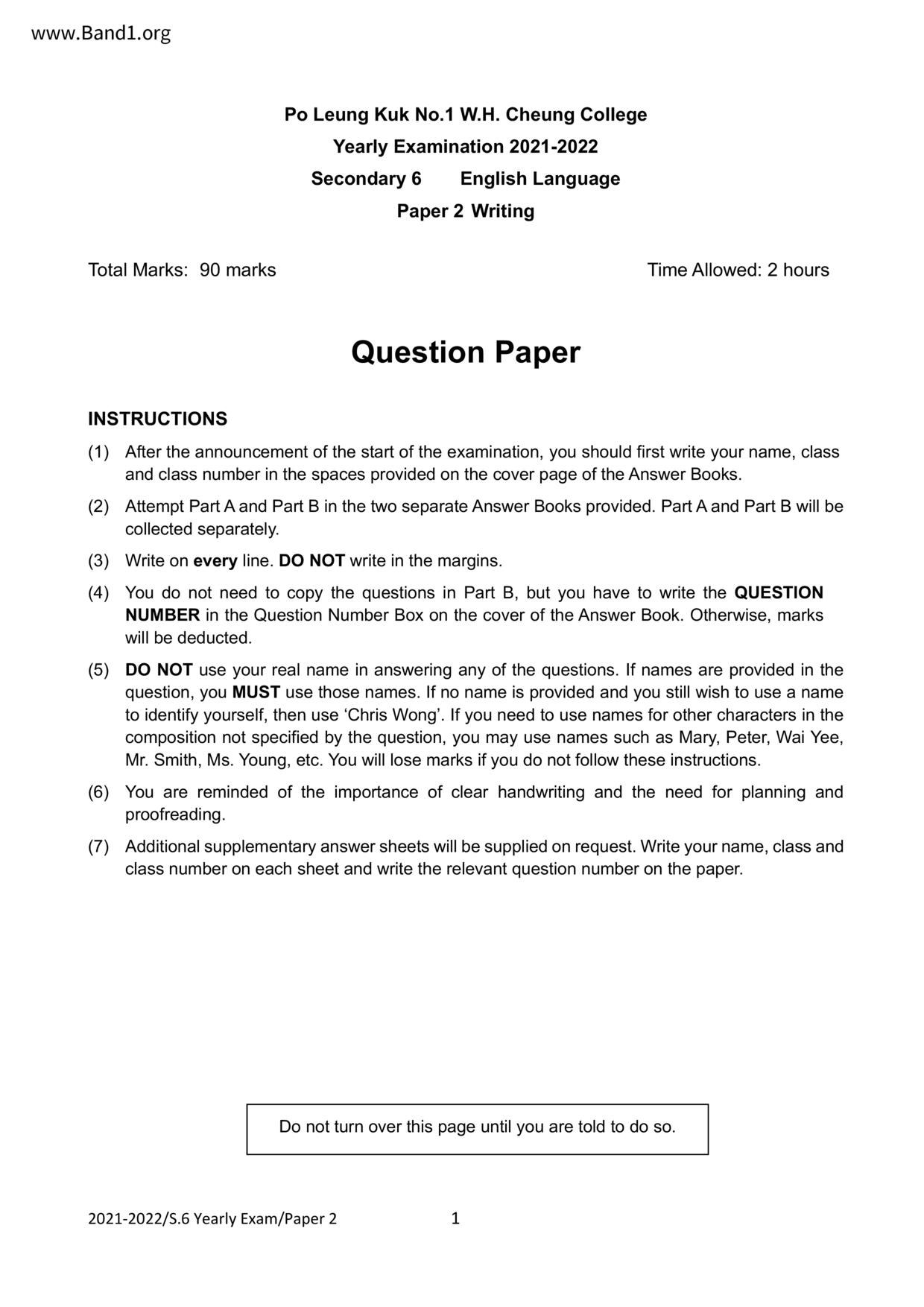 中六 英文 保良局第一張永慶中學