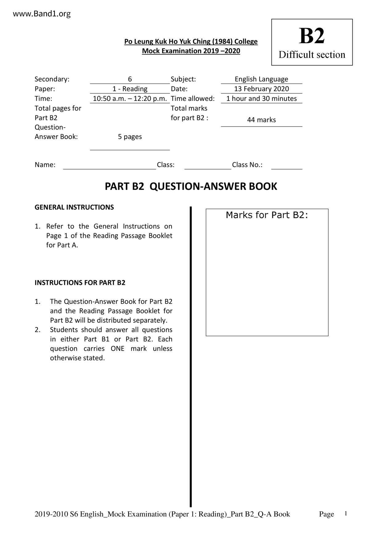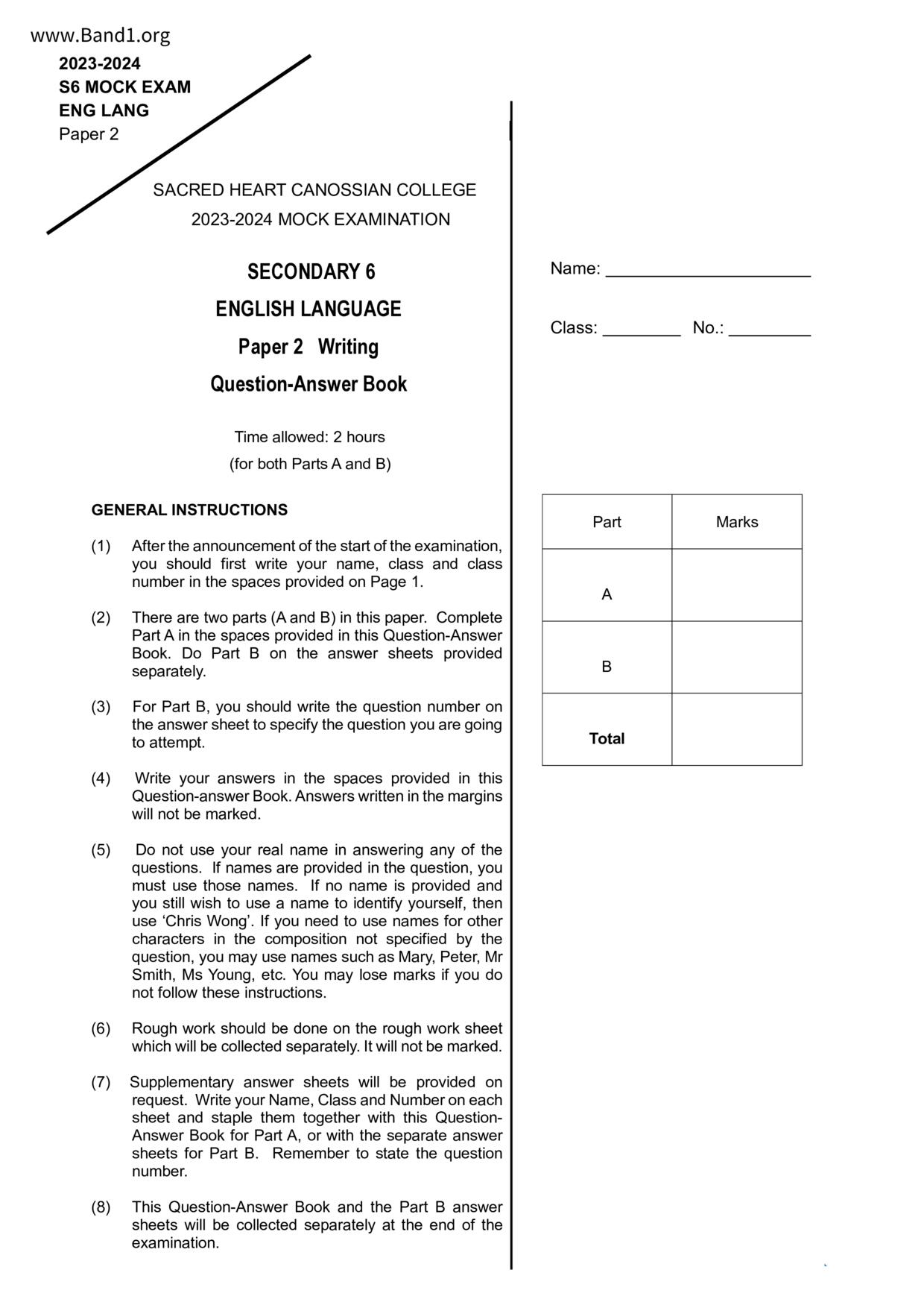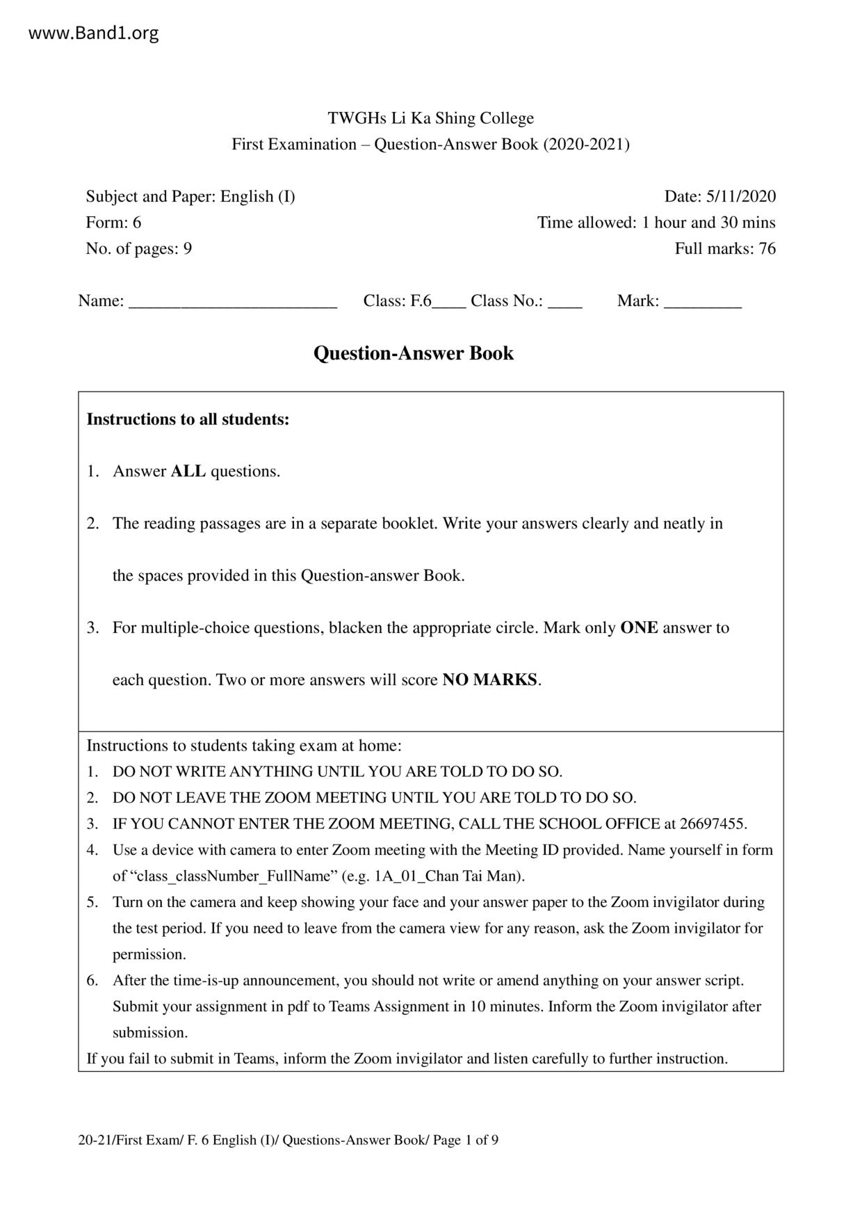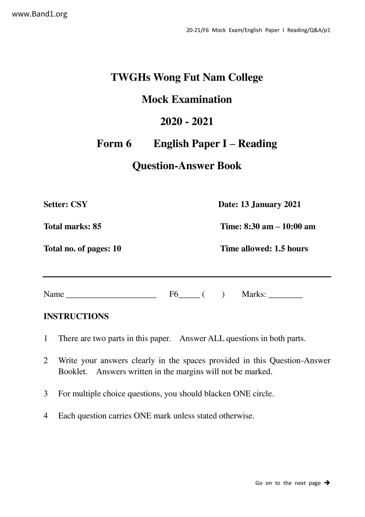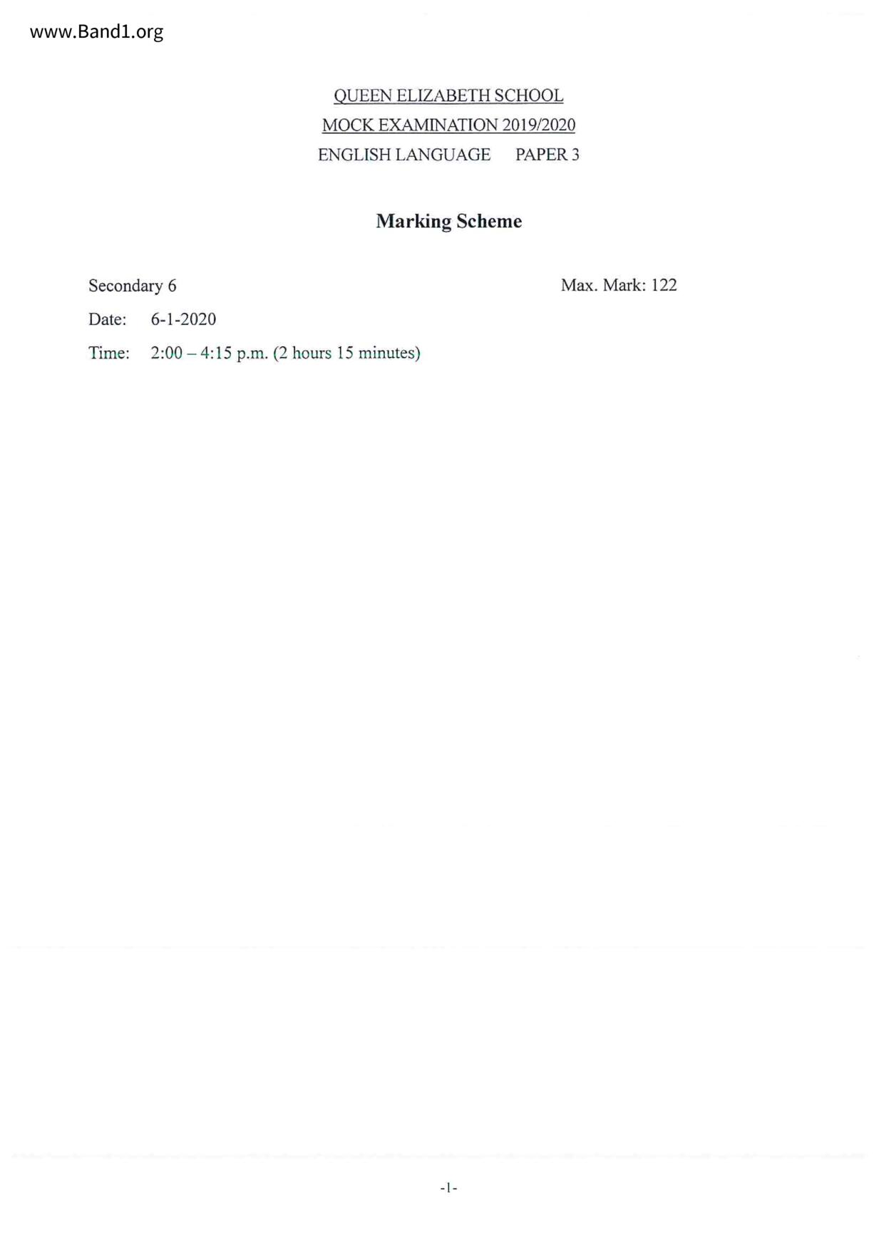 中六 英文 保良局第一張永慶中學