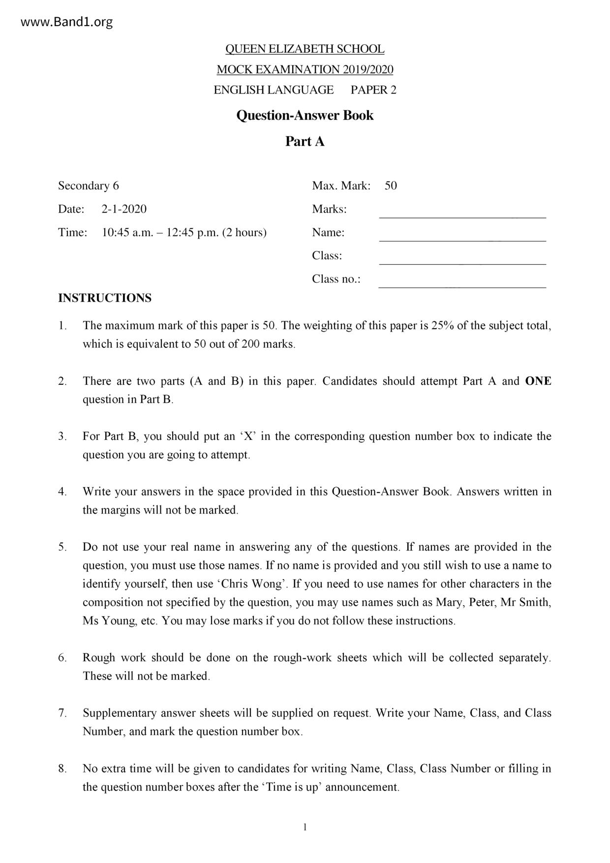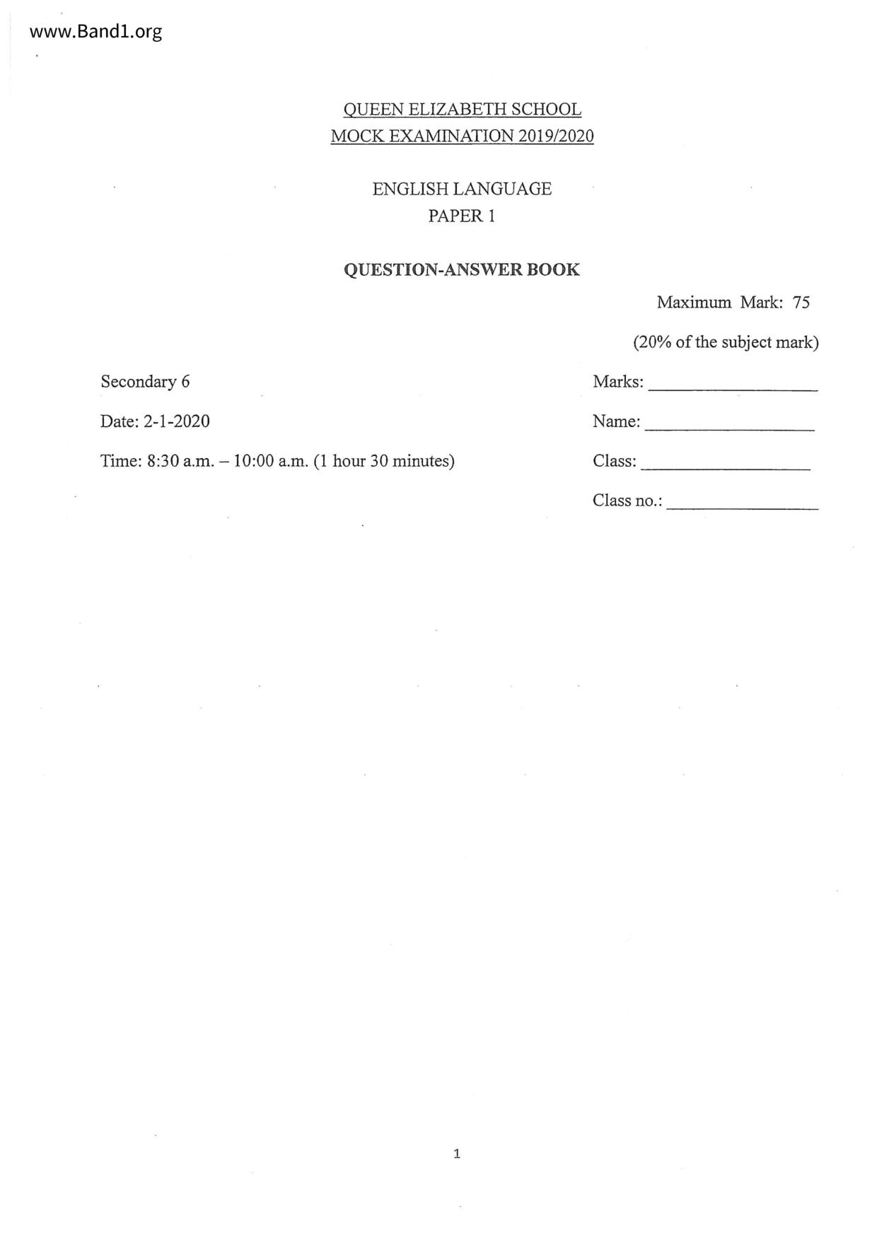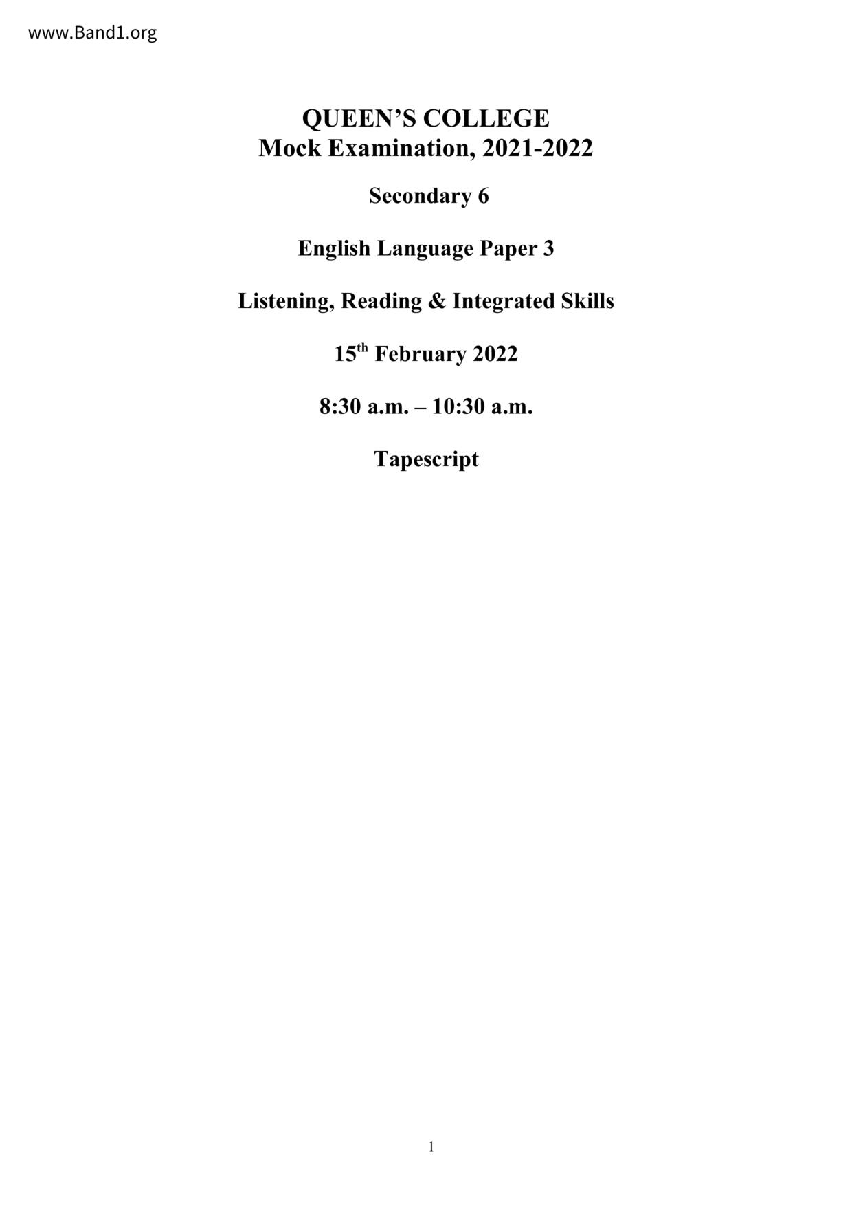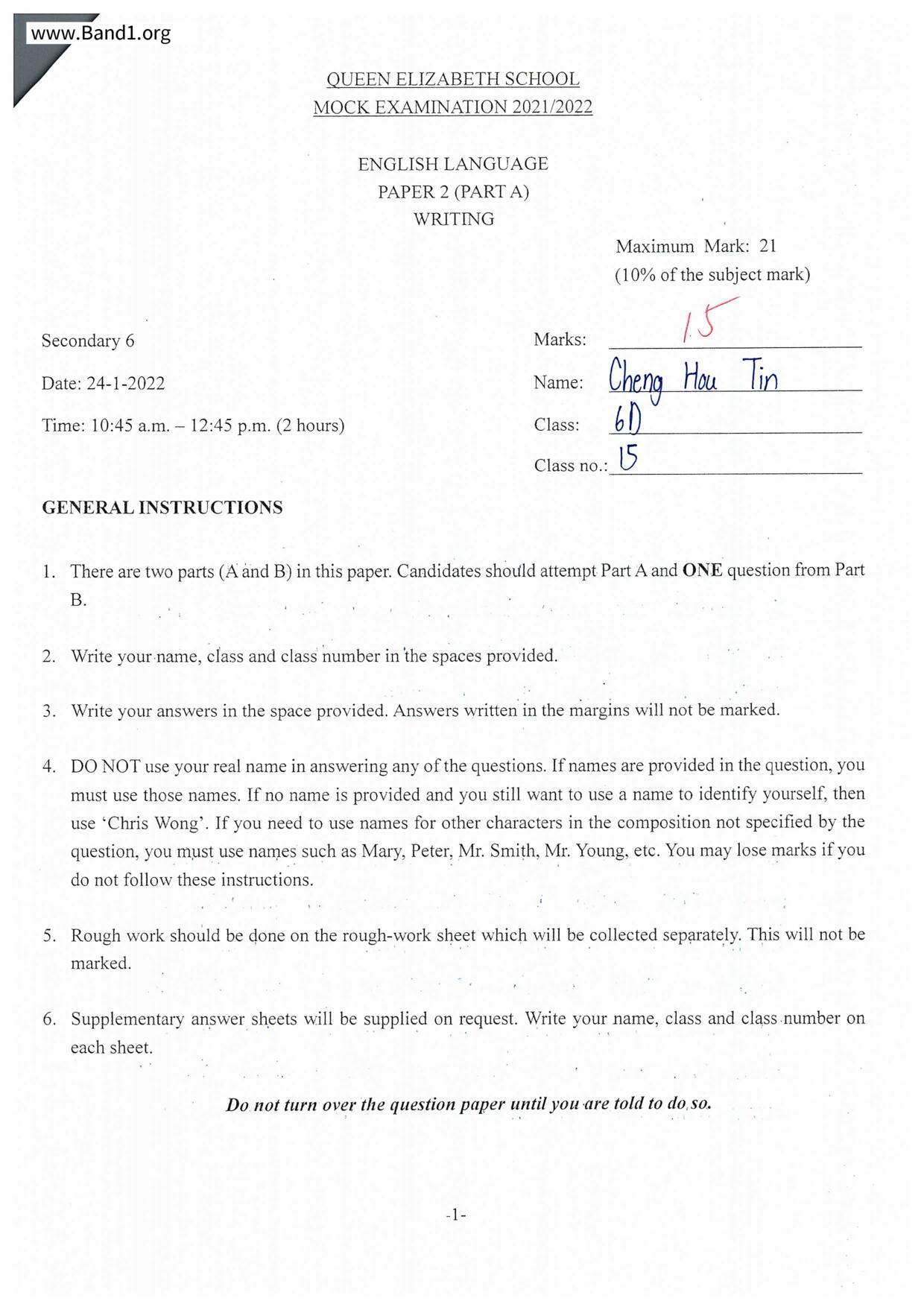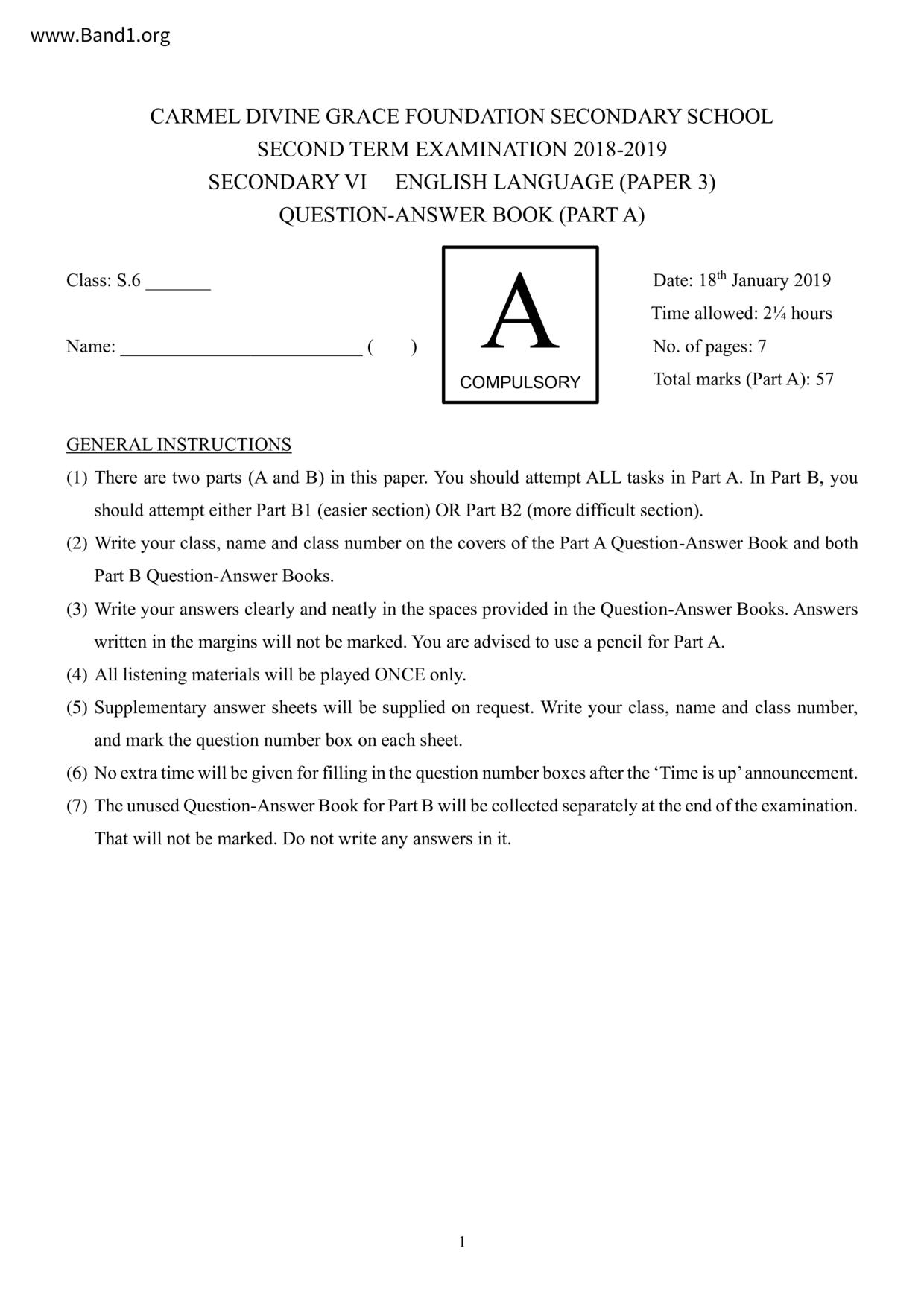 中六 英文 保良局第一張永慶中學