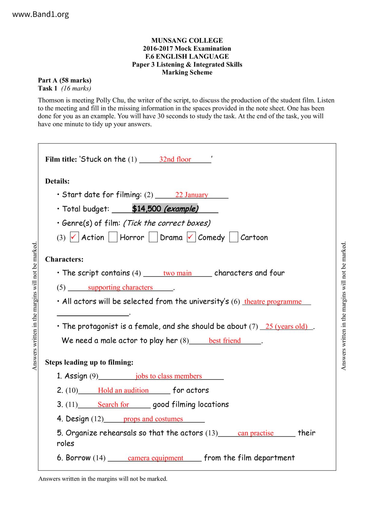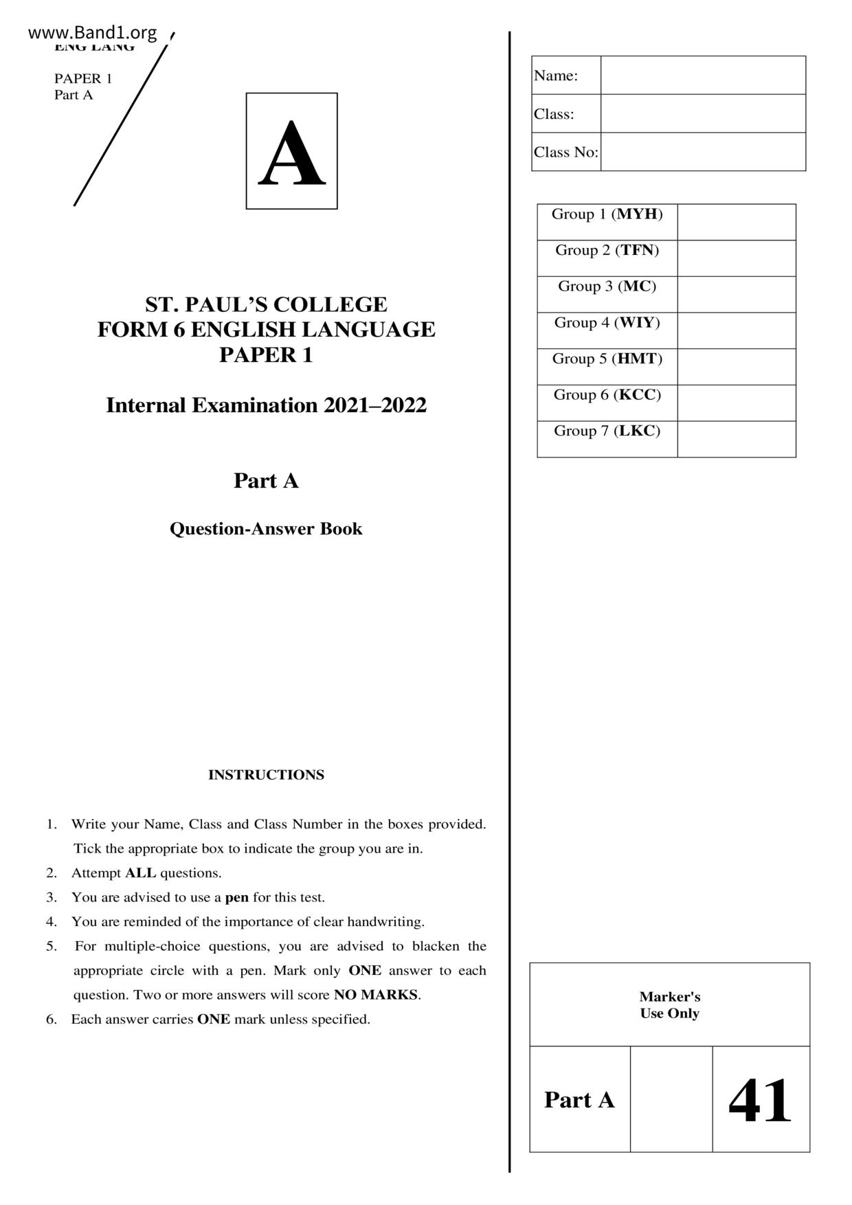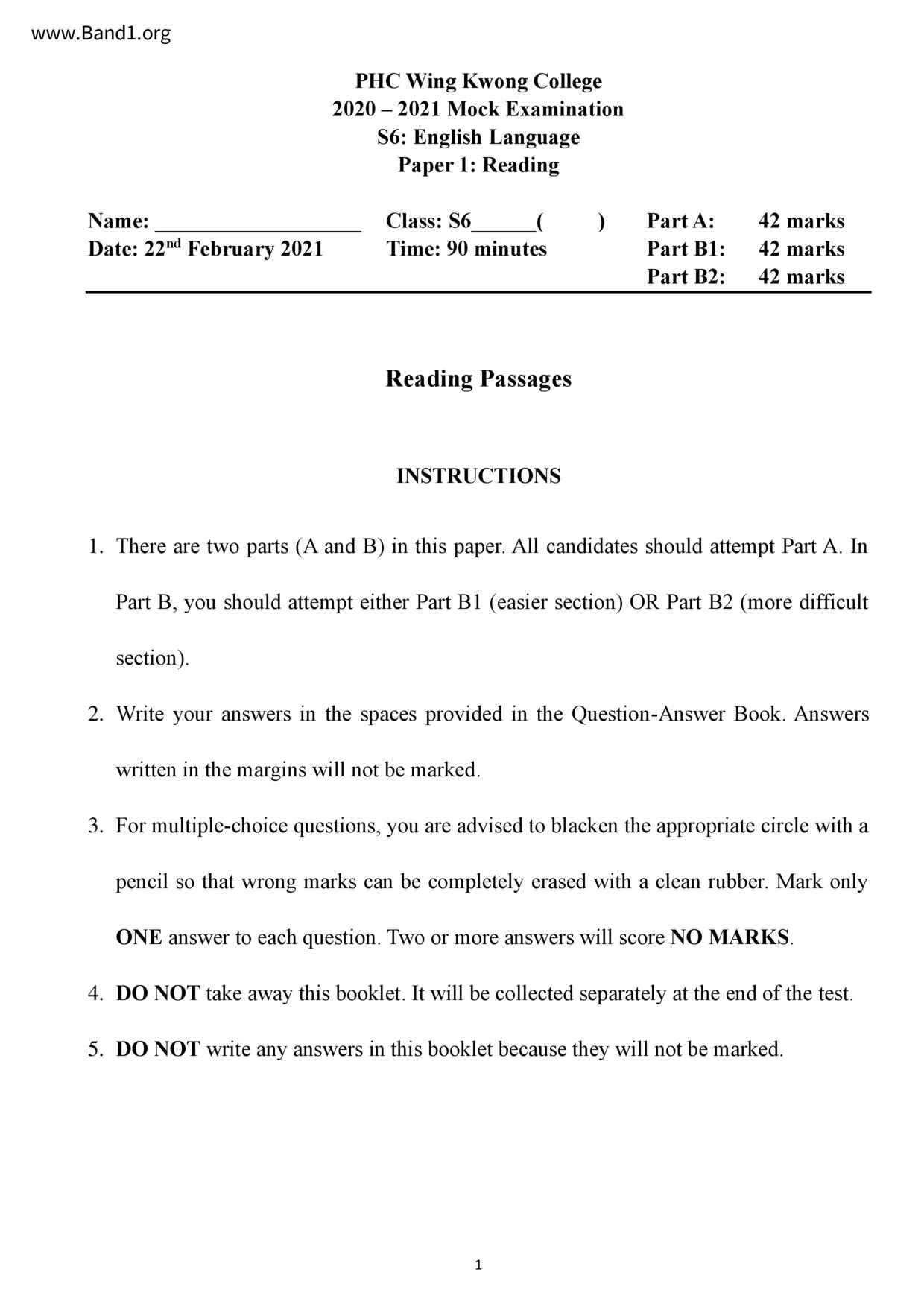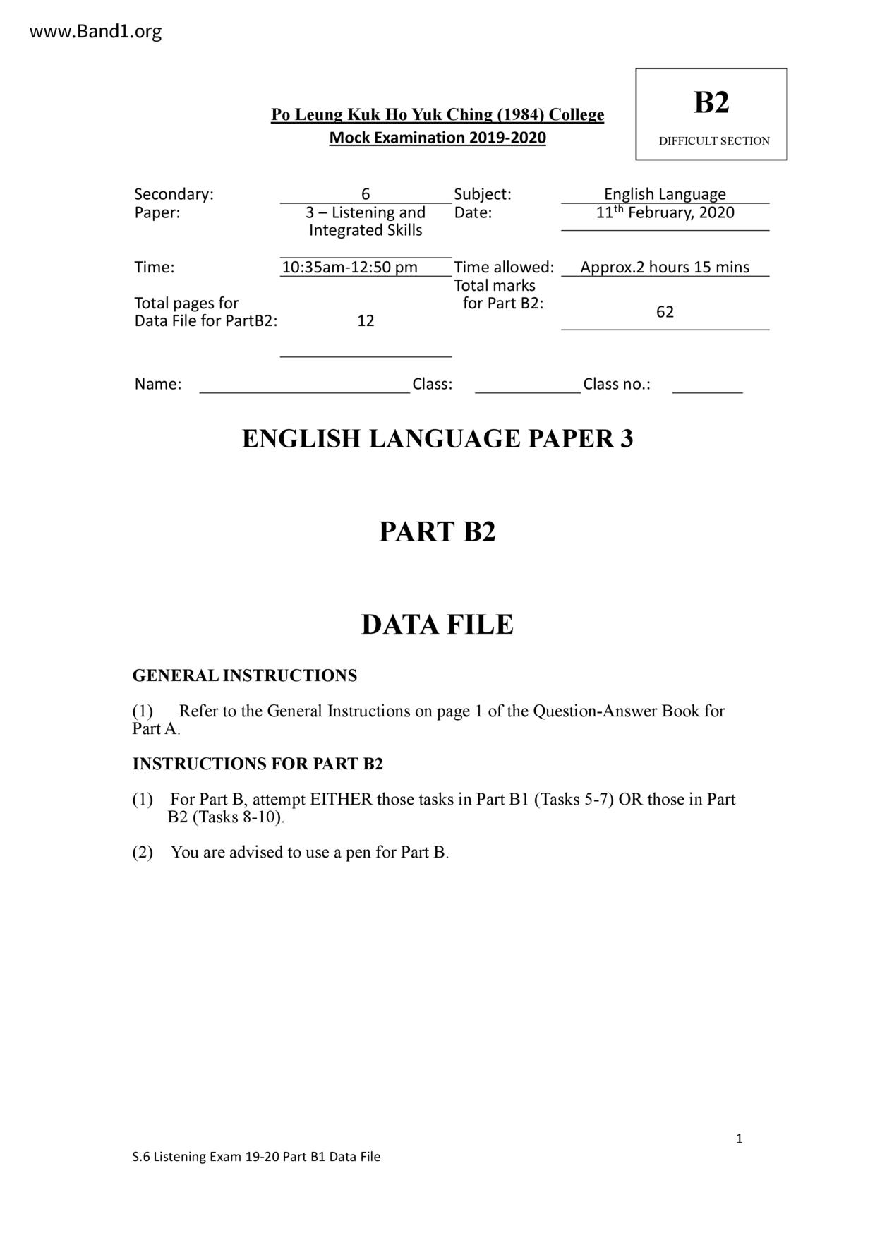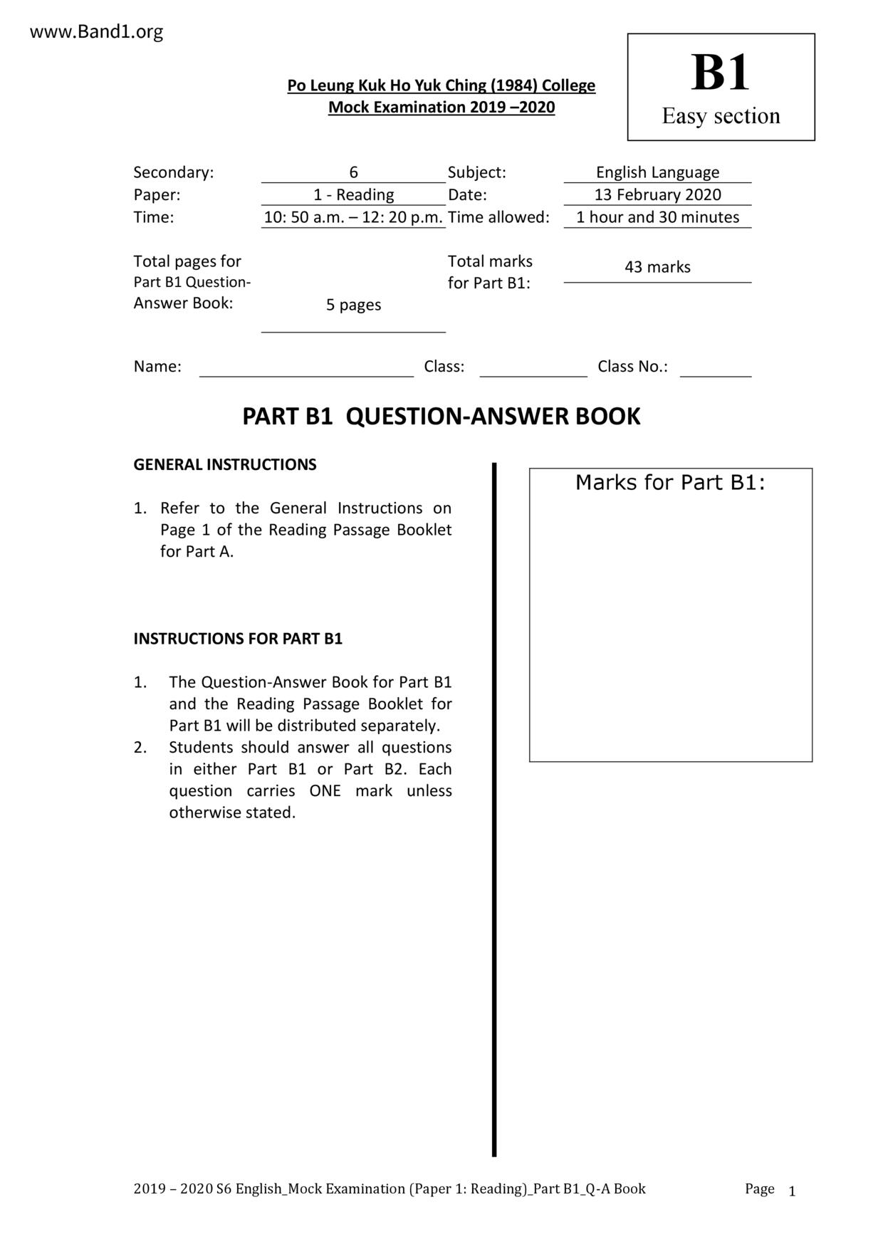 中六 英文 保良局第一張永慶中學
