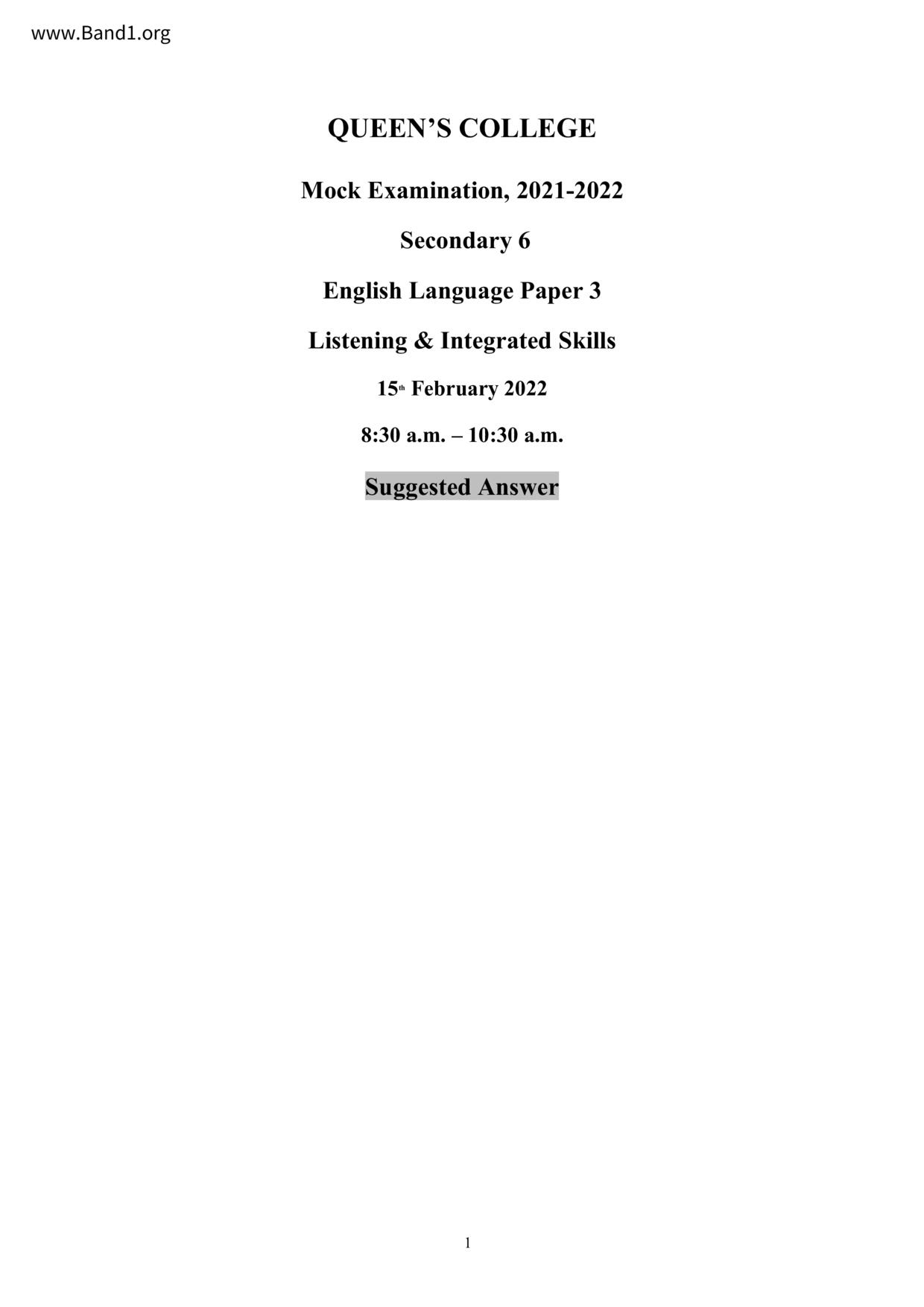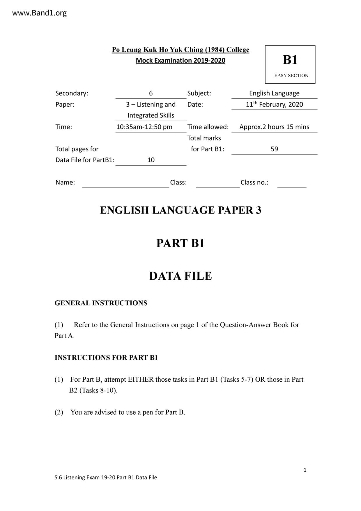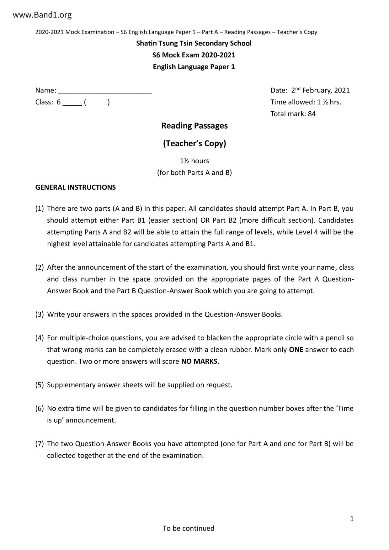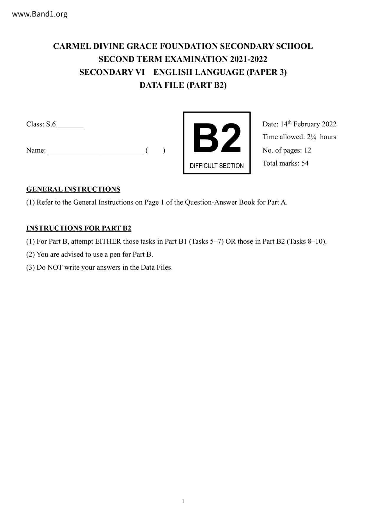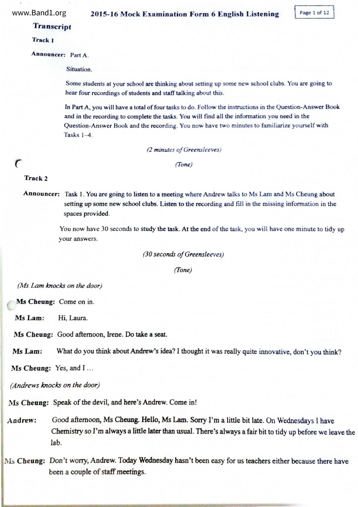 中六 英文 保良局第一張永慶中學