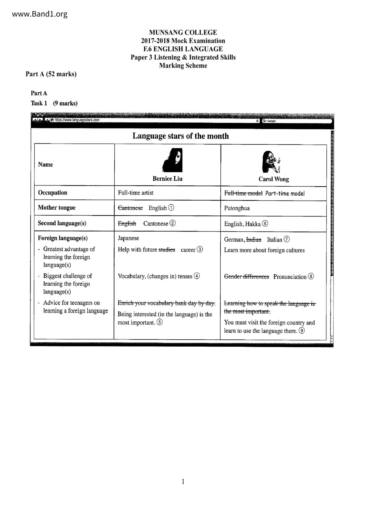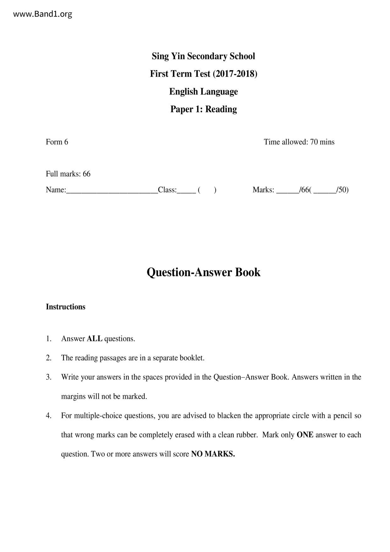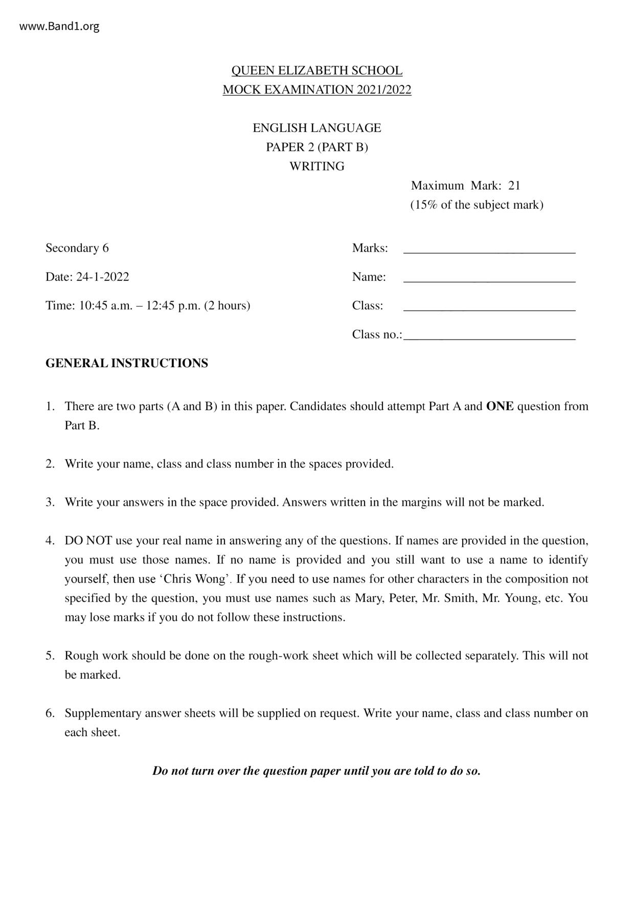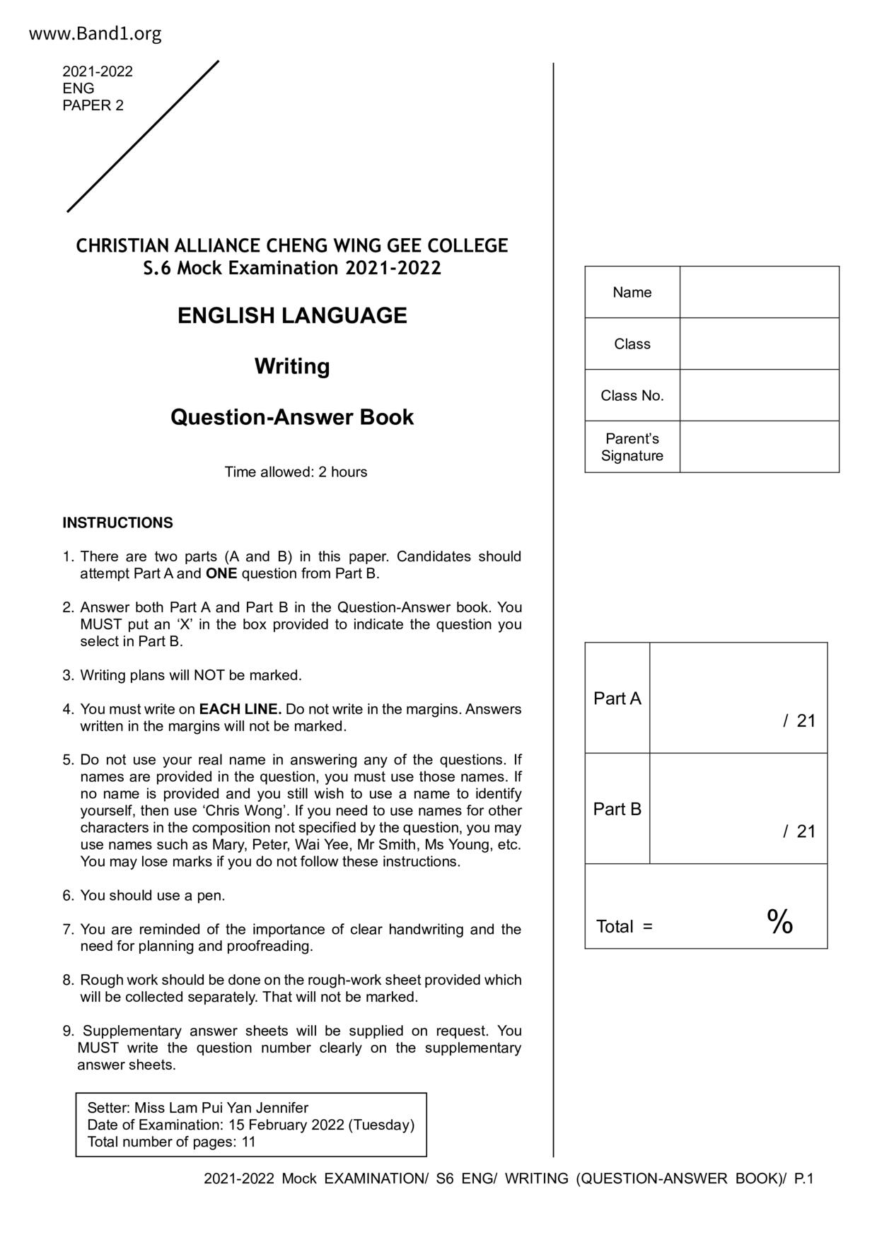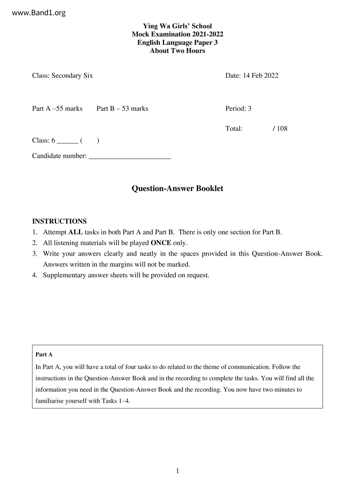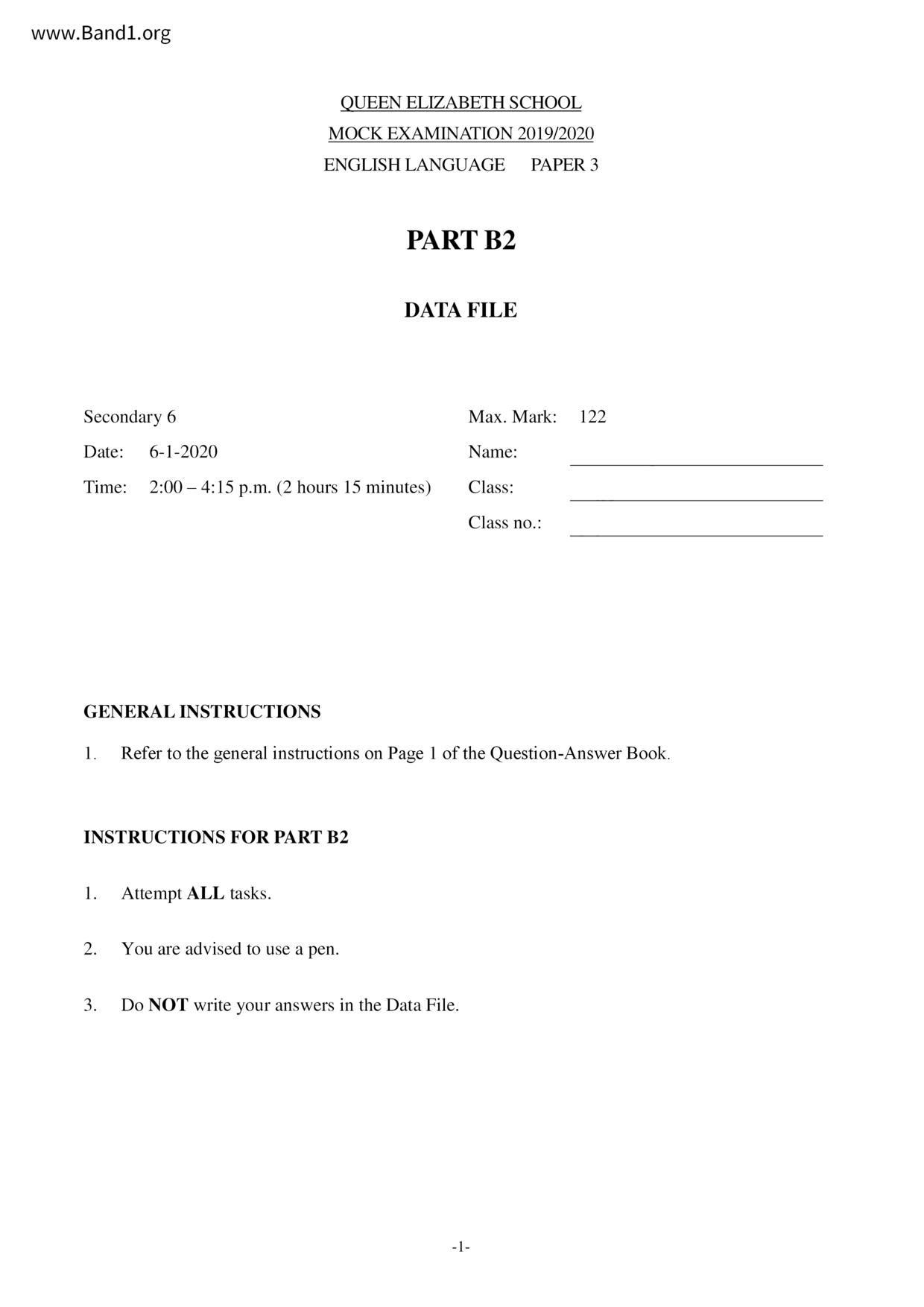 中六 英文 保良局第一張永慶中學