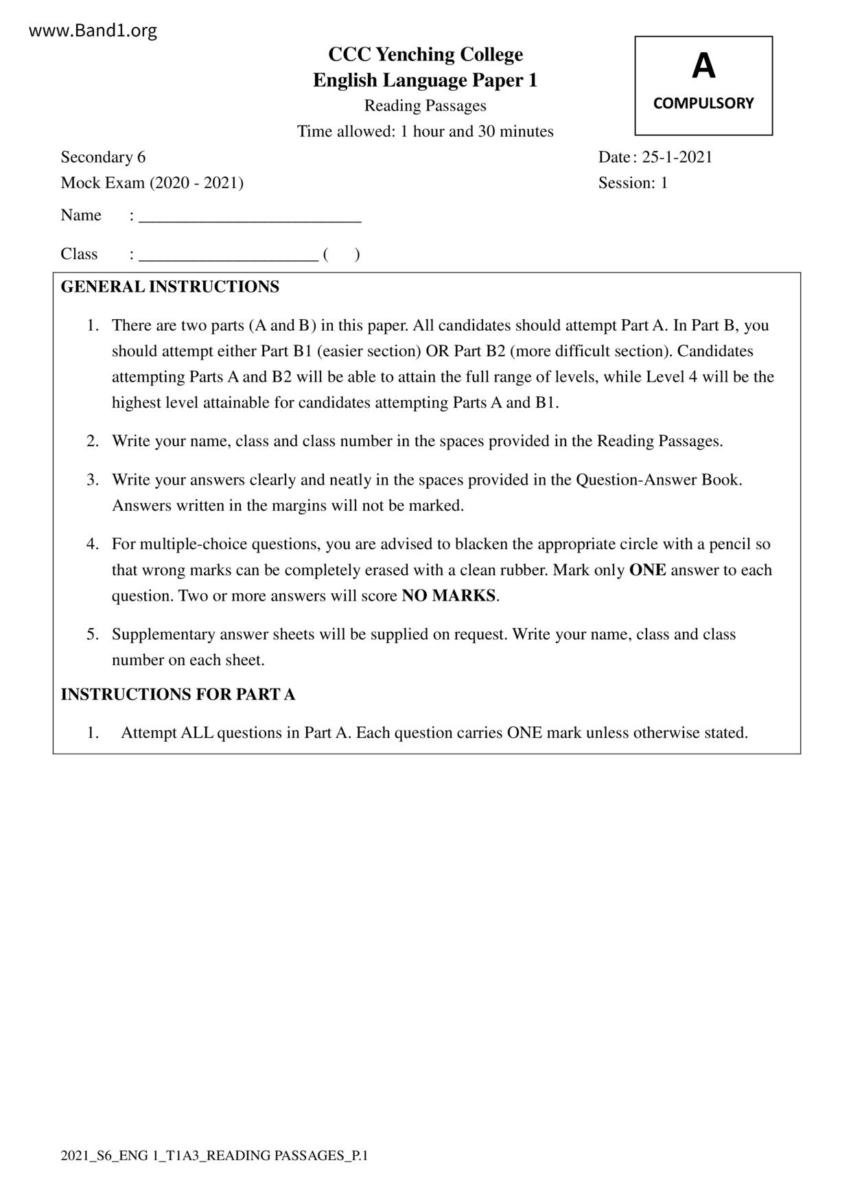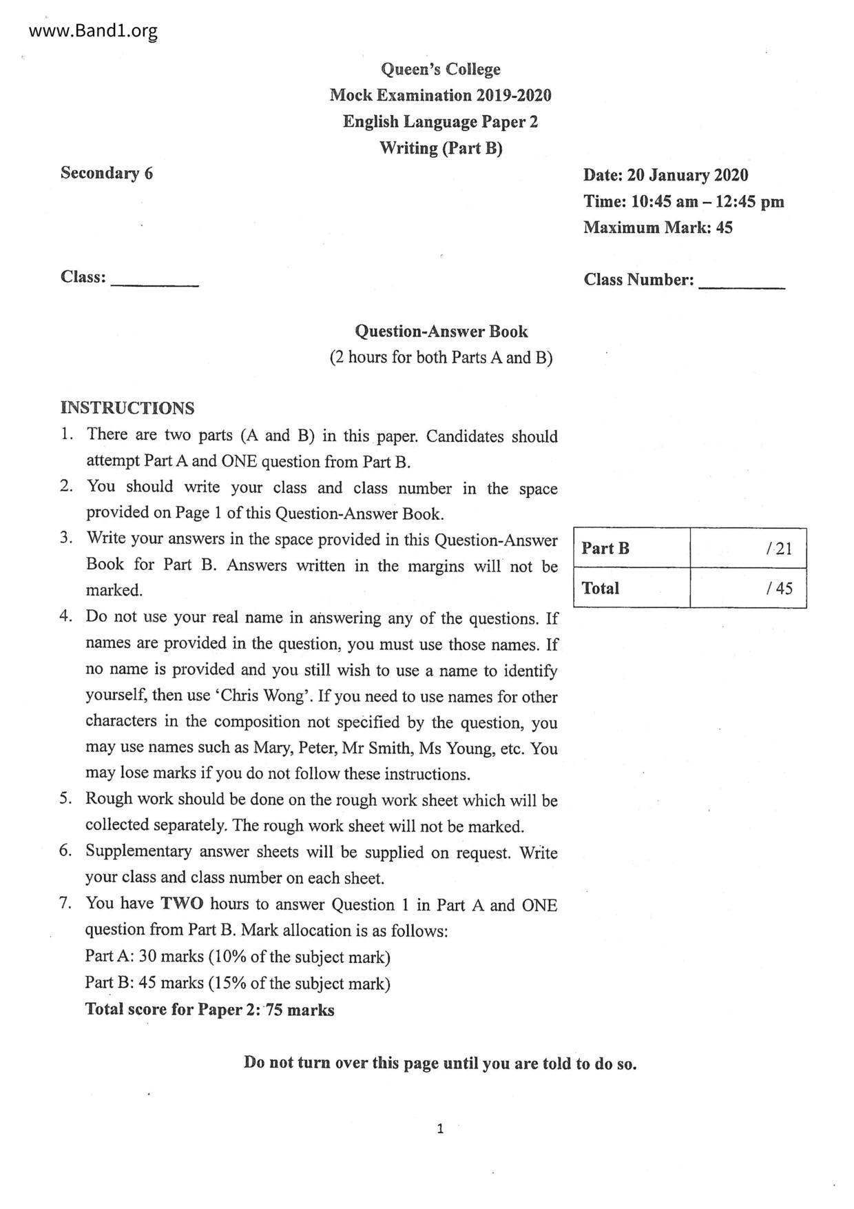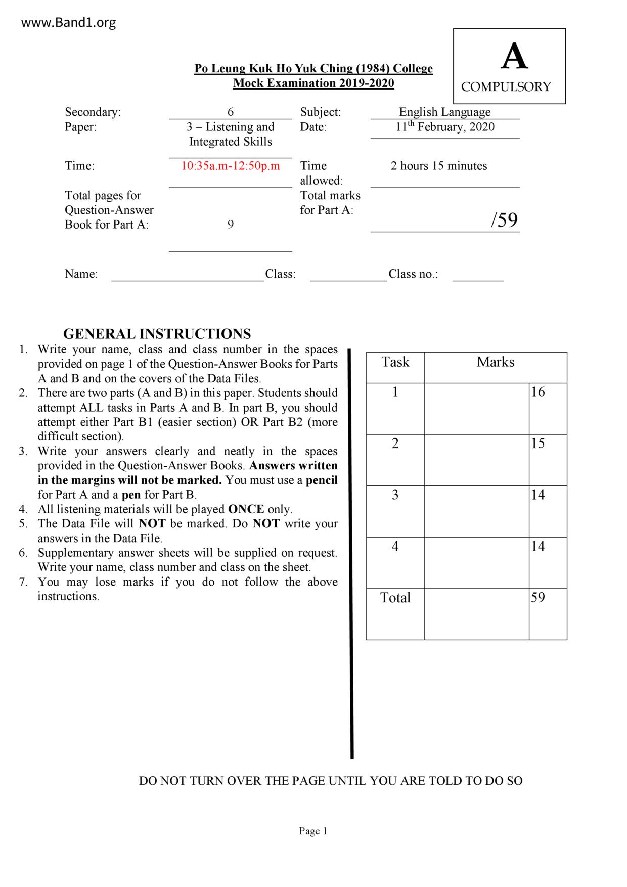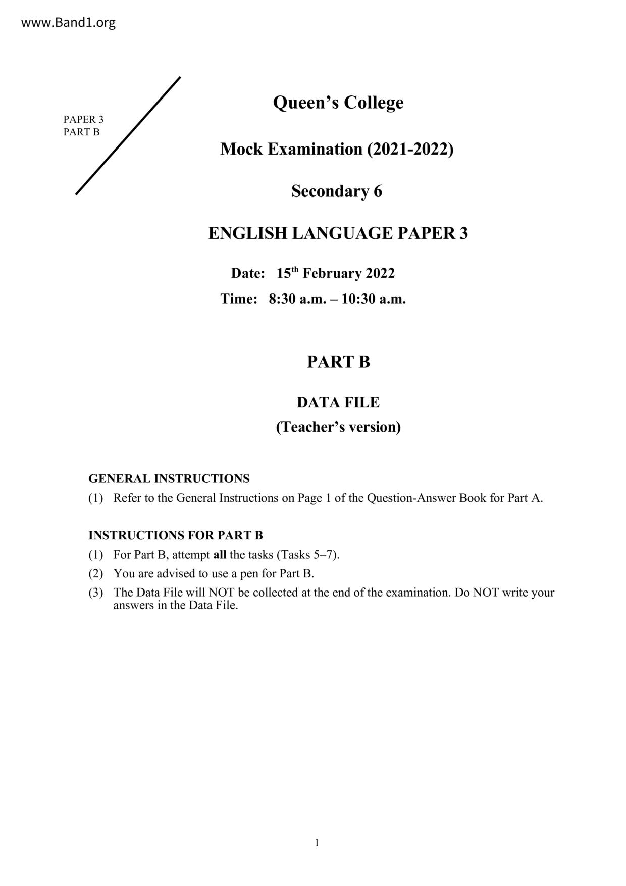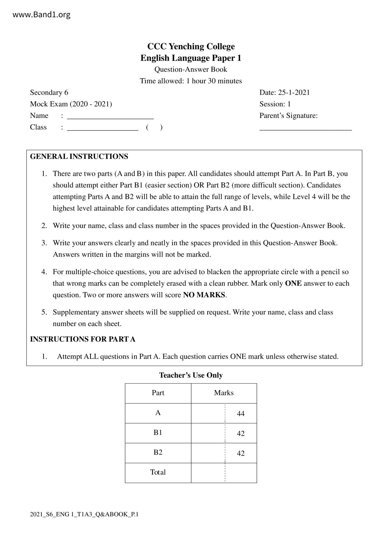 中六 英文 保良局第一張永慶中學