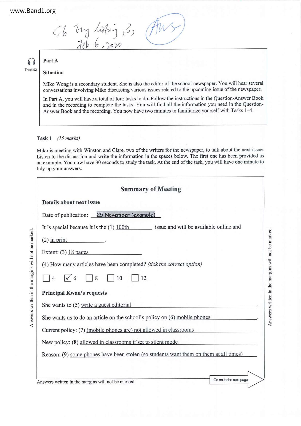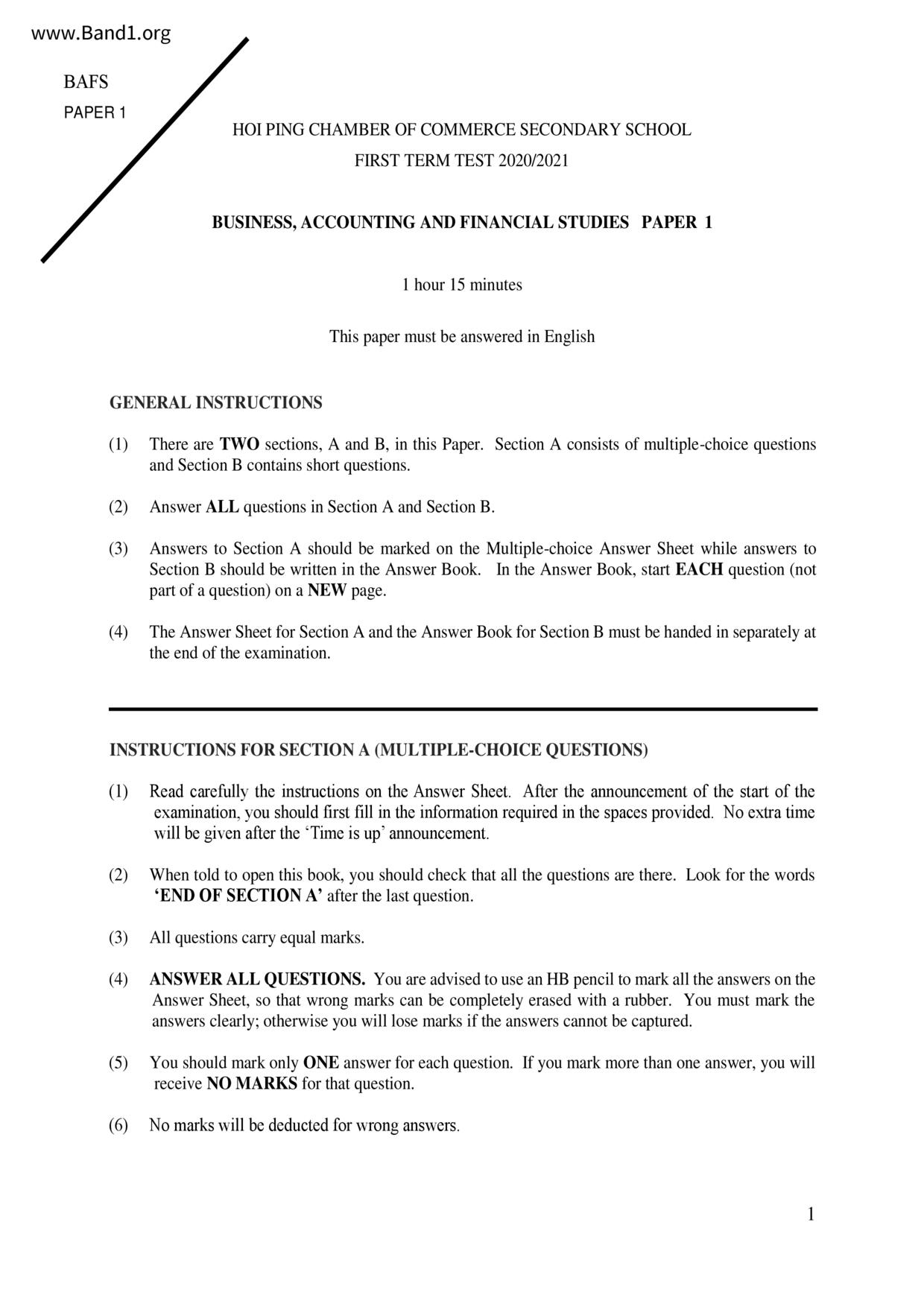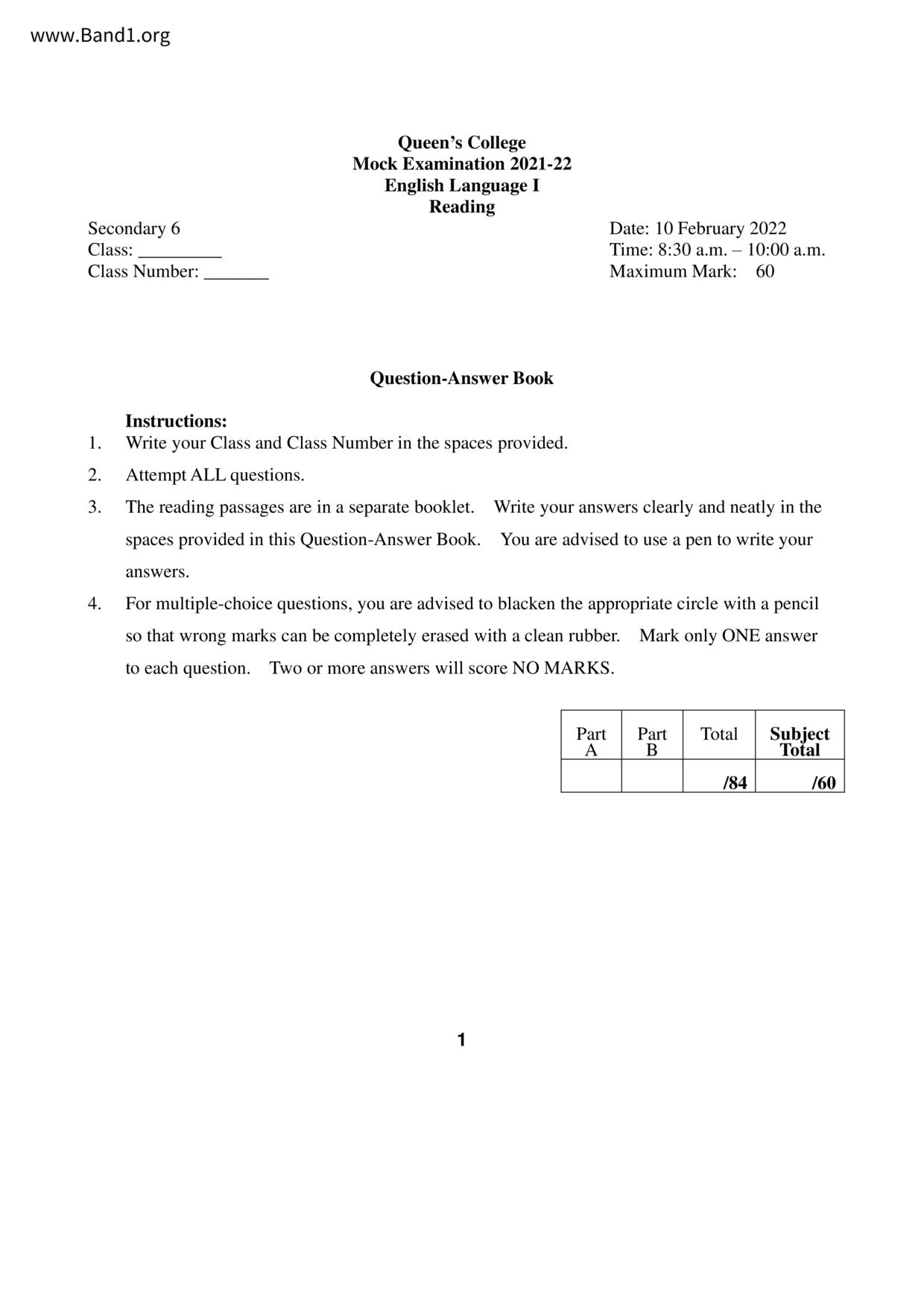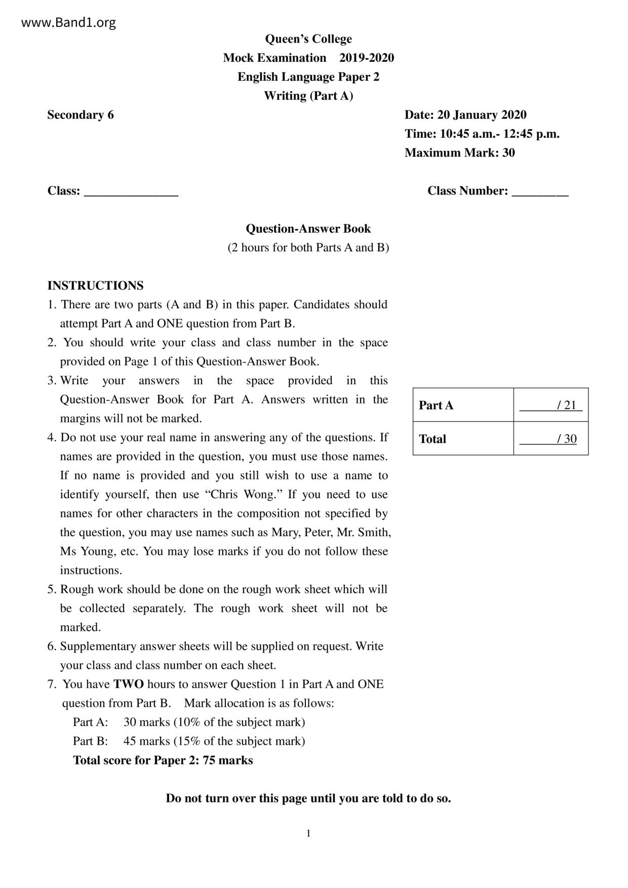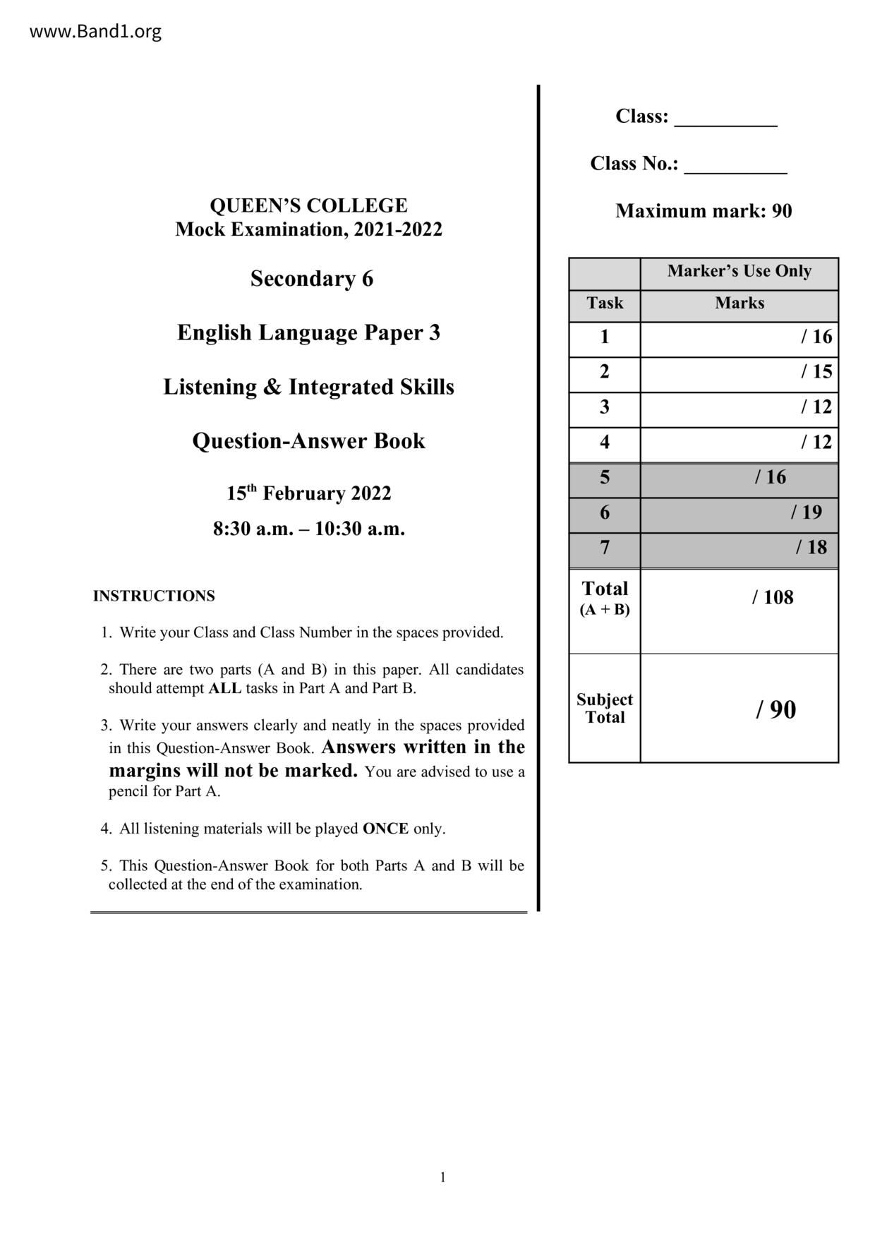 中六 英文 保良局第一張永慶中學