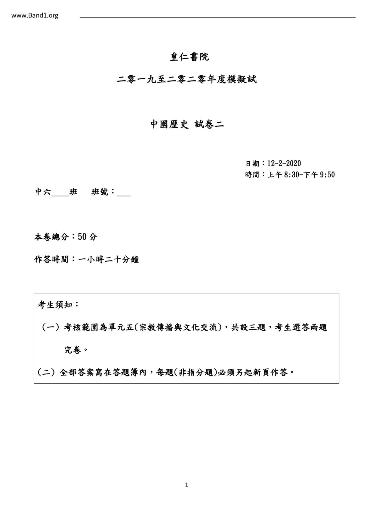 中六 中史 培僑中學