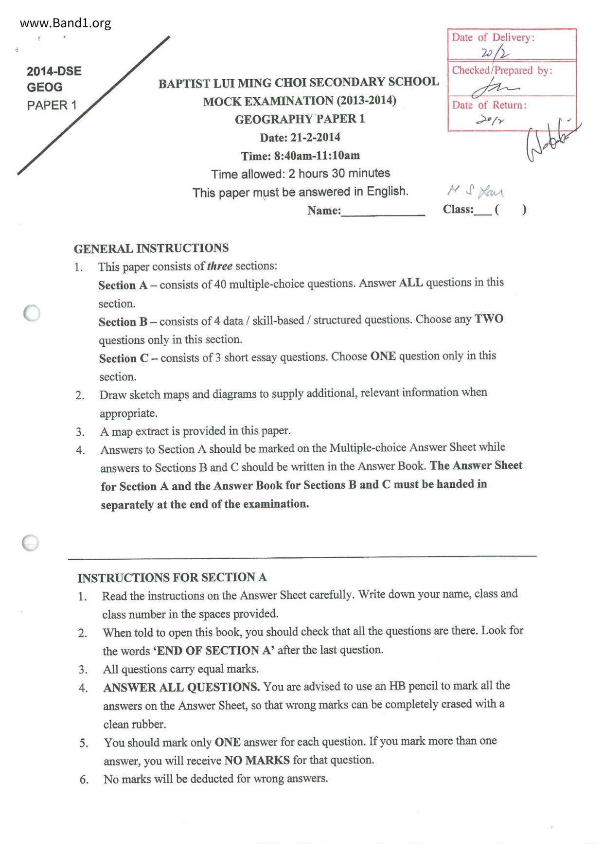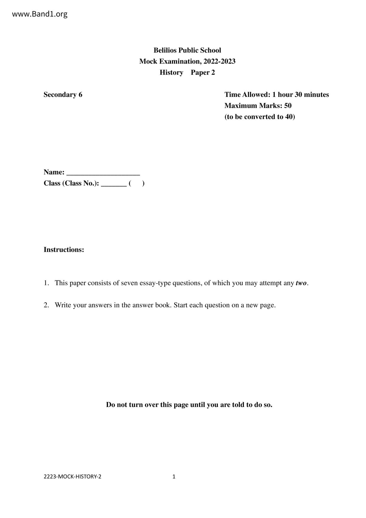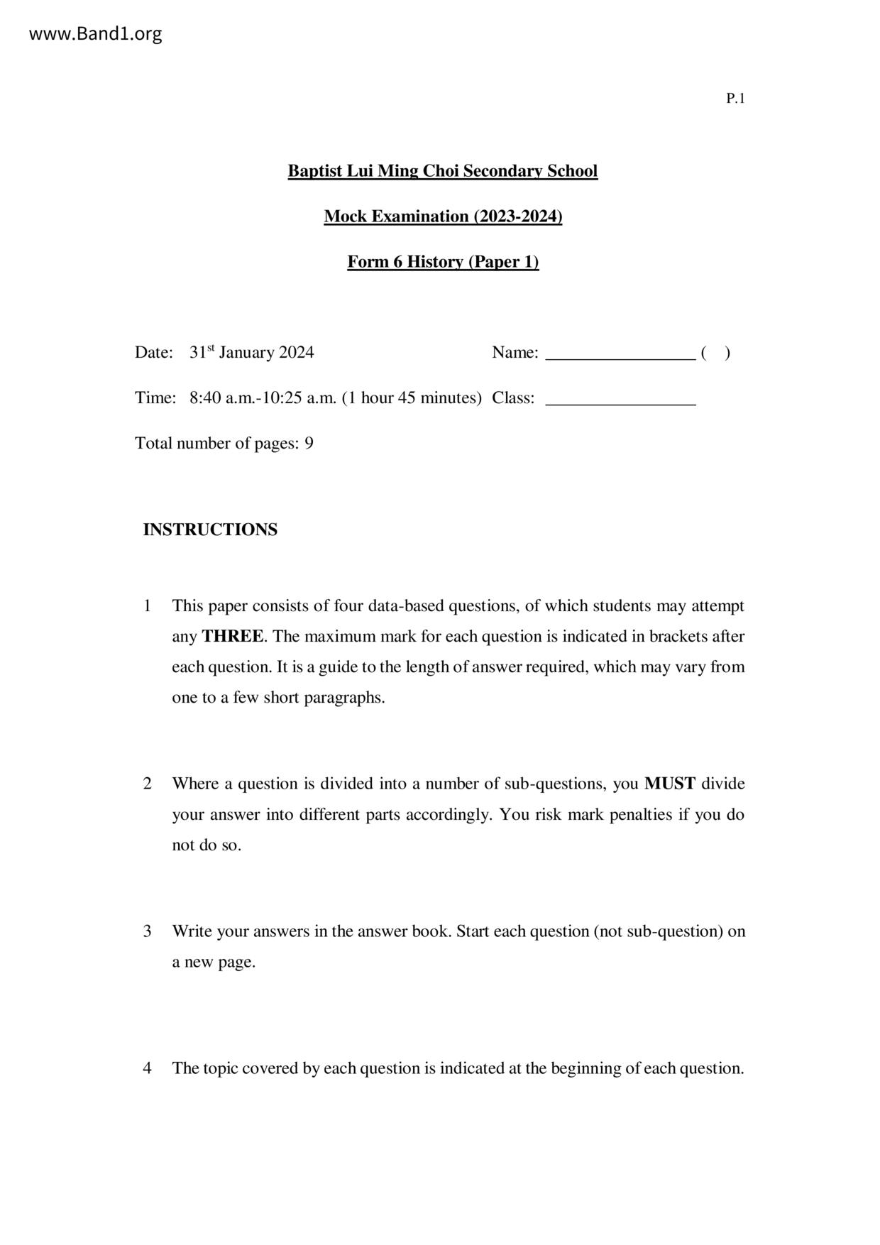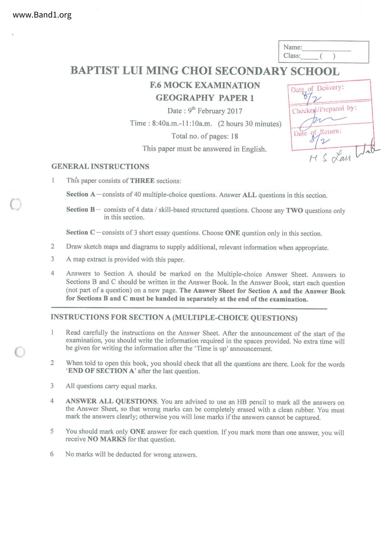中六 西史 浸信會呂明才中學
