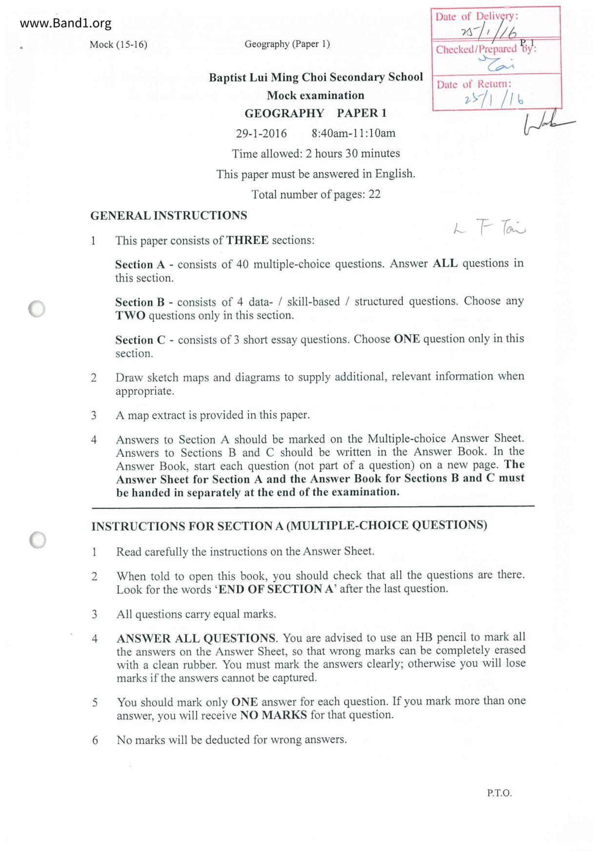 中六 地理 基督教崇真中學
