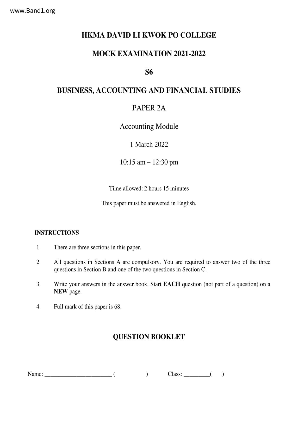 中六 會計 香港管理專業協會李國寶中學