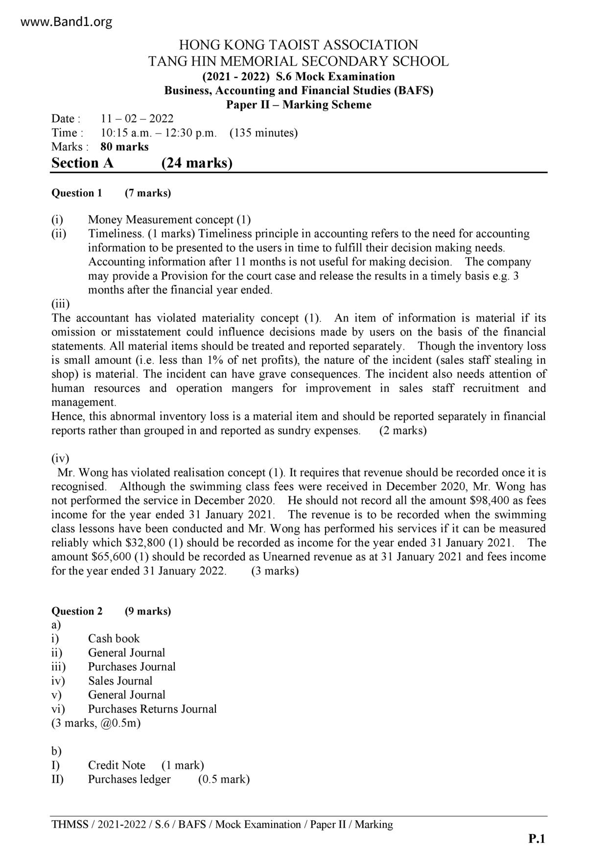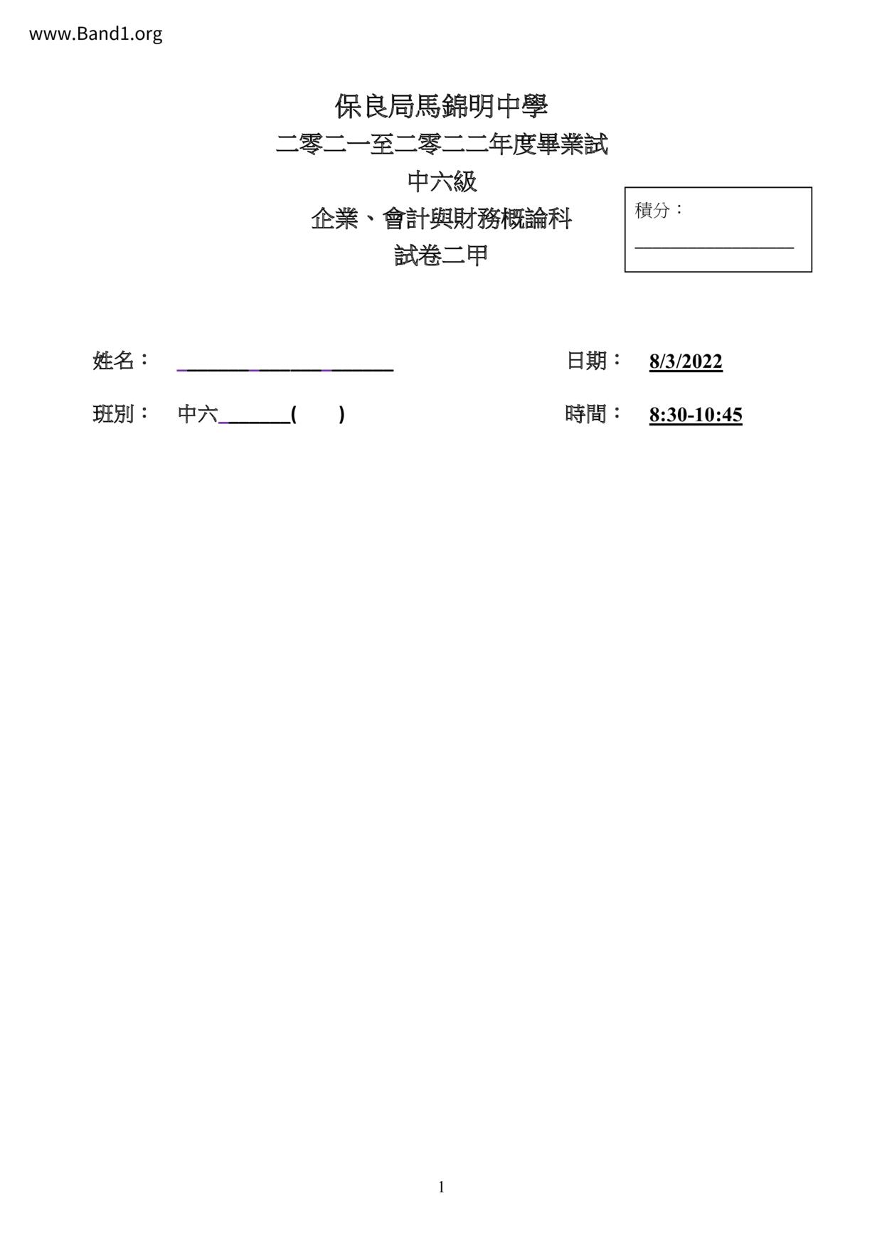 中六 會計 播道書院