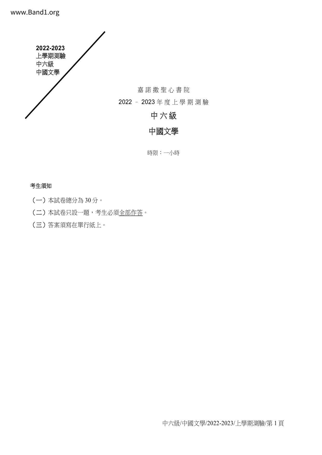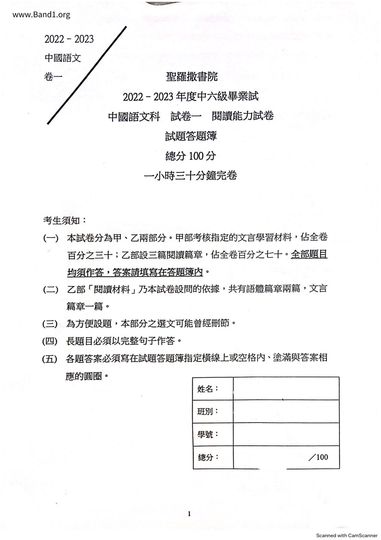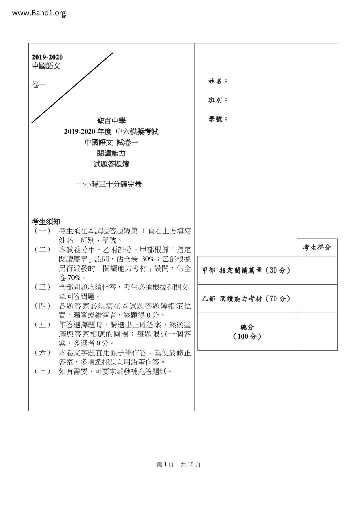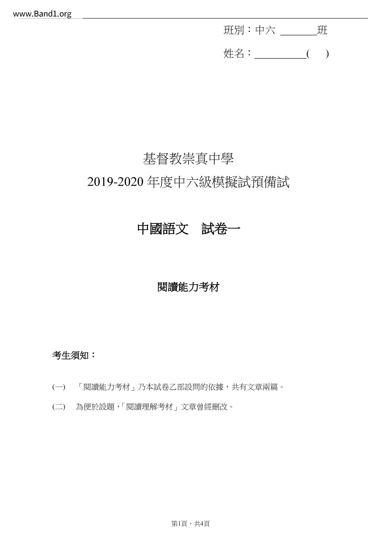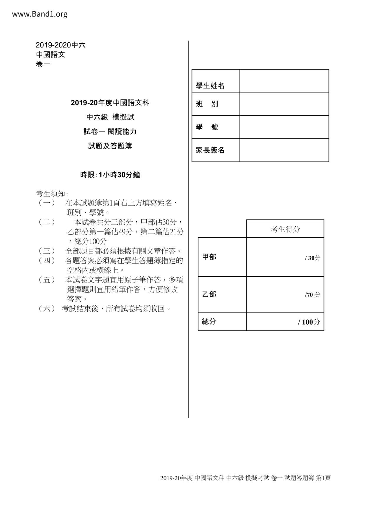 中六 中文 嗇色園主辦可譽中學暨可譽小學