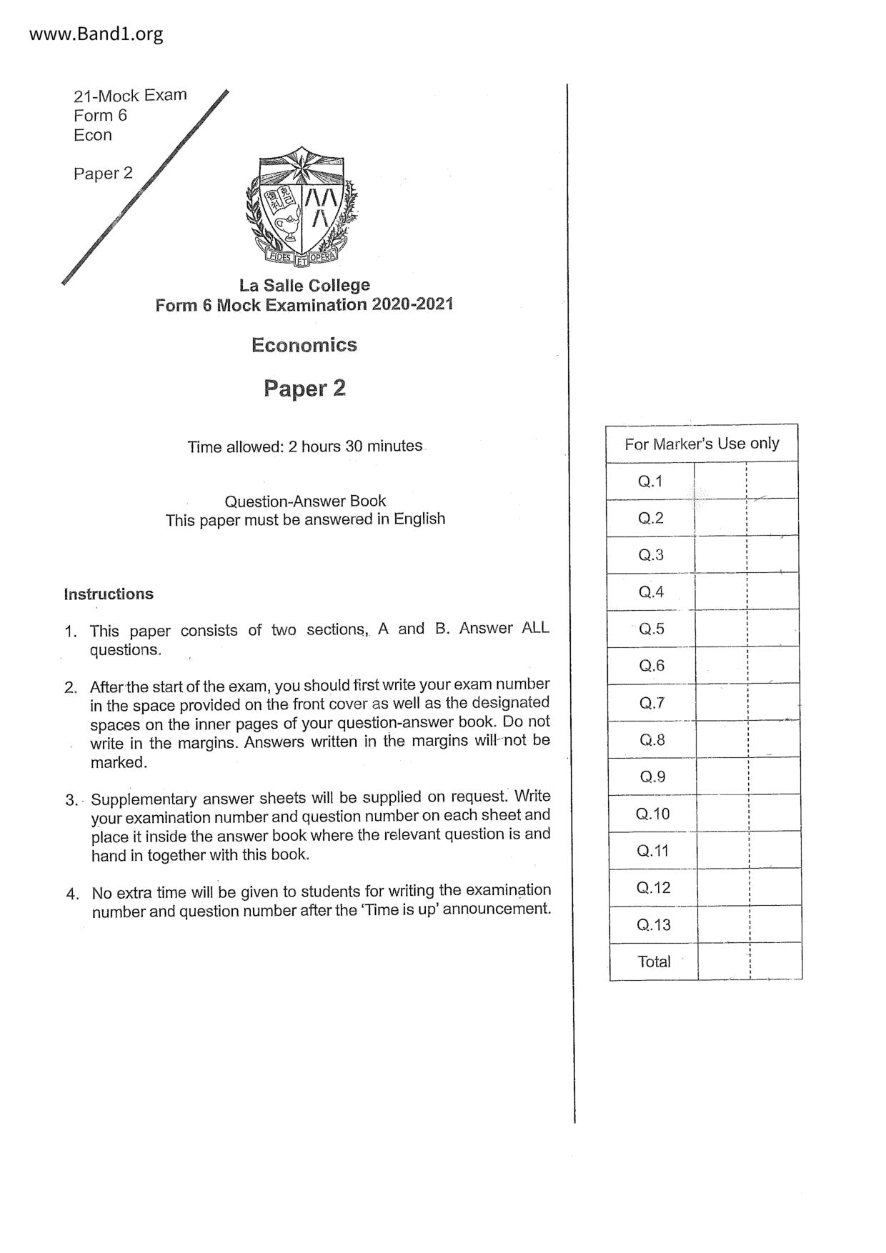 中六 經濟 喇沙書院