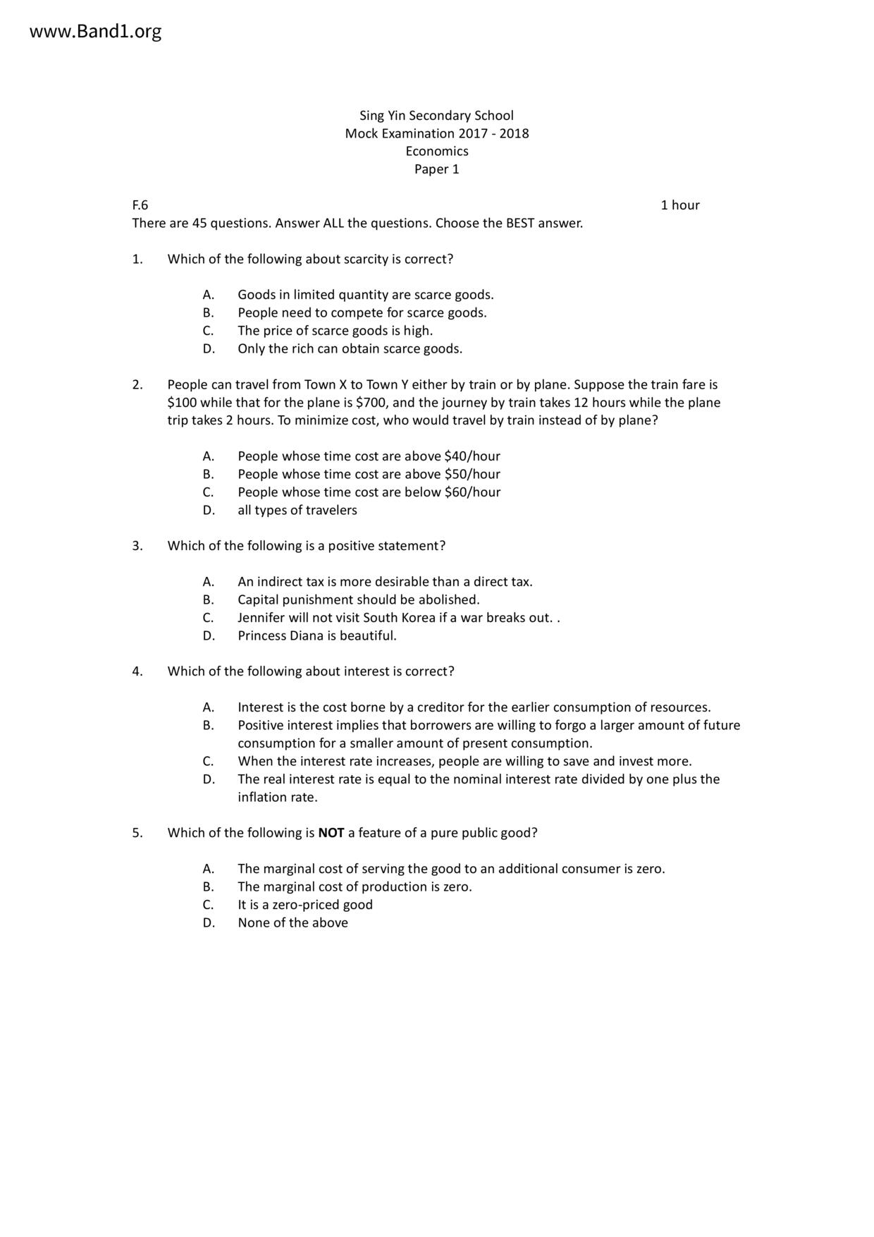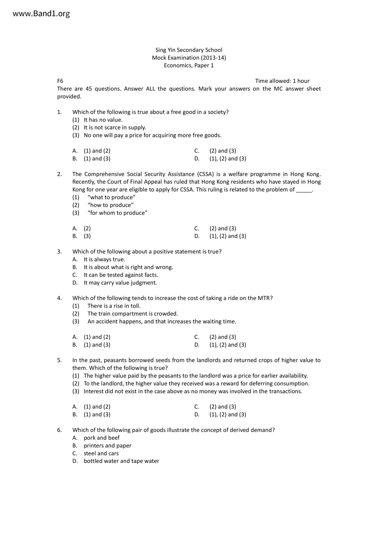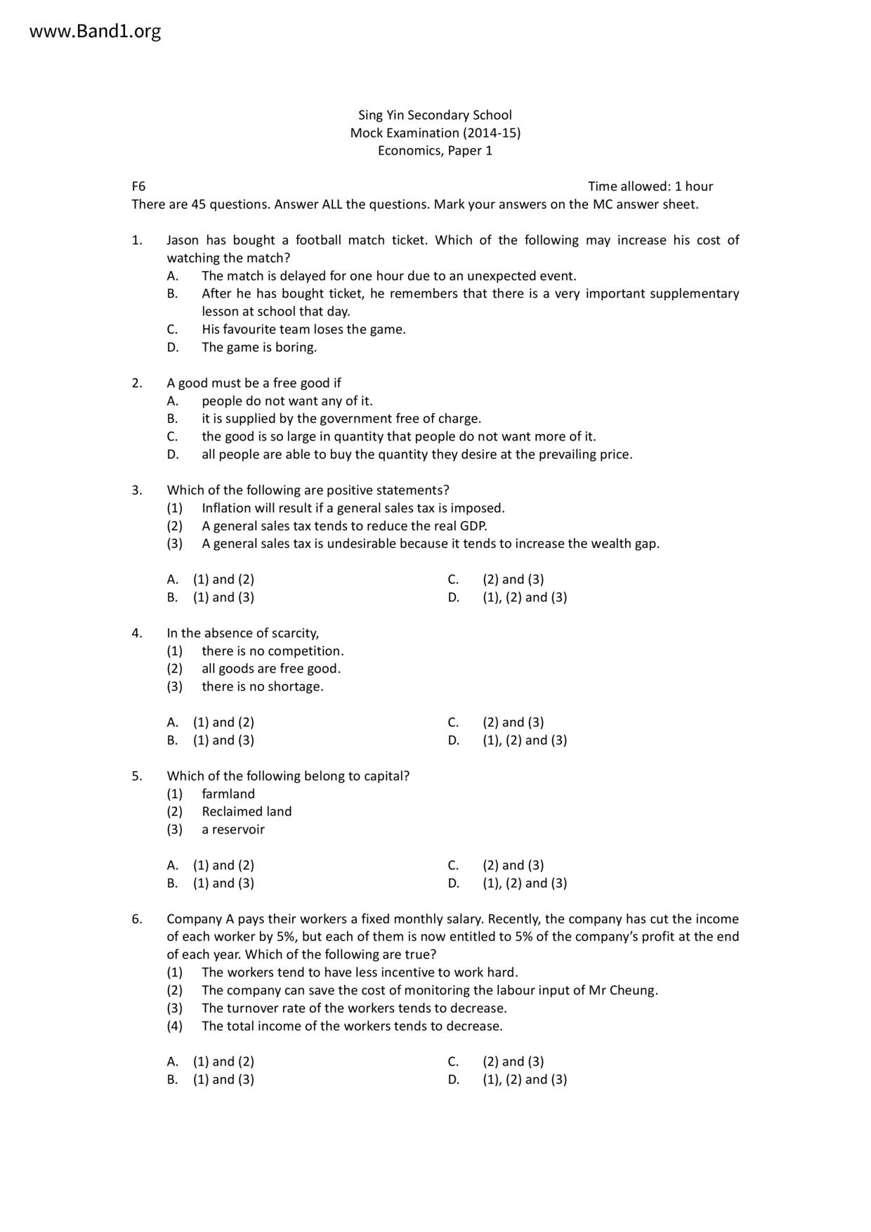 中六 經濟 聖羅撒書院