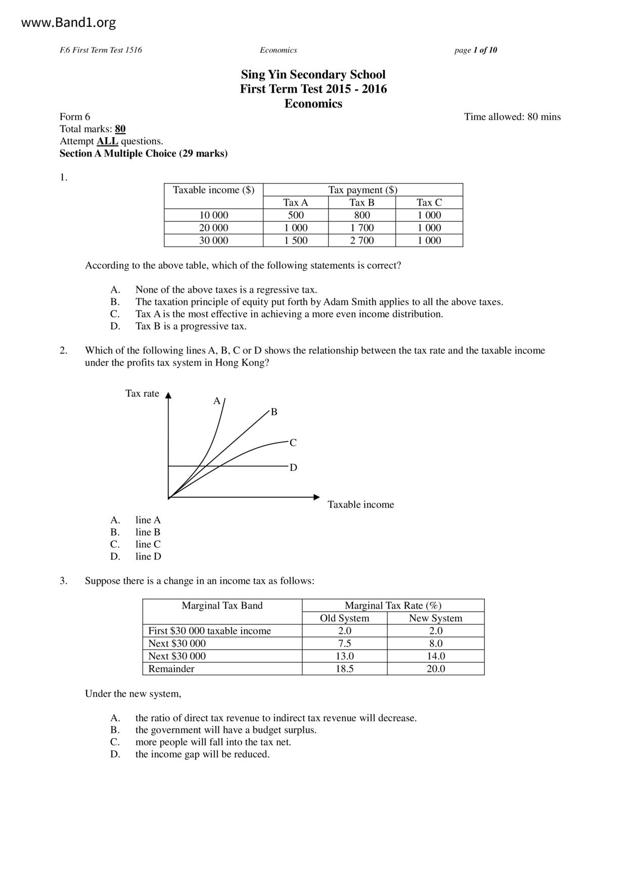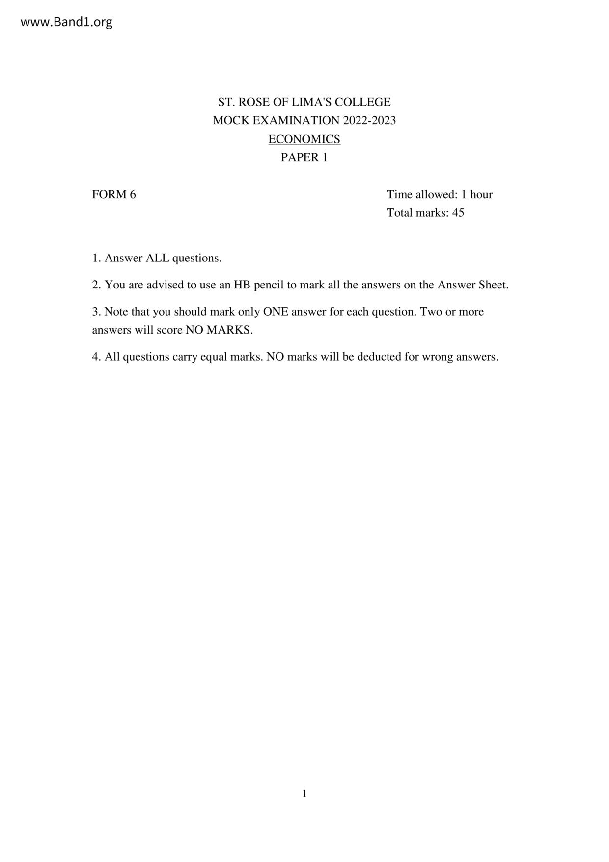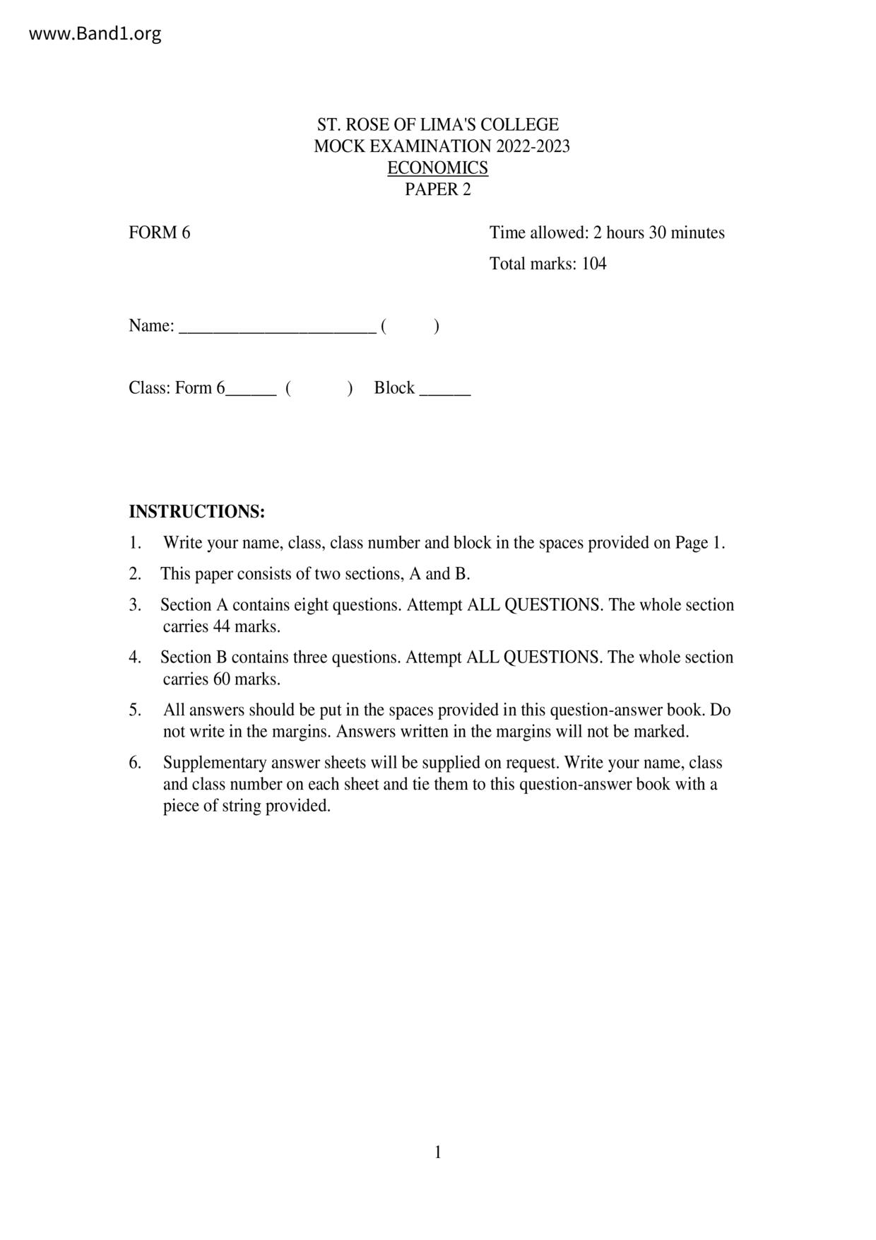 中六 經濟 聖羅撒書院