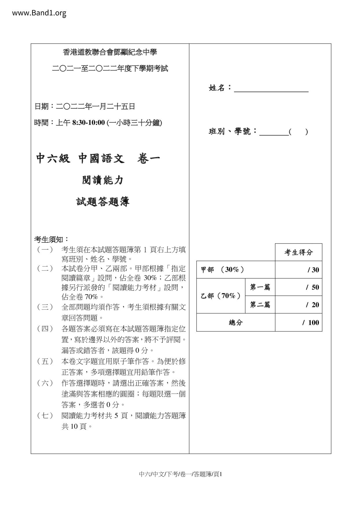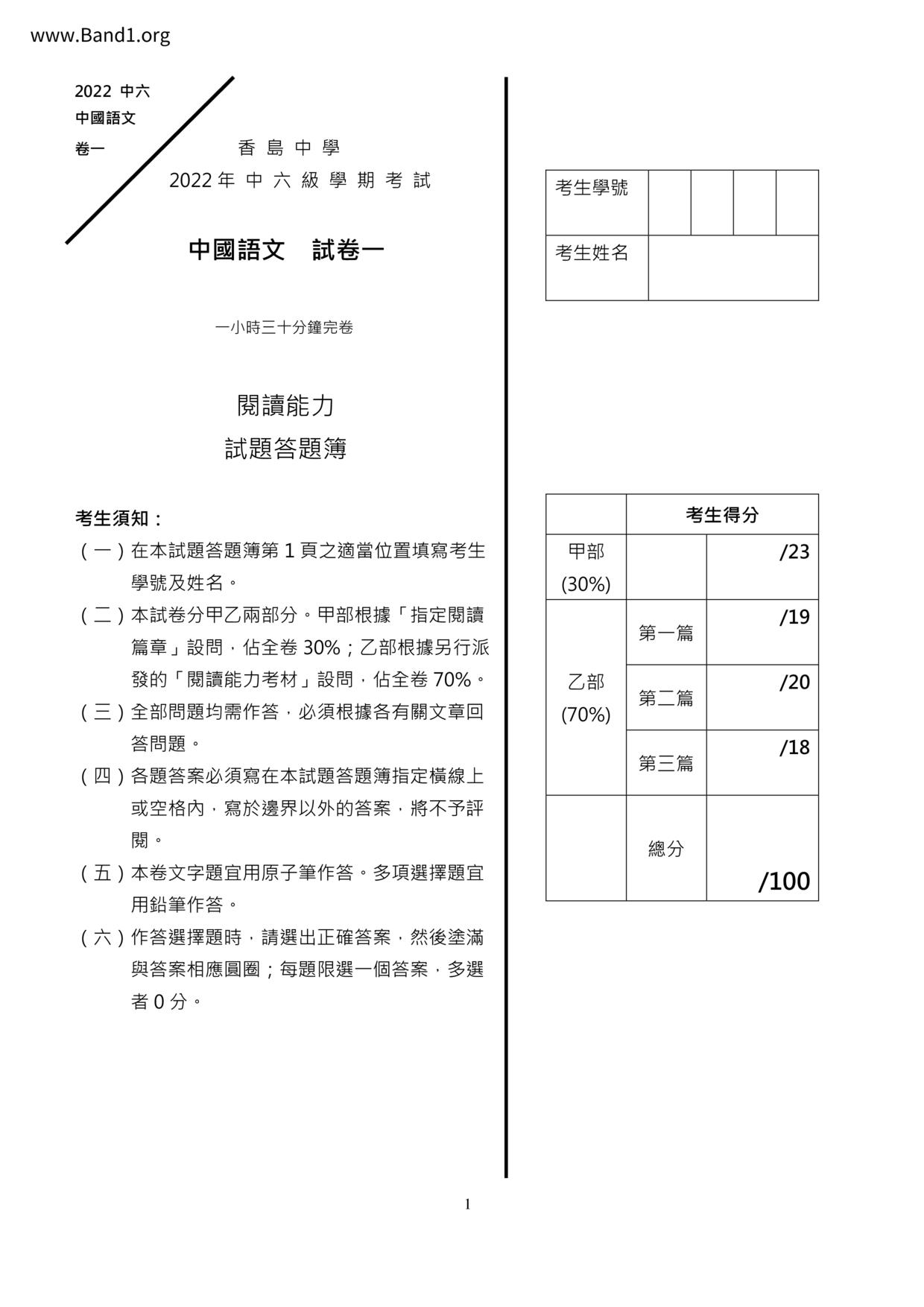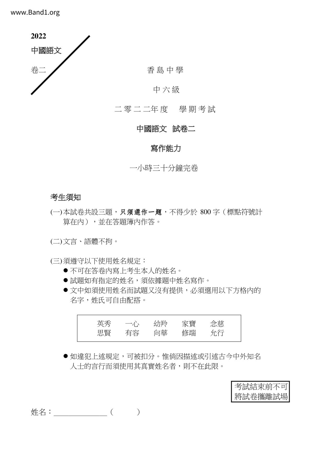 香港試卷