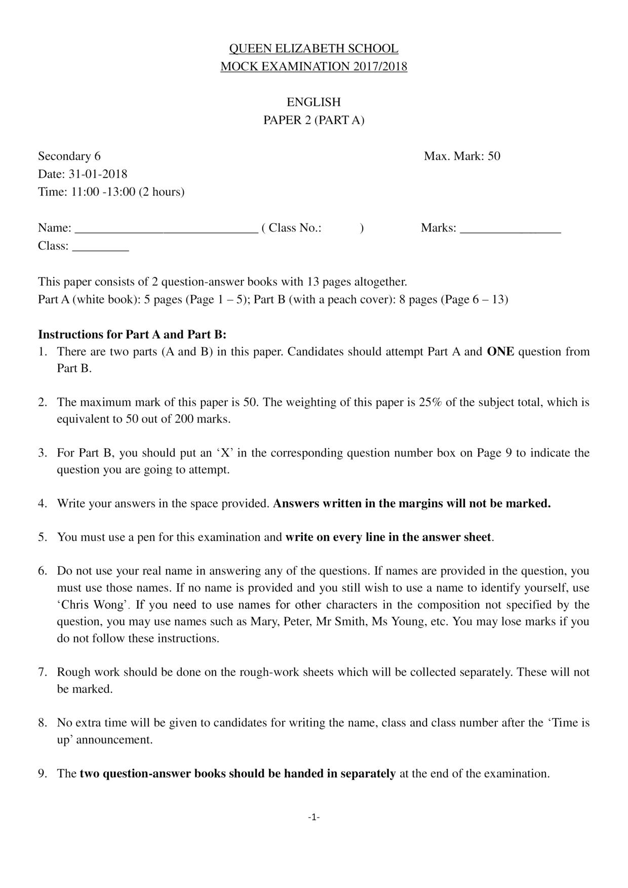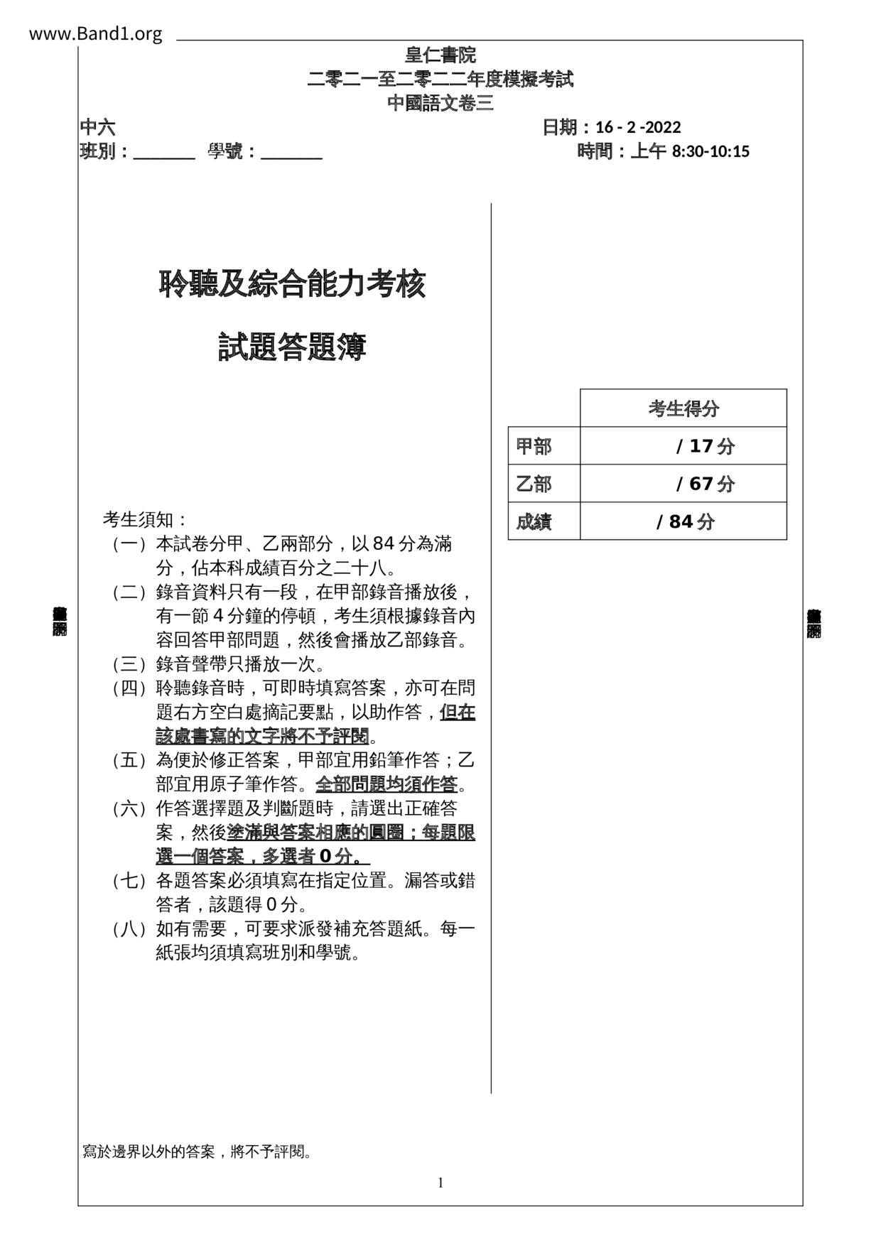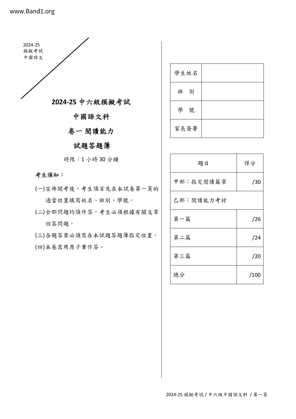 香港試卷