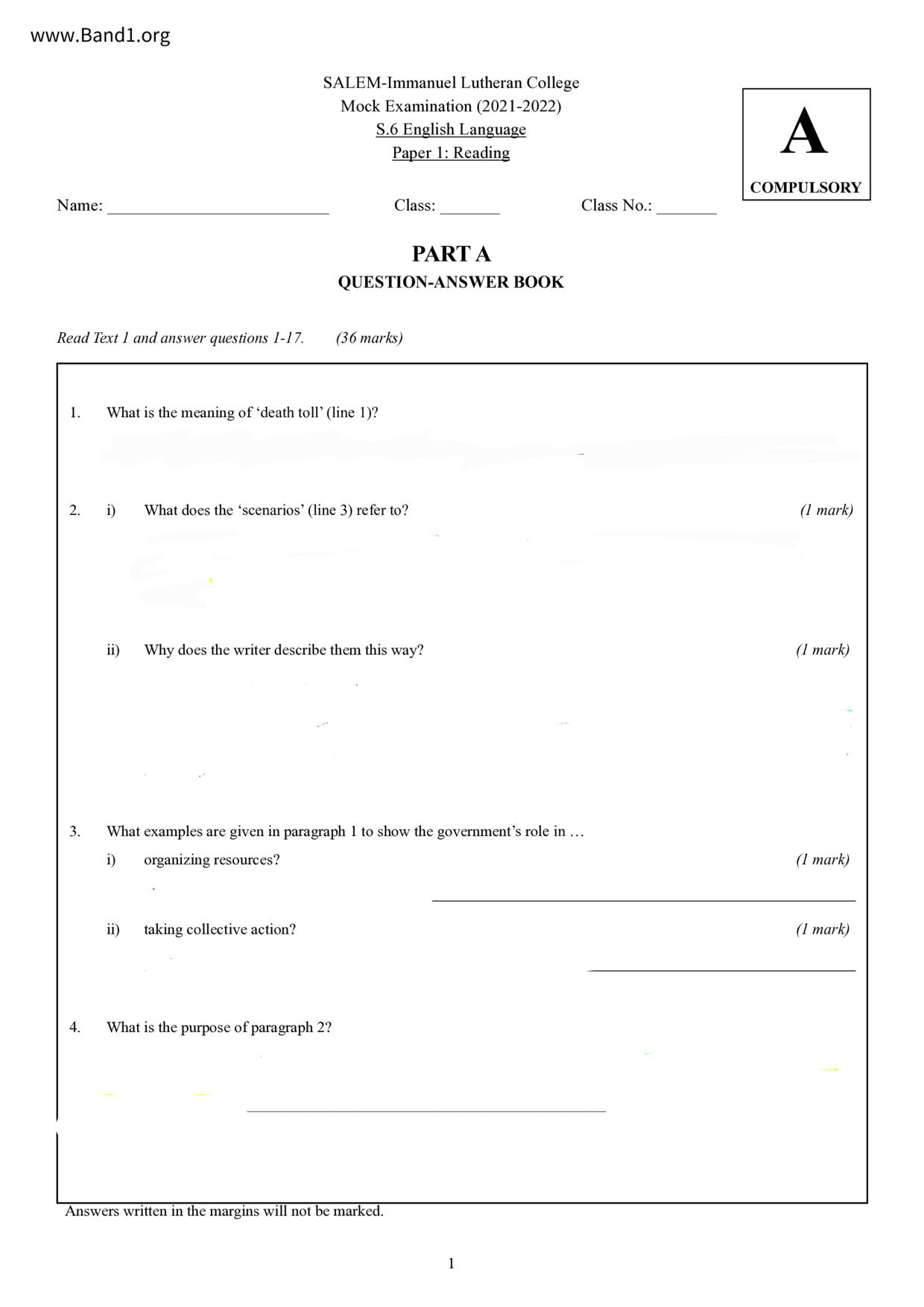 中六 英文 南亞路德會沐恩中學