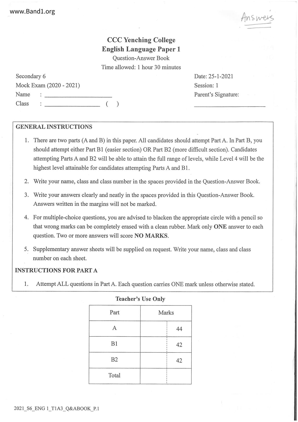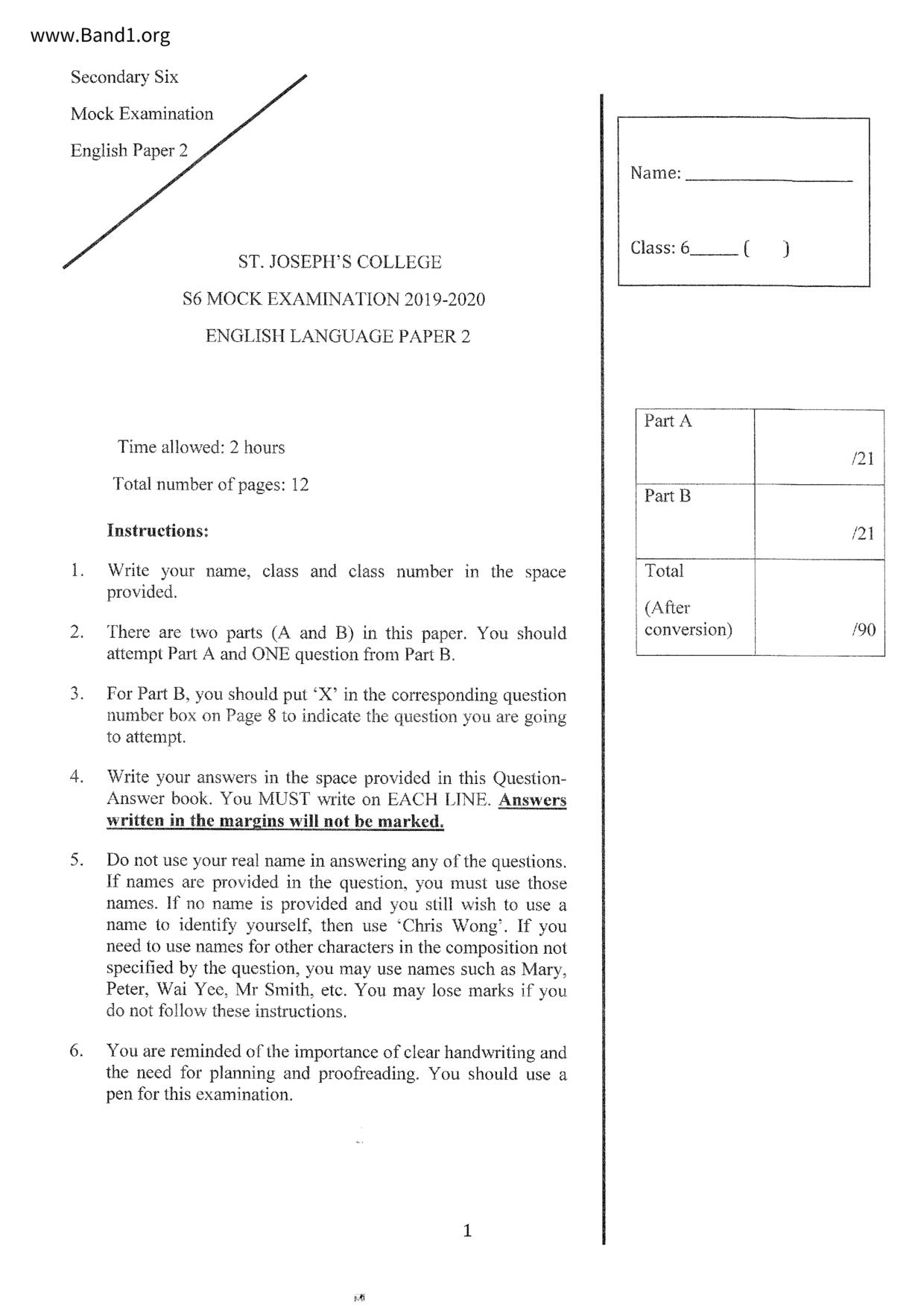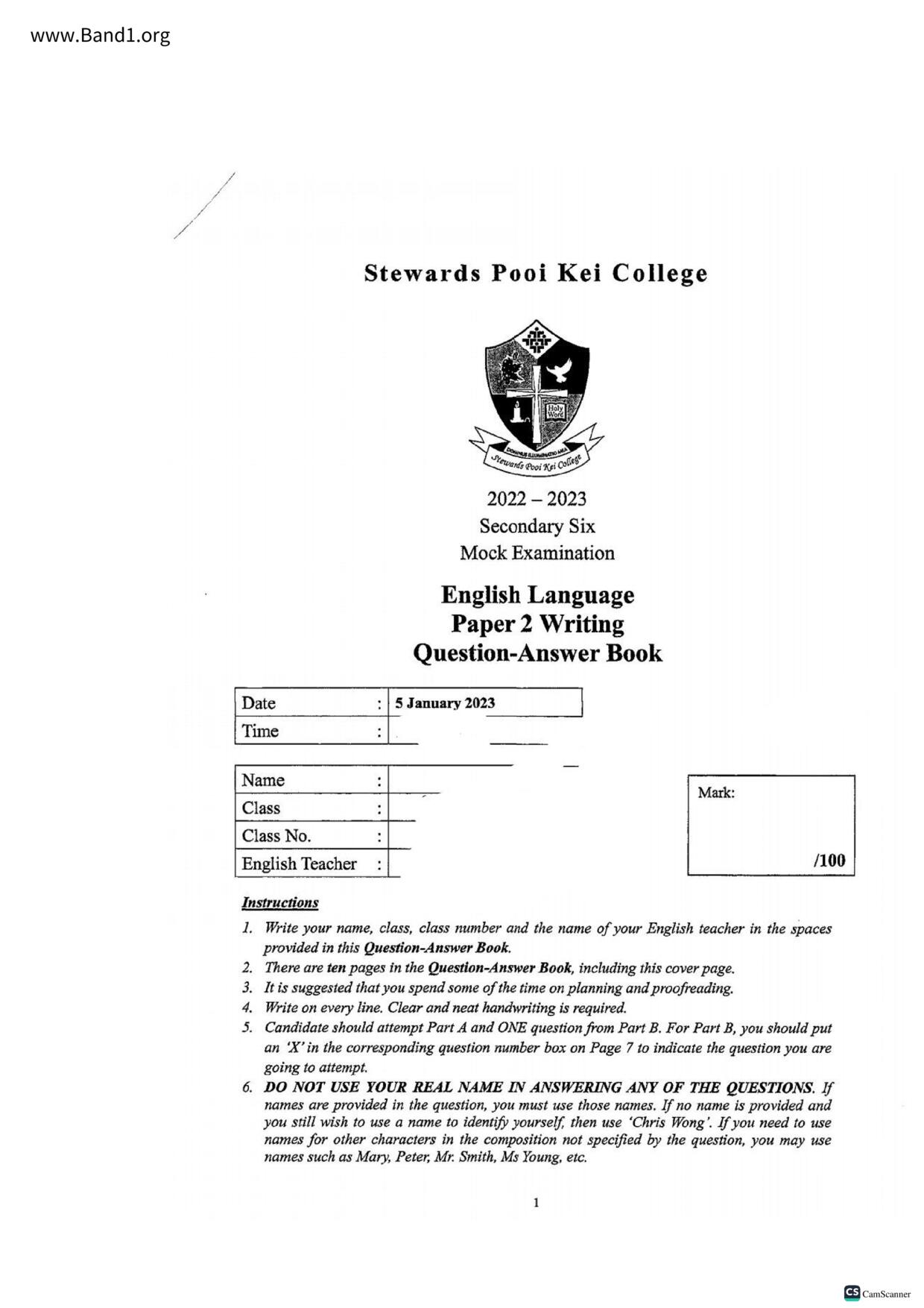 中六 英文 香港神託會培基書院