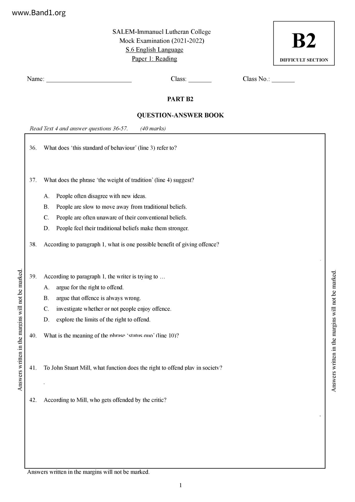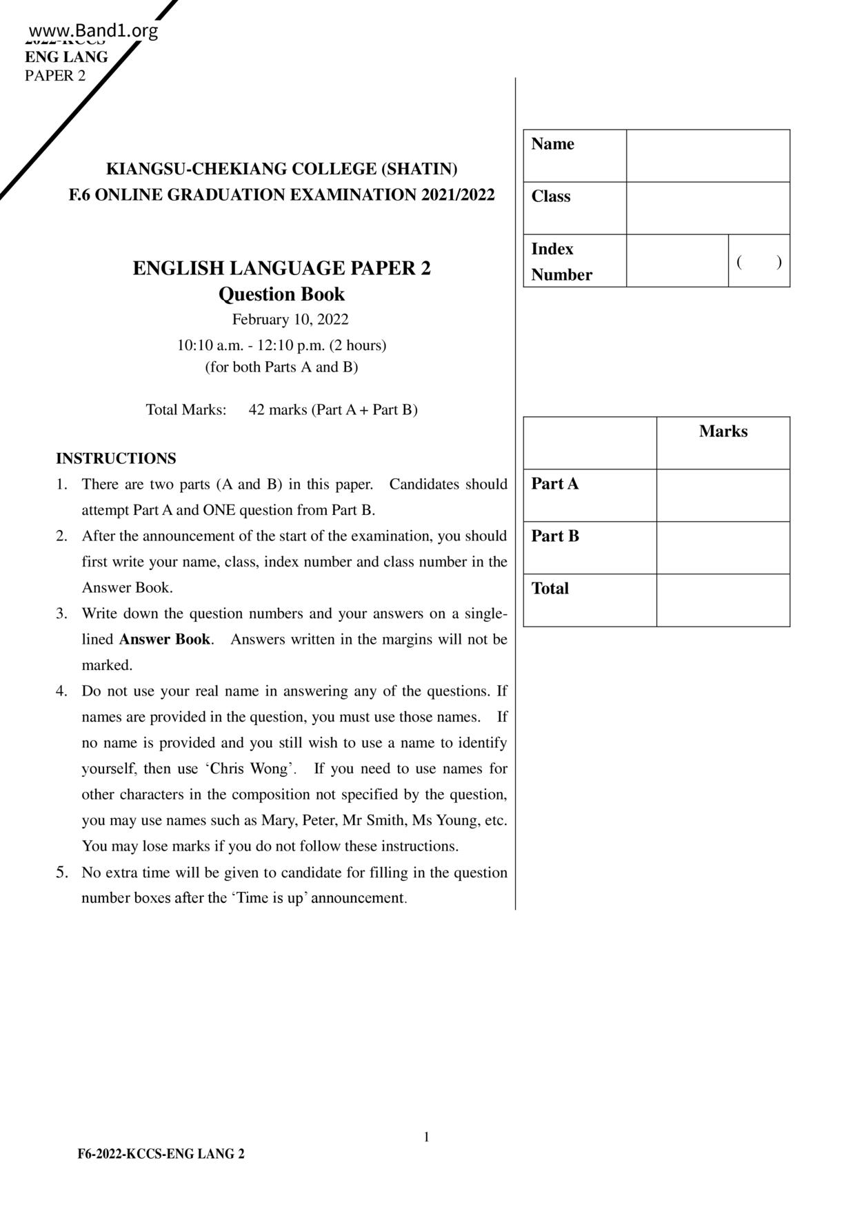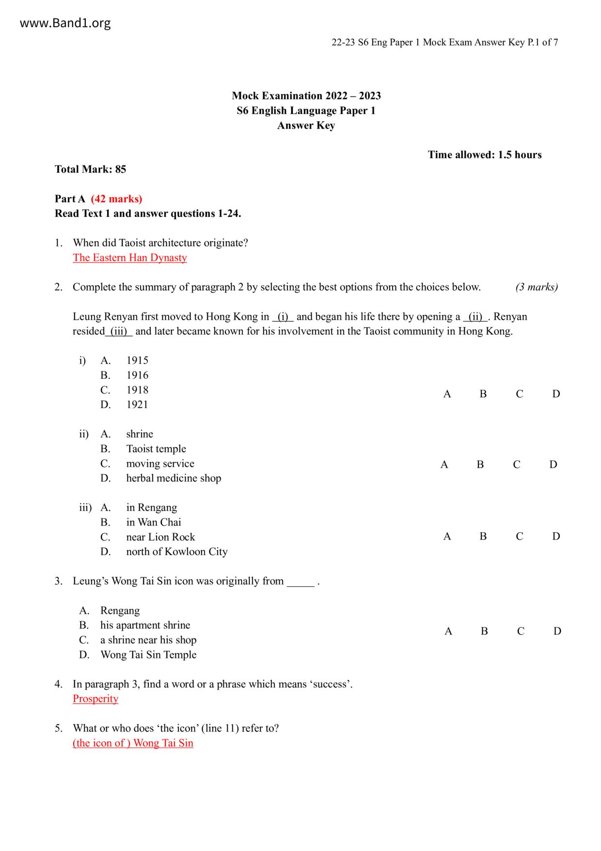 中六 英文 香港神託會培基書院