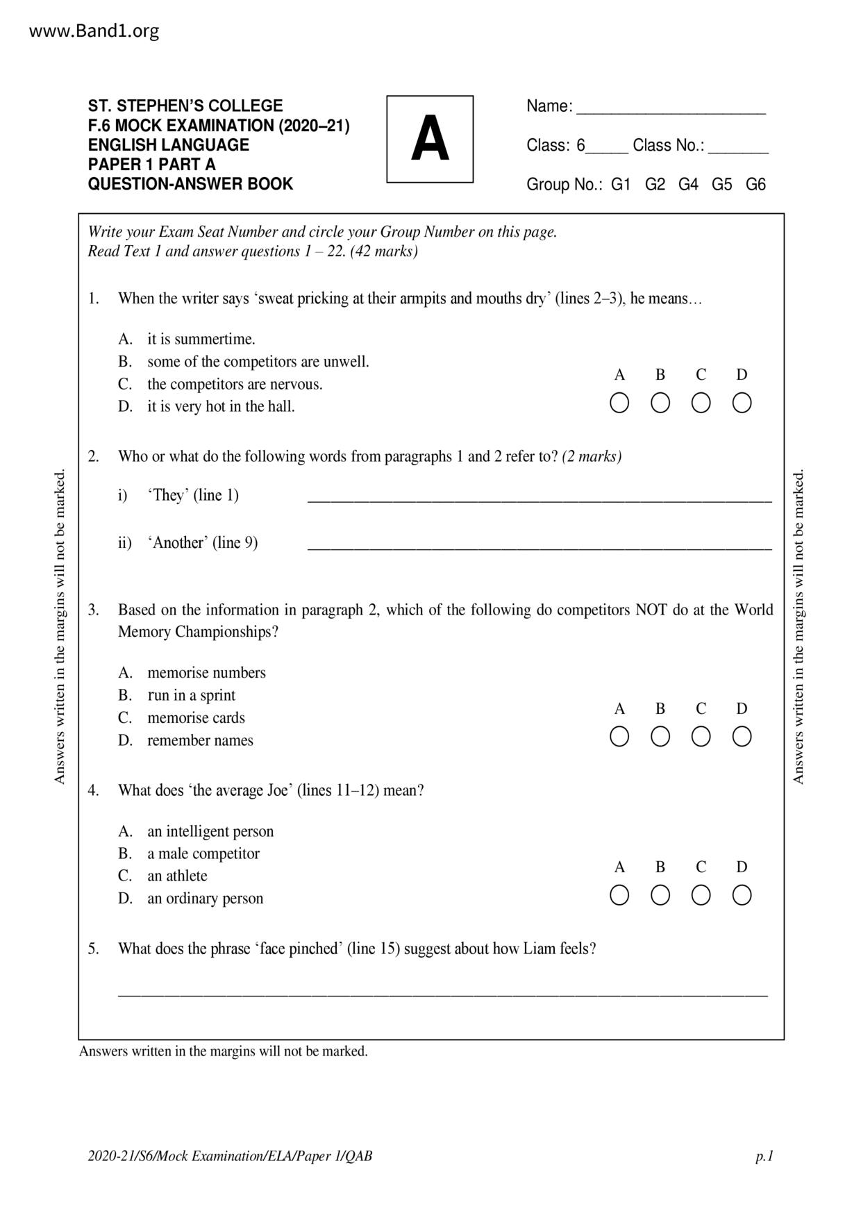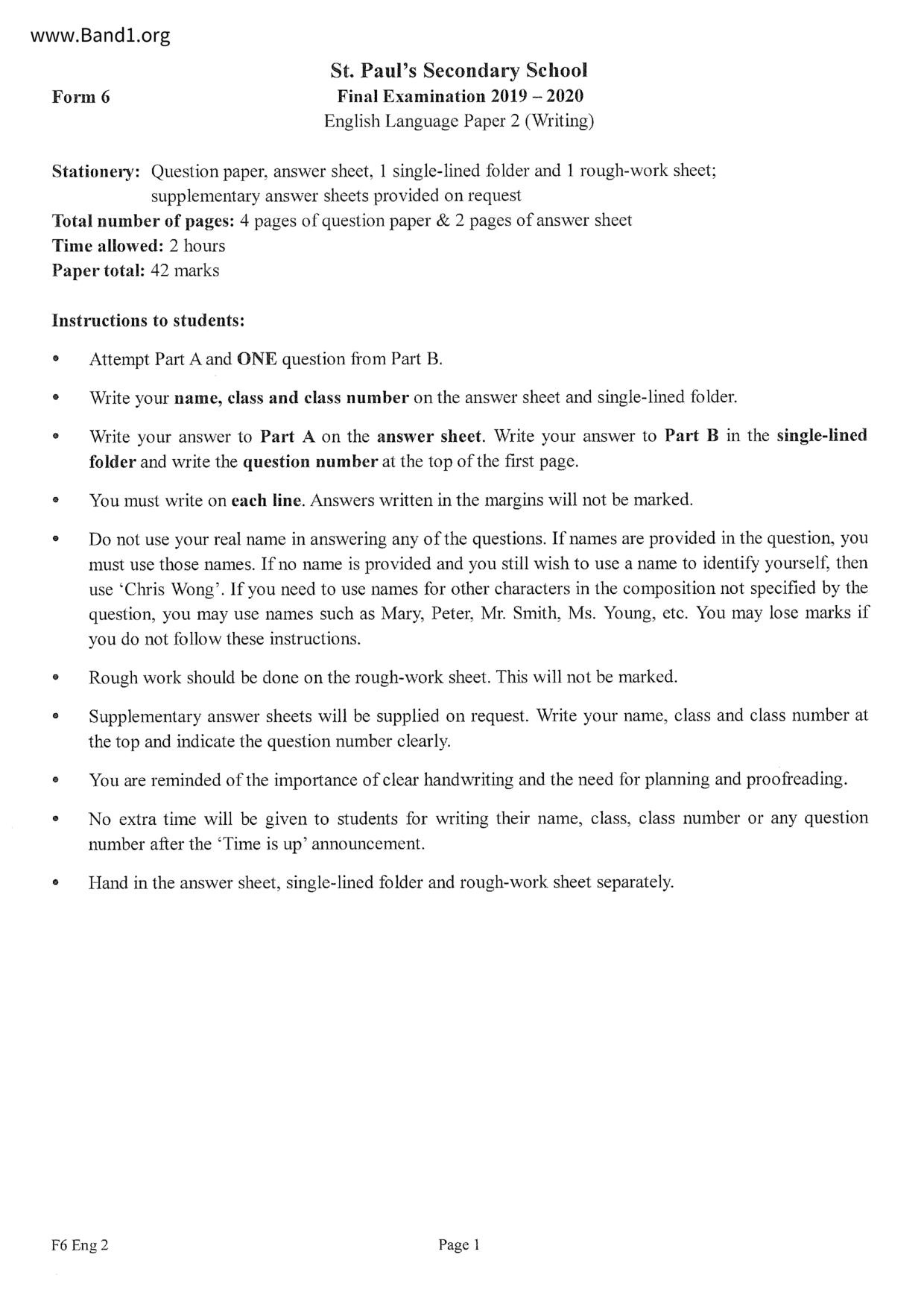 中六 英文 St. Francis of Assisi's English Primary School