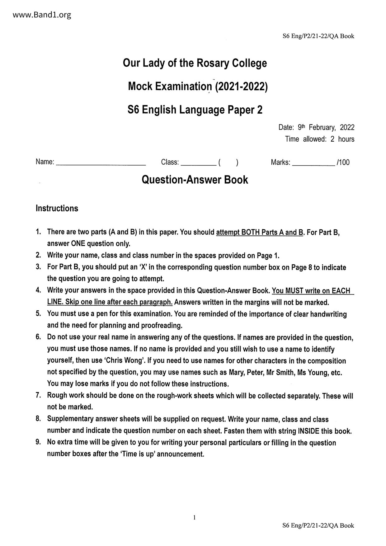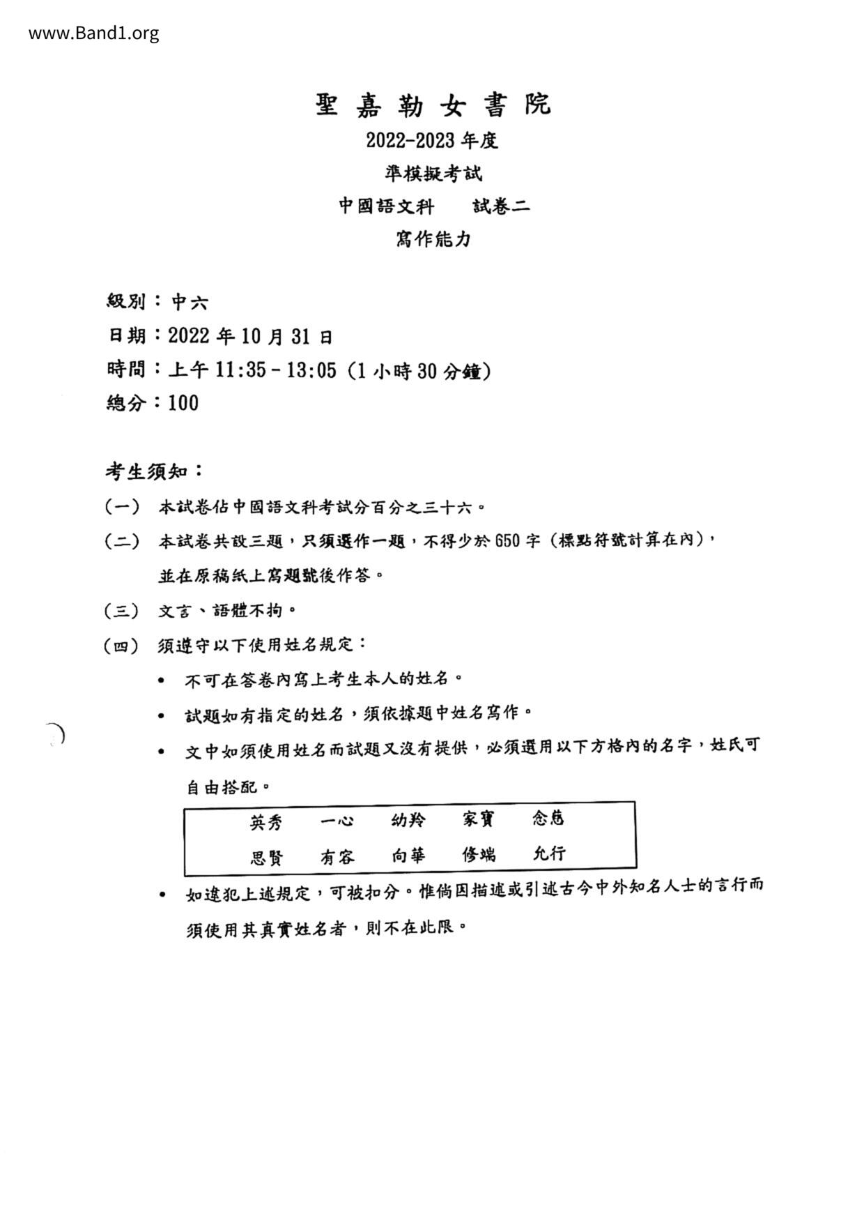 中六 英文 聖母玫瑰書院