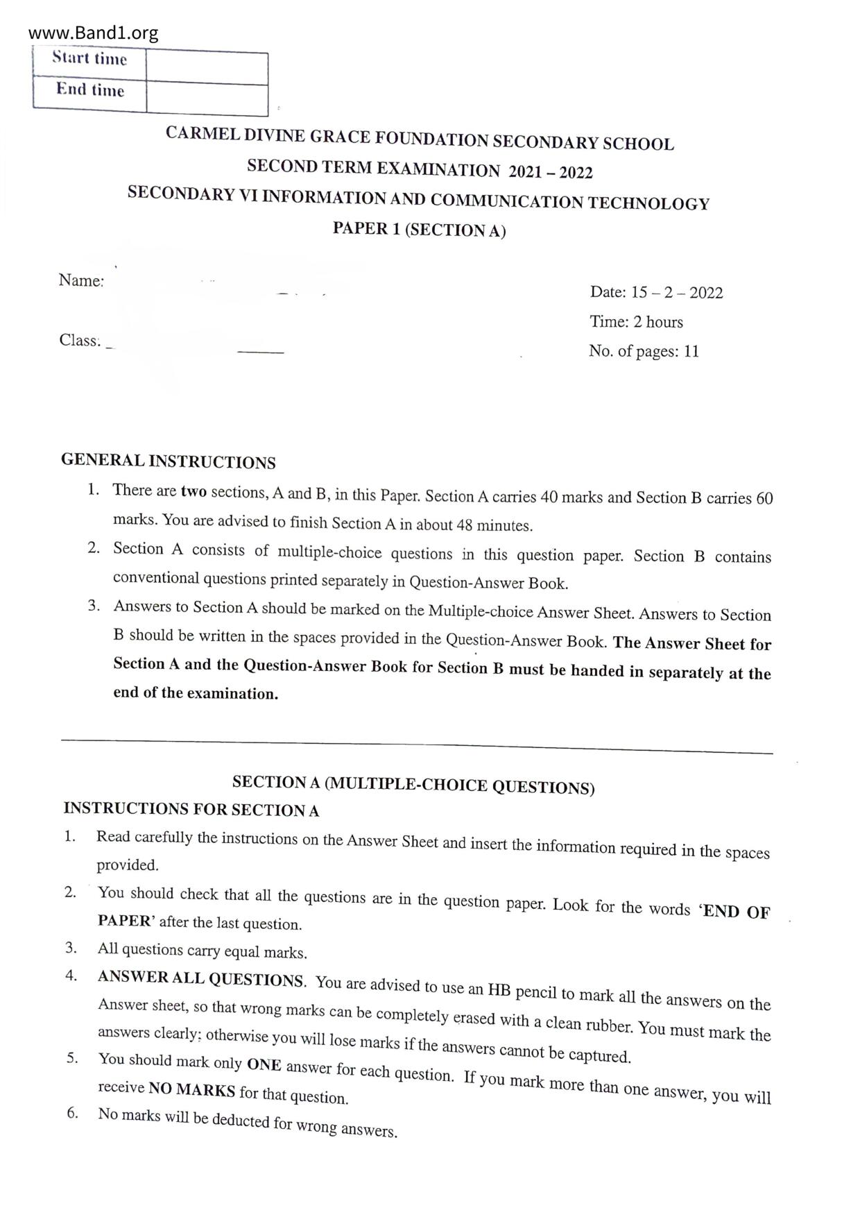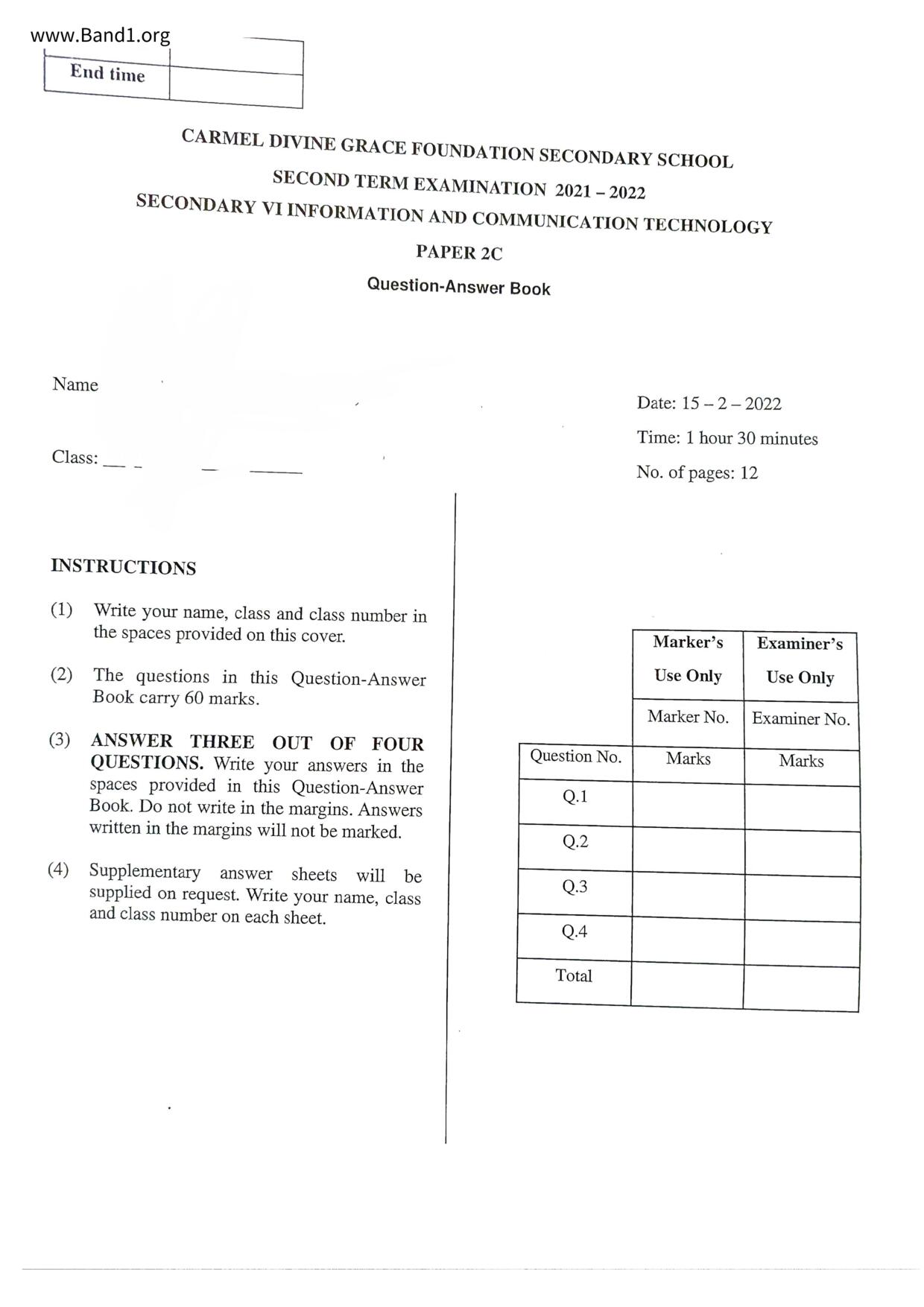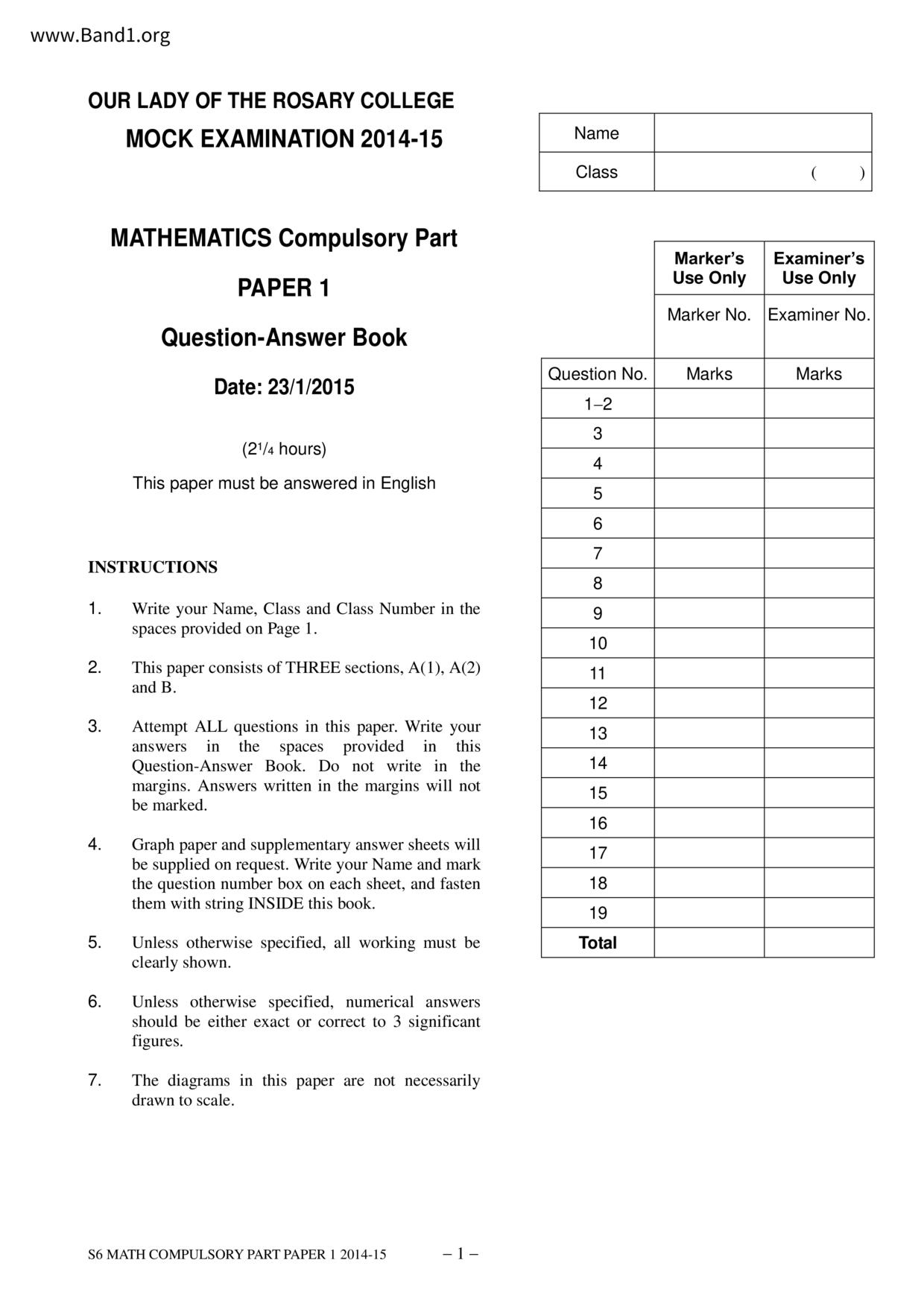 中六 數學 聖瑪加利男女英文中小學
